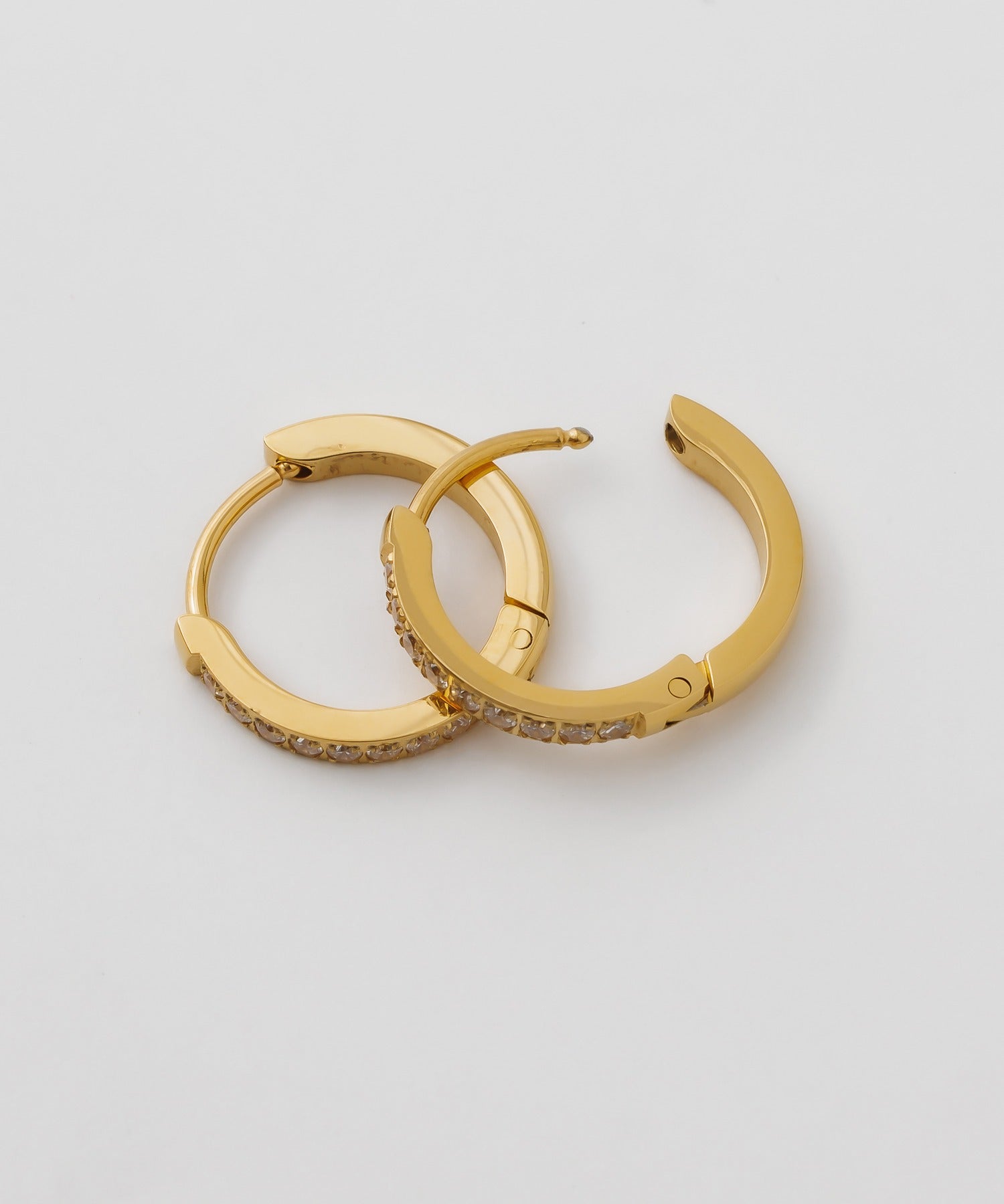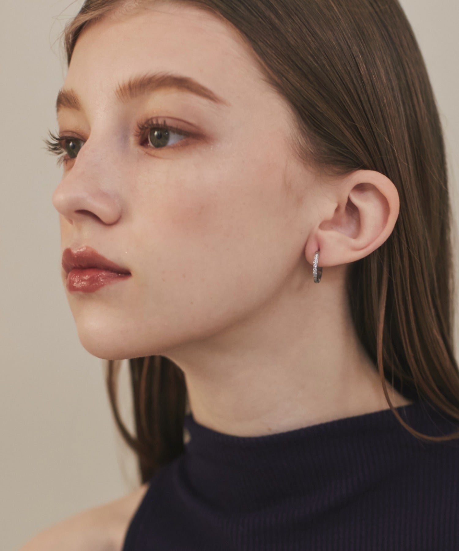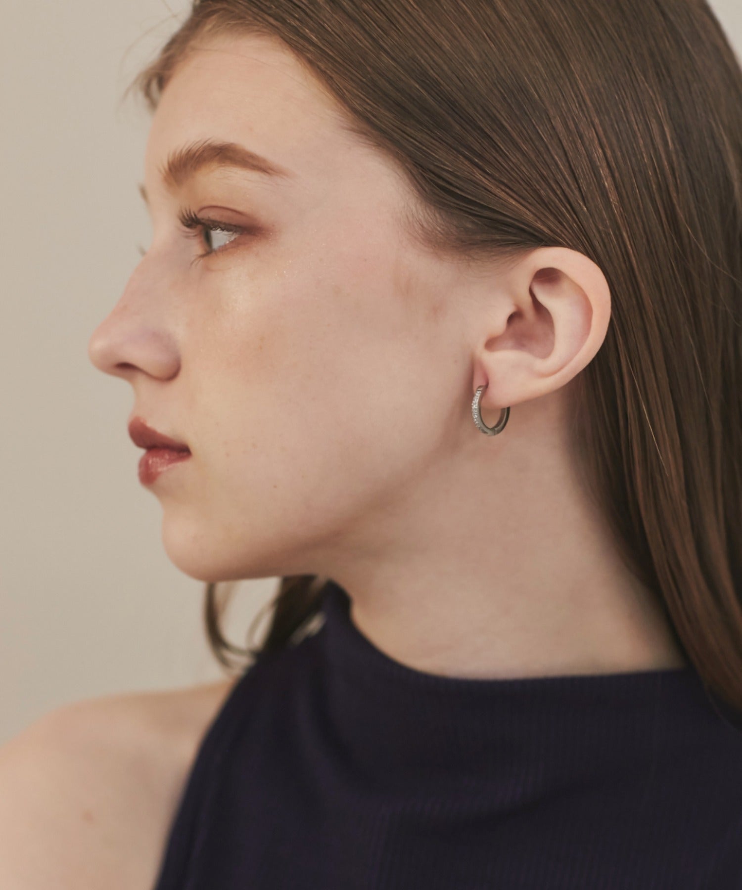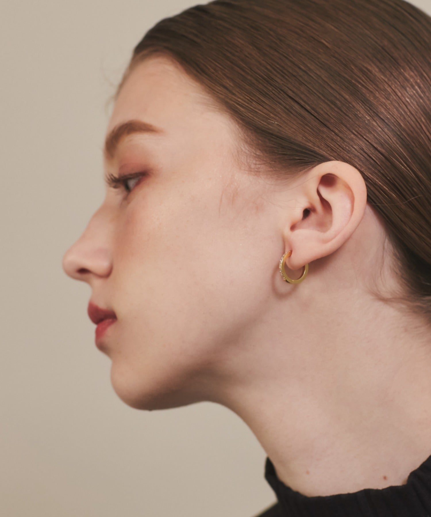 シンプルながらも付けたときのバランスにこだわったビジューフープピアス。
