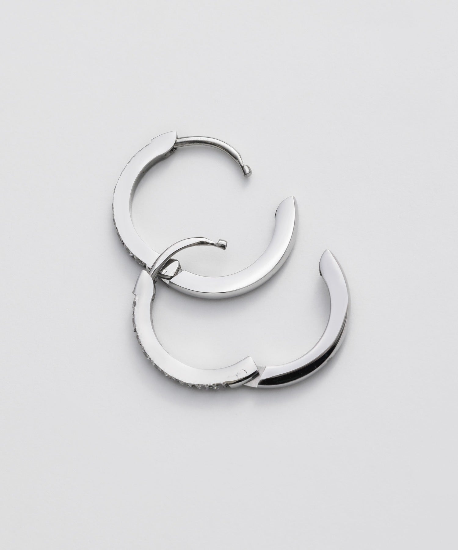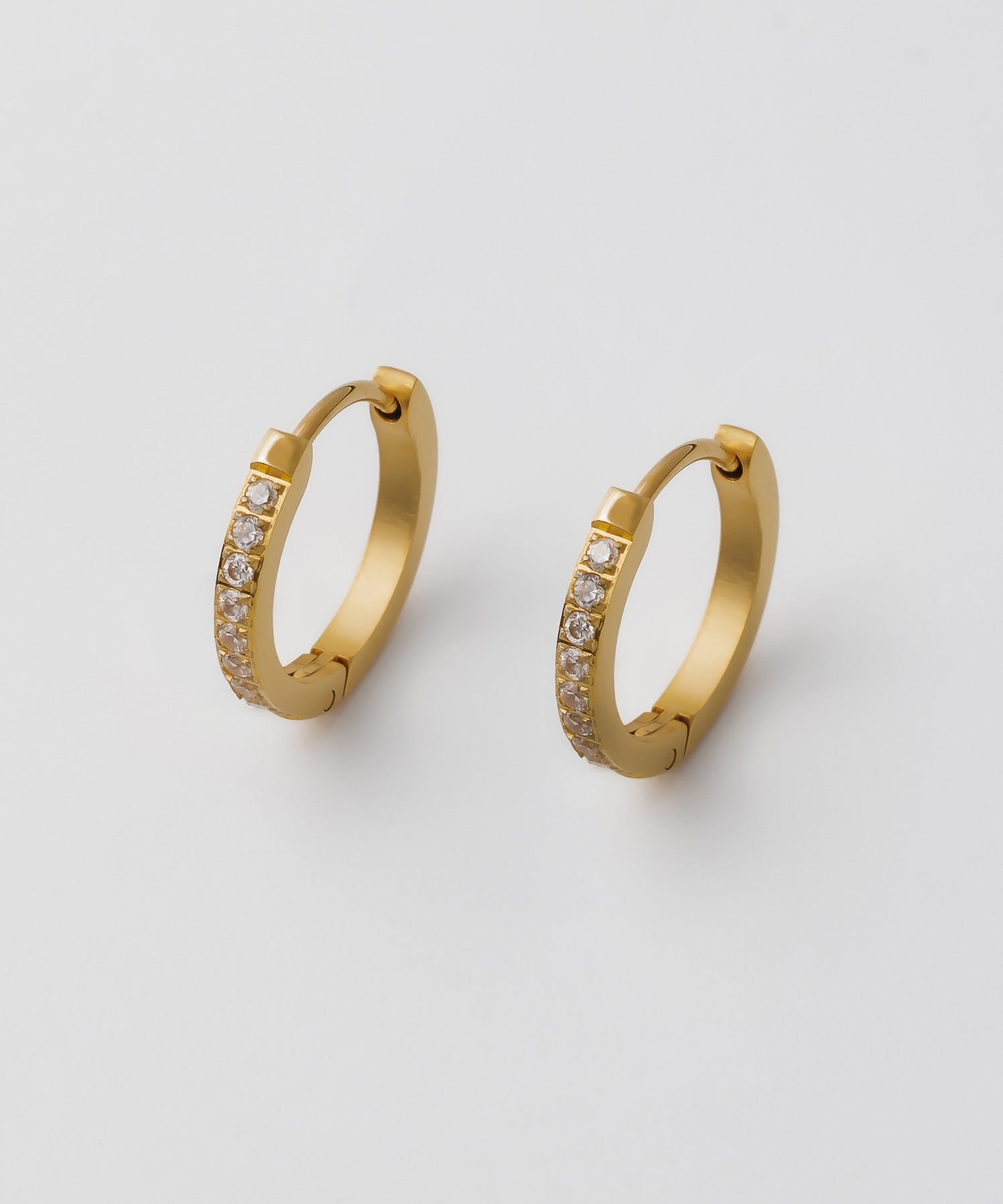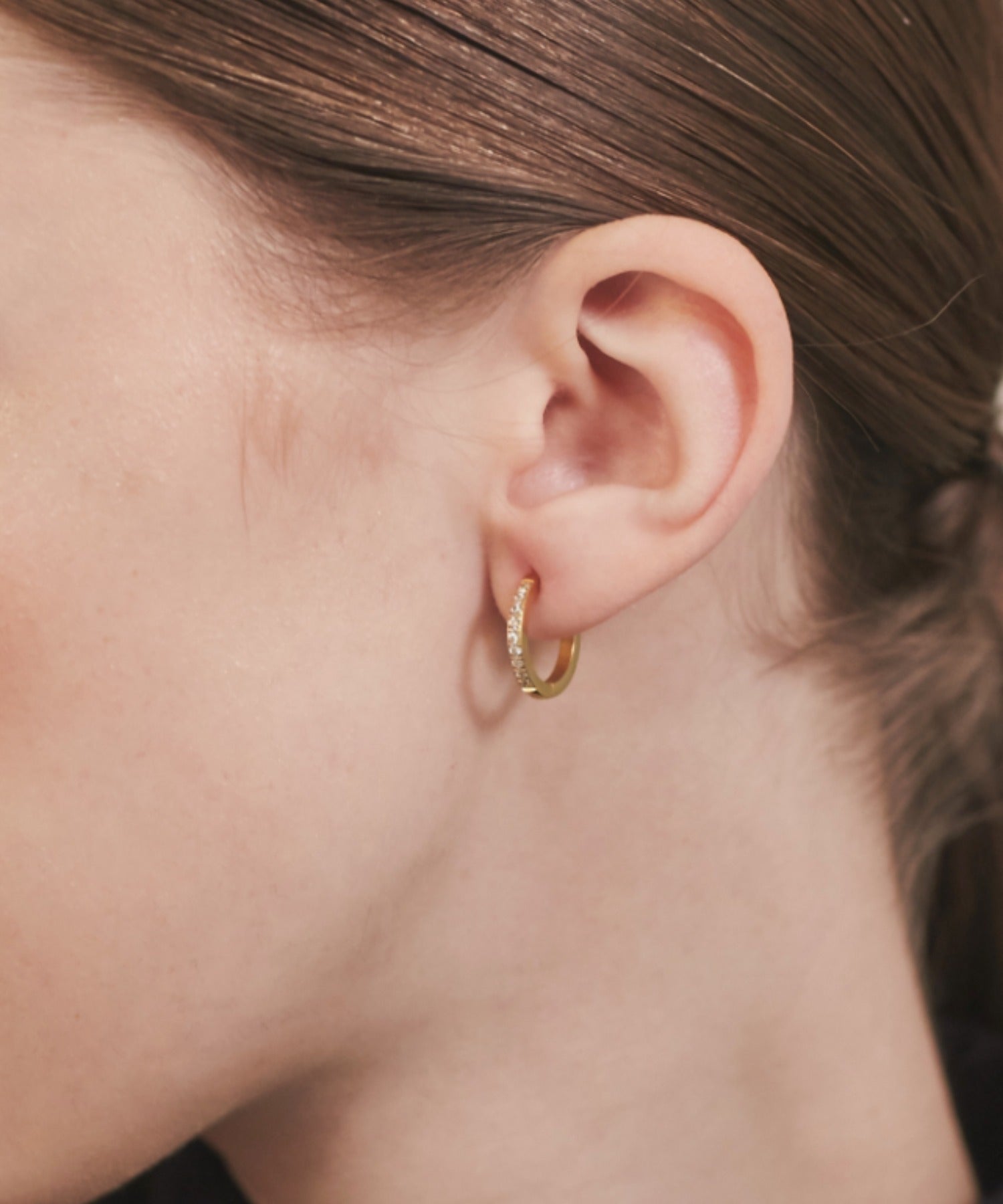 シンプルながらも付けたときのバランスにこだわったビジューフープピアス。