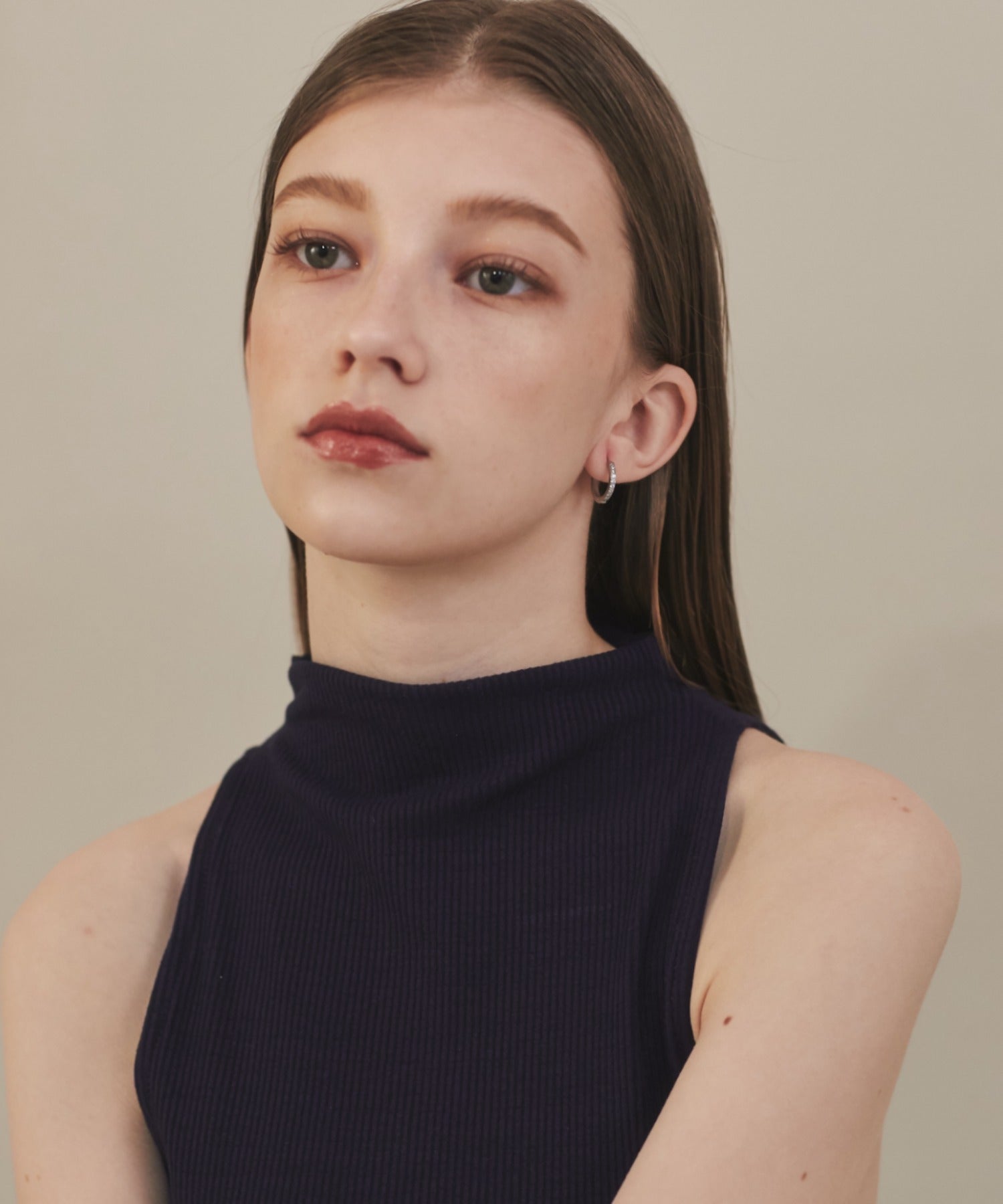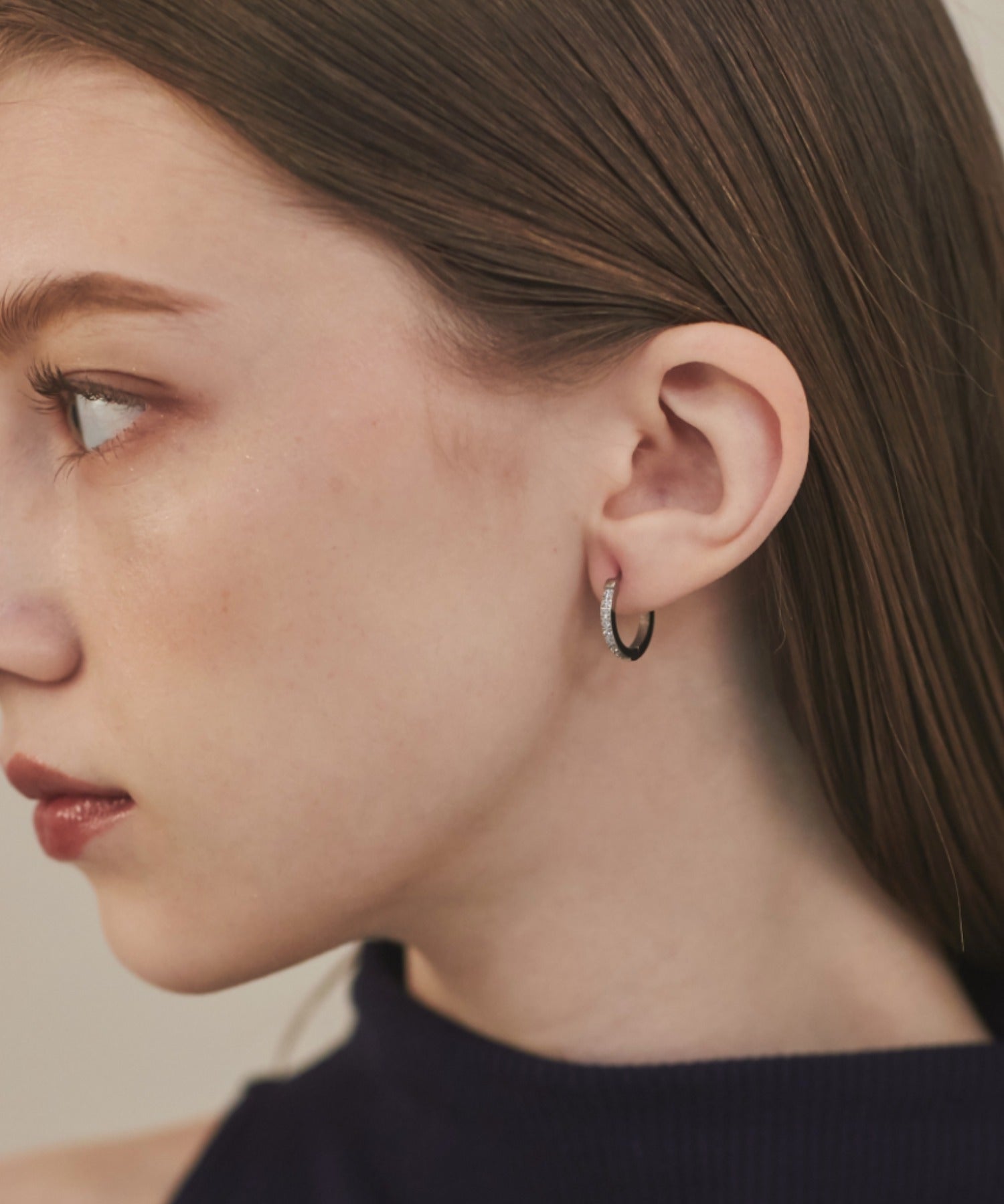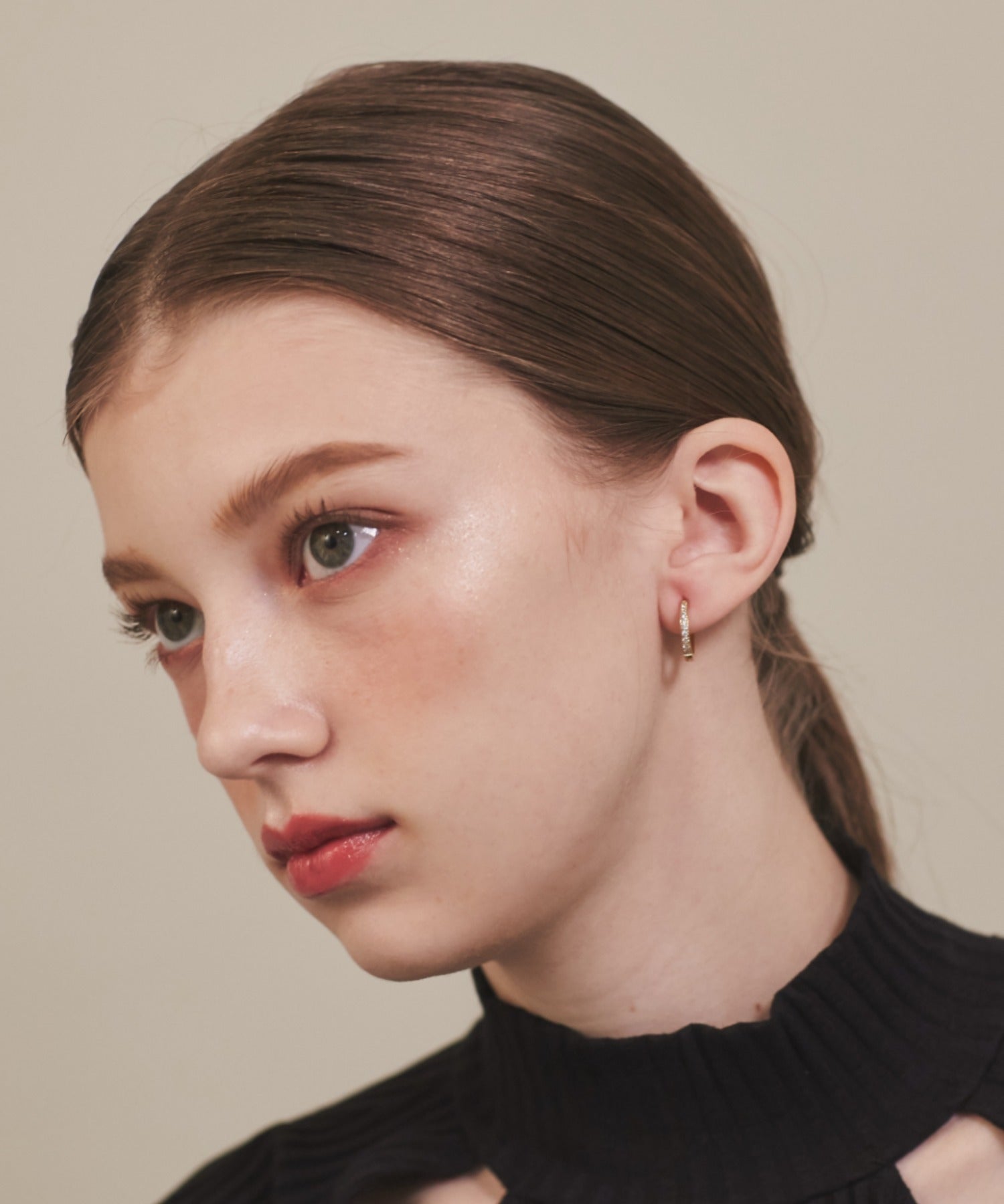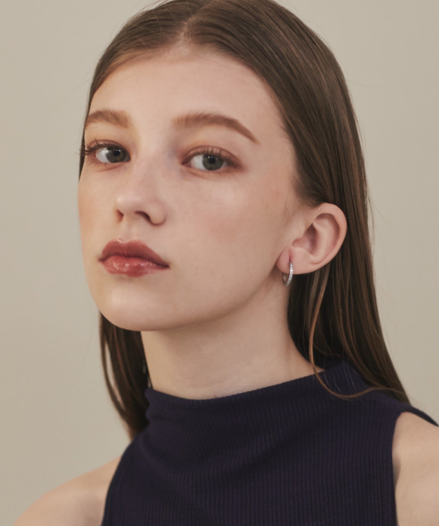 シンプルながらも付けたときのバランスにこだわったビジューフープピアス。