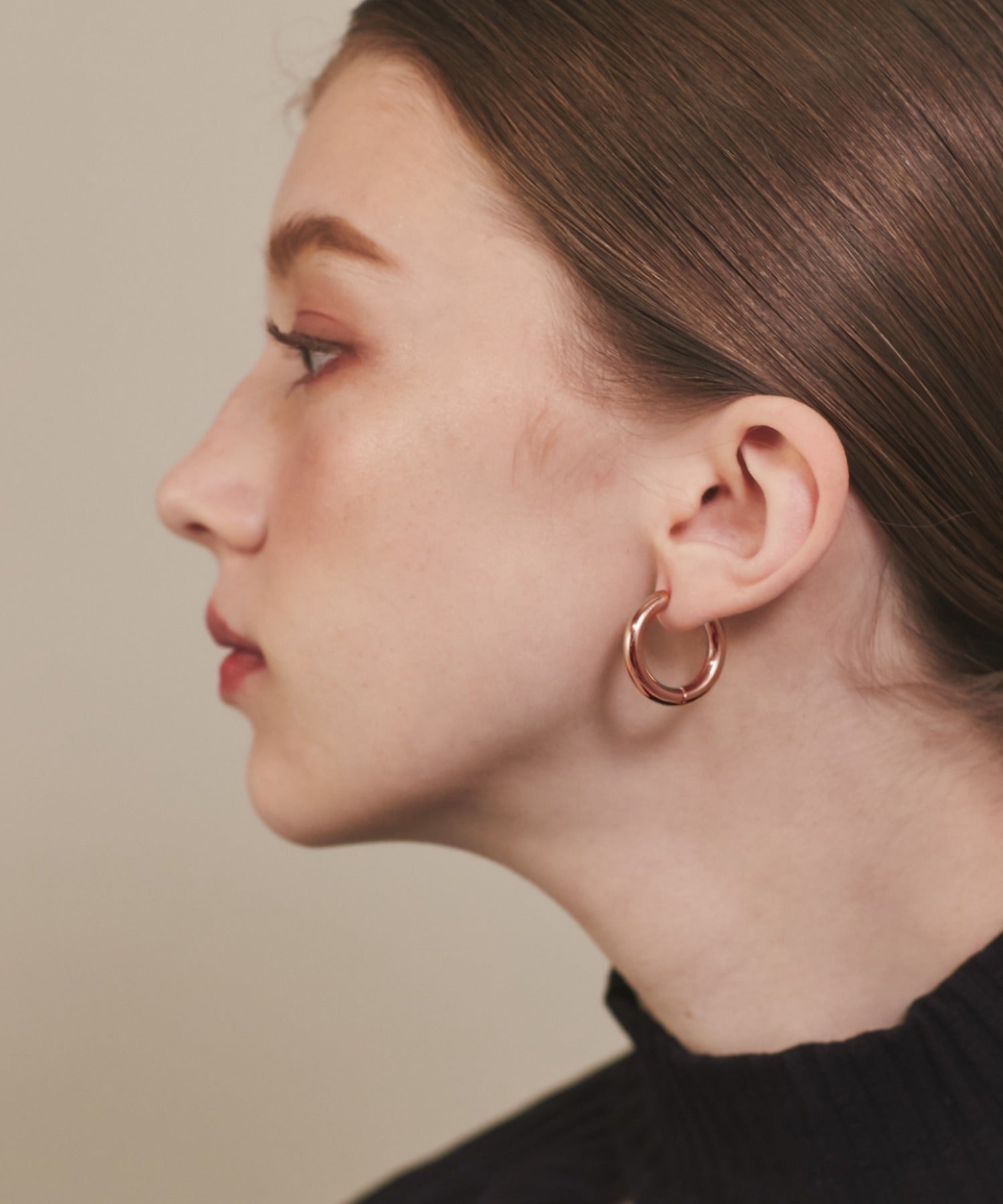 シンプルながらも付けたときのバランスにこだわったフープピアス。