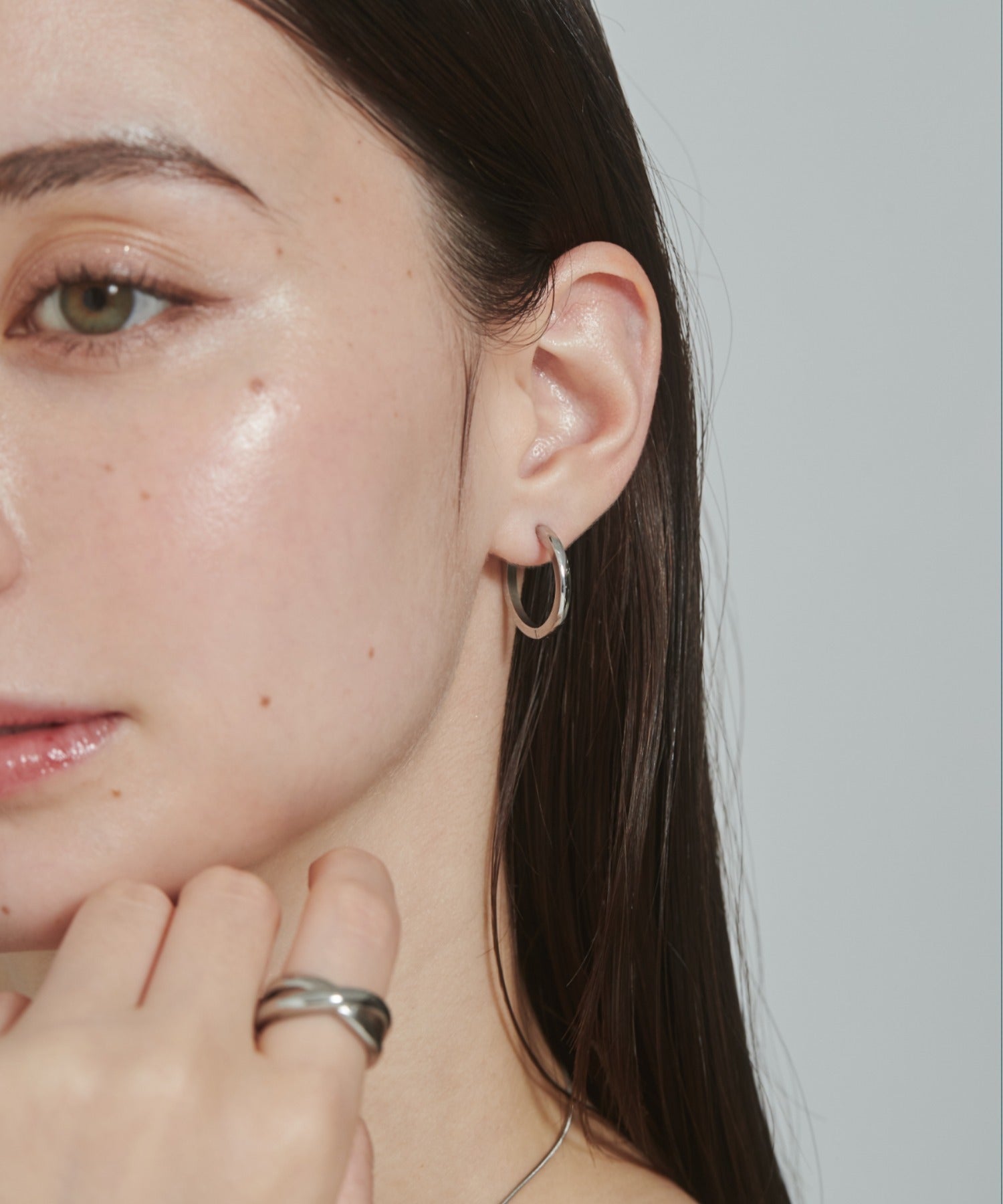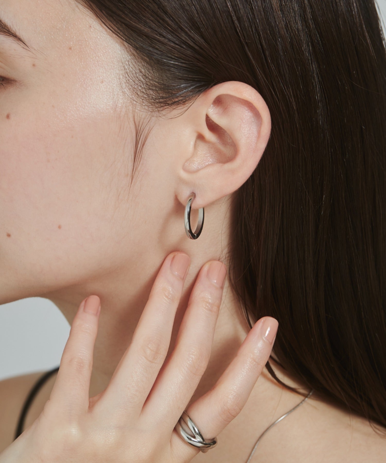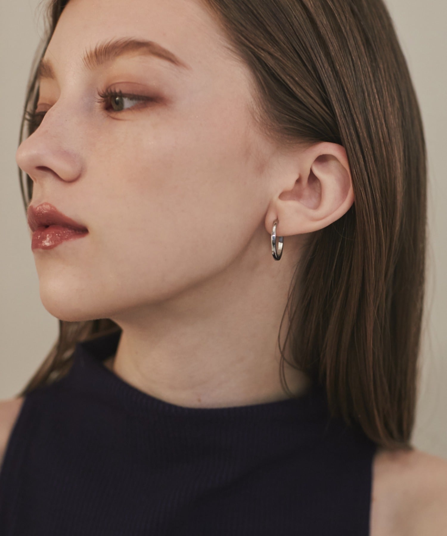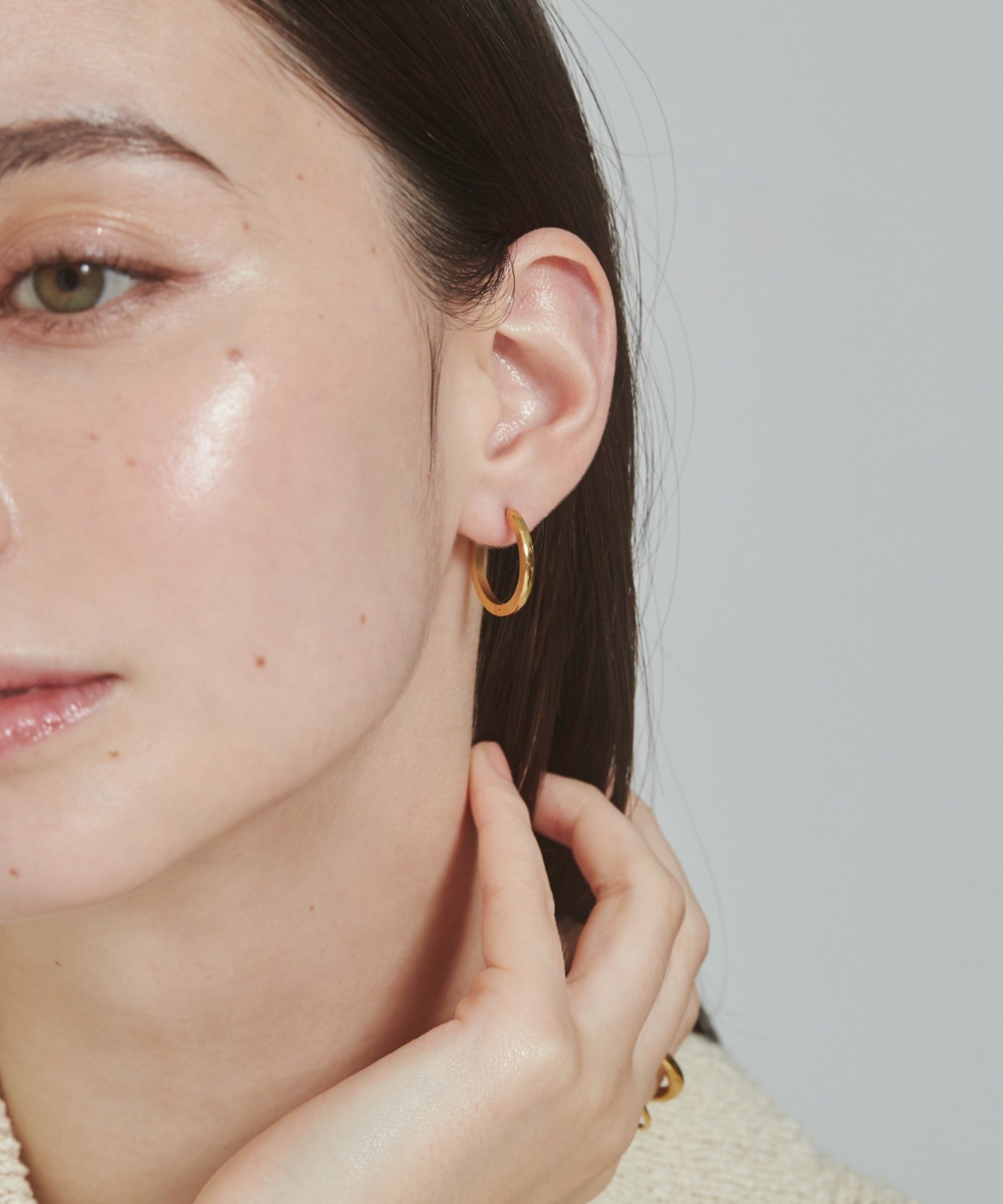 シンプルながらも付けたときのバランスにこだわったフープピアス。