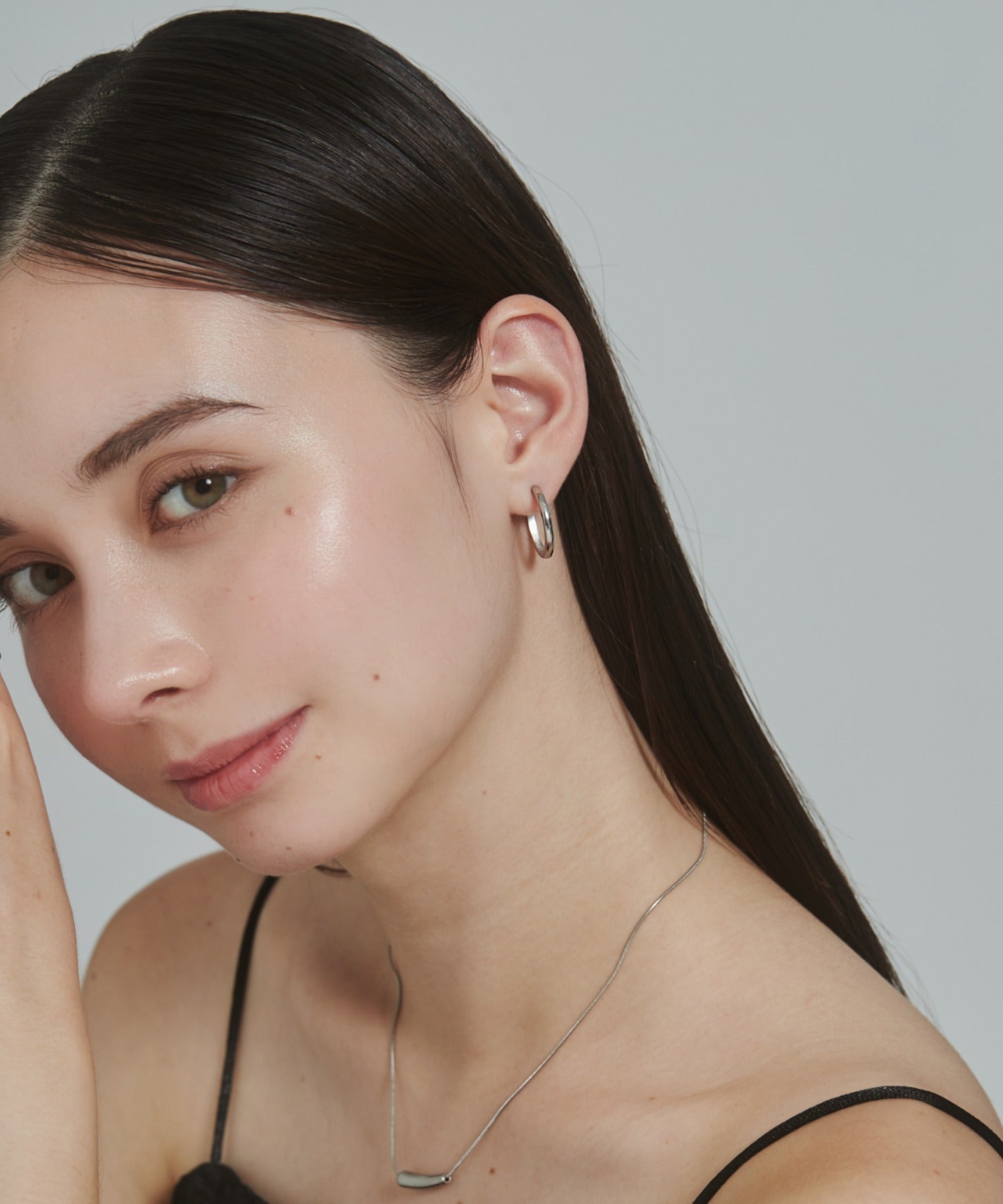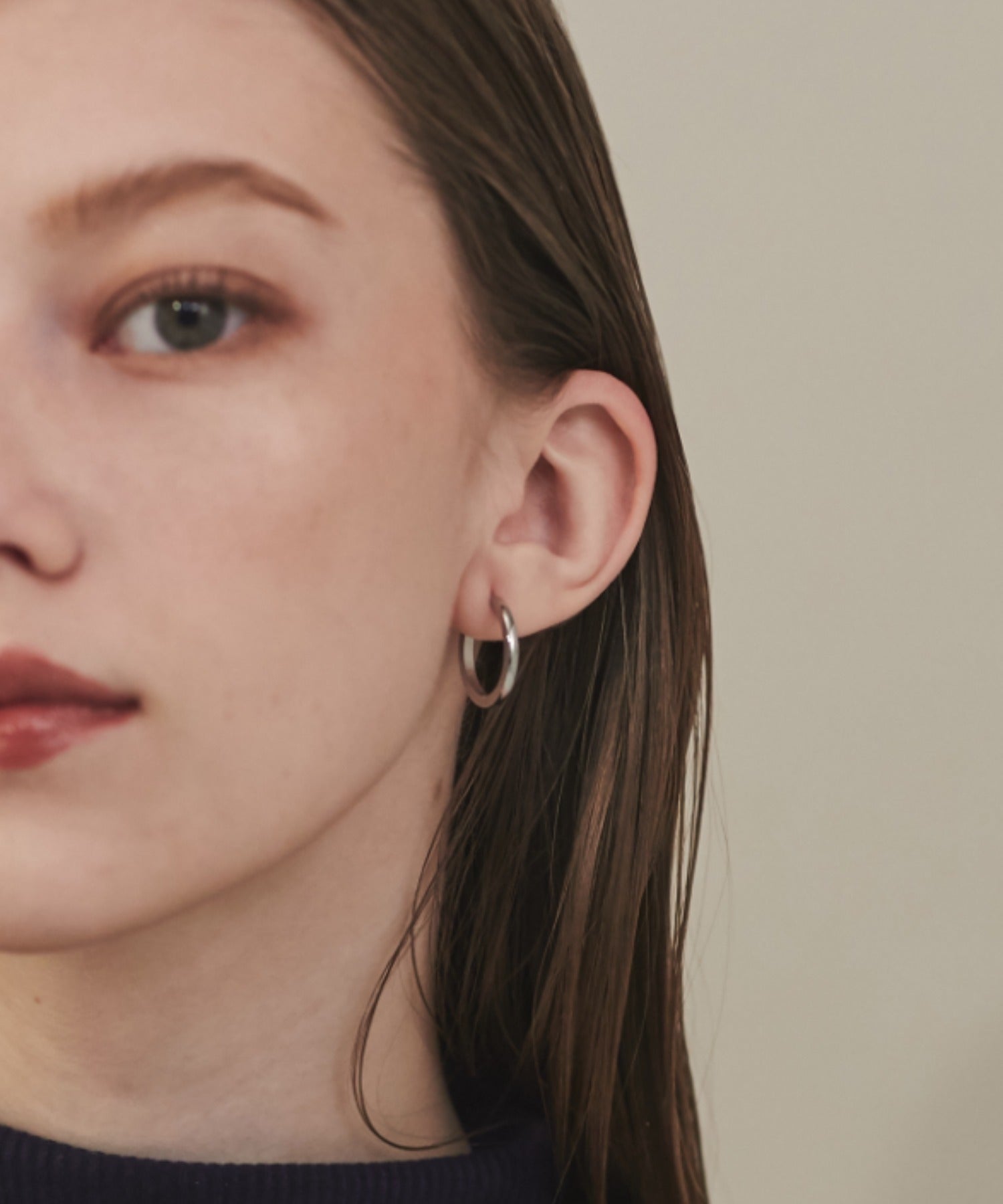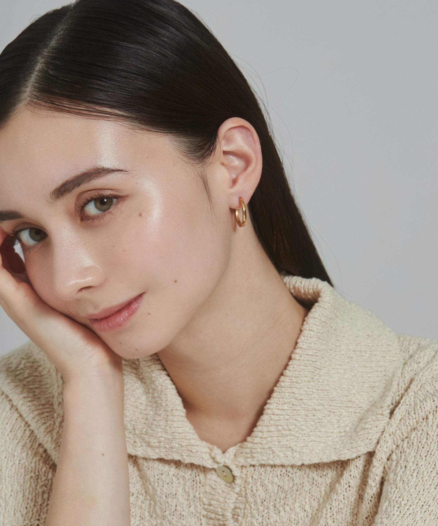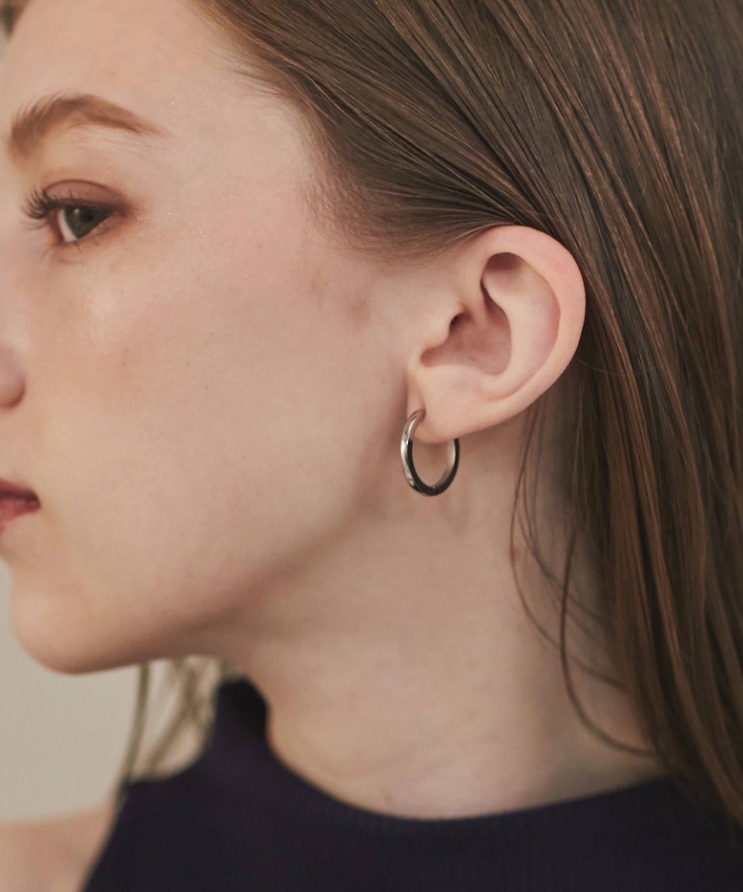 シンプルながらも付けたときのバランスにこだわったフープピアス。