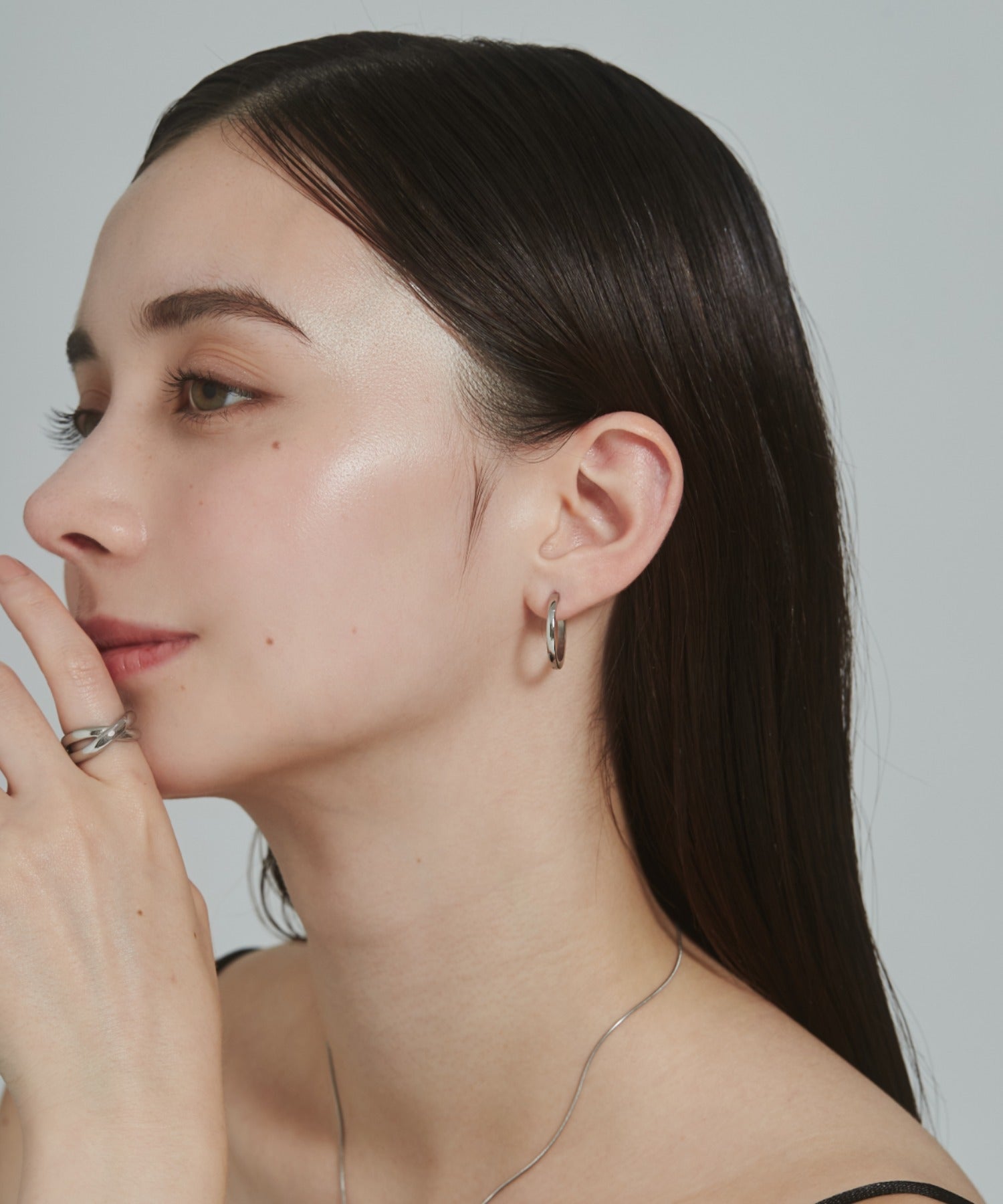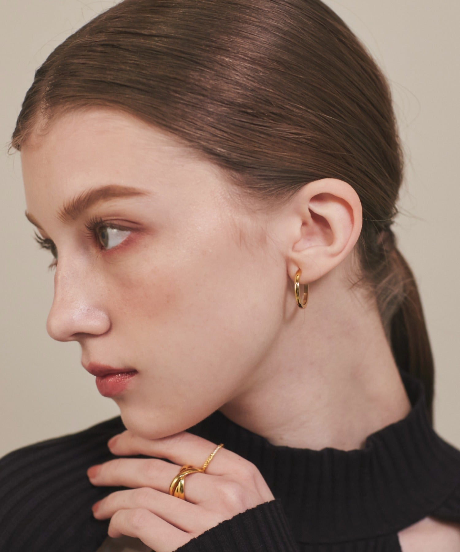 シンプルながらも付けたときのバランスにこだわったフープピアス。
