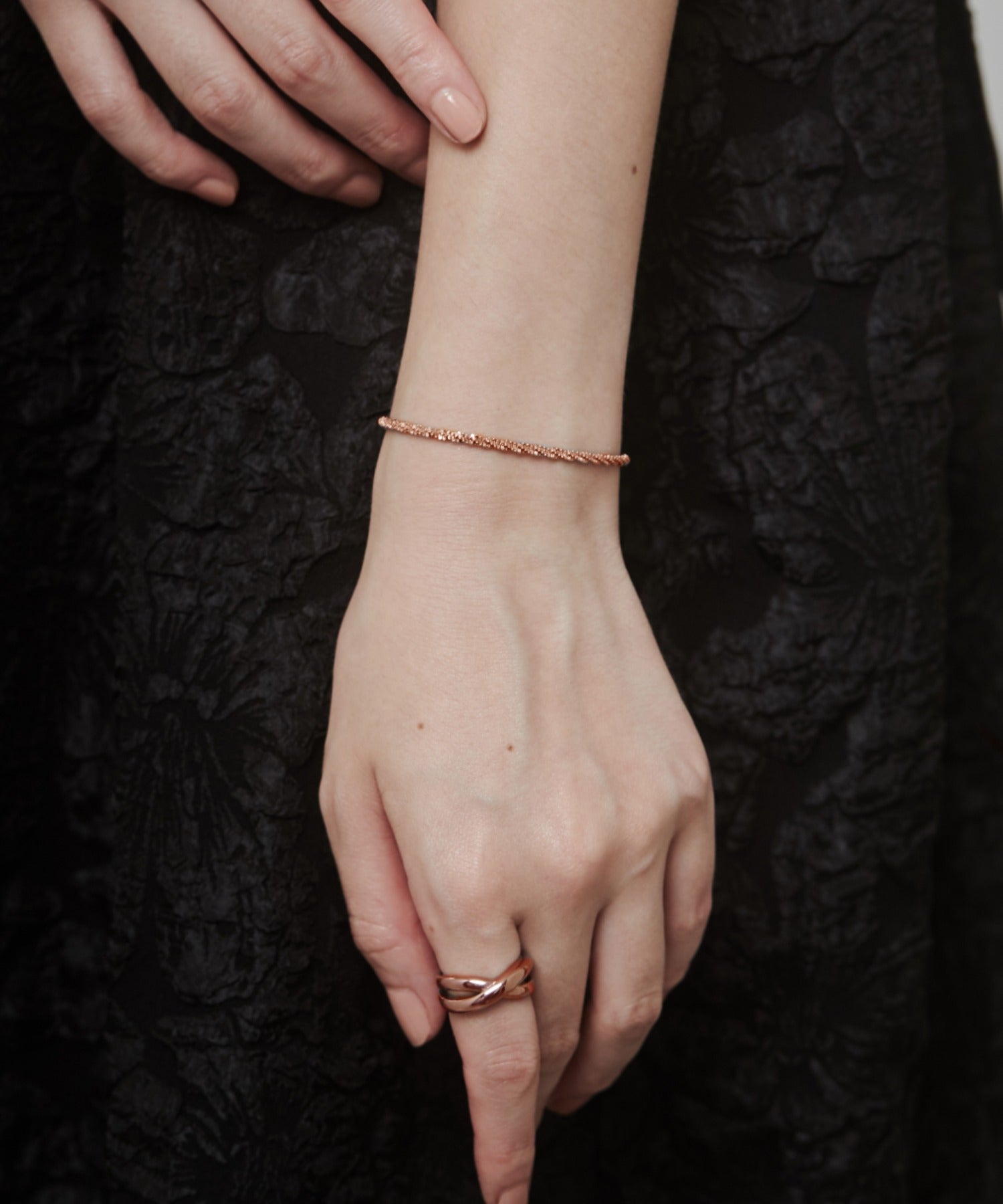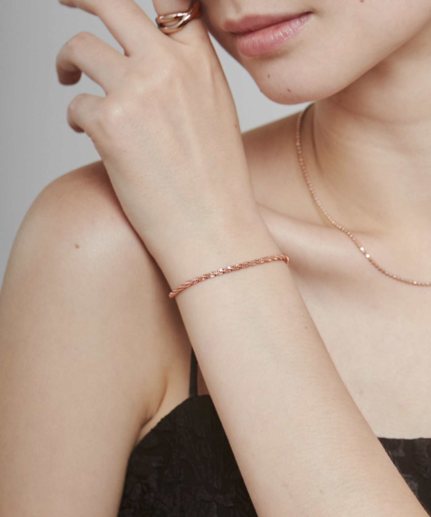 シンプルながらも付けたときのバランスにこだわったグリッターチェーンブレスレット。