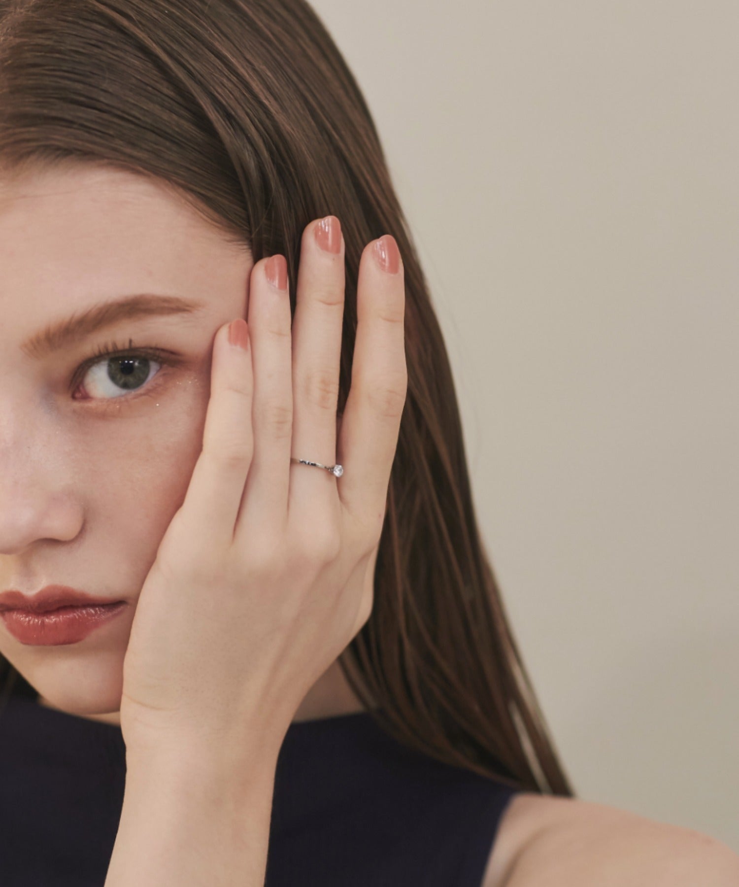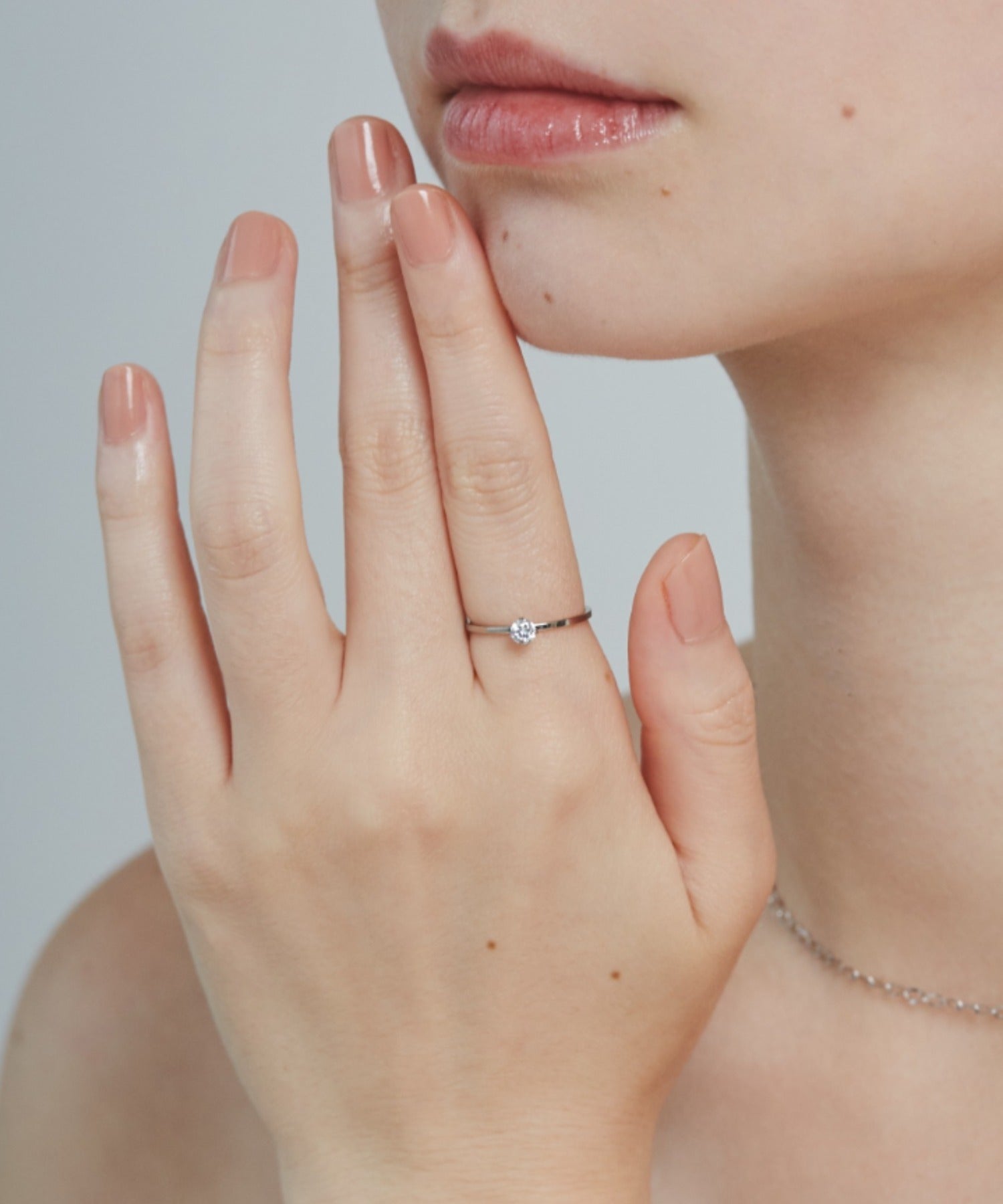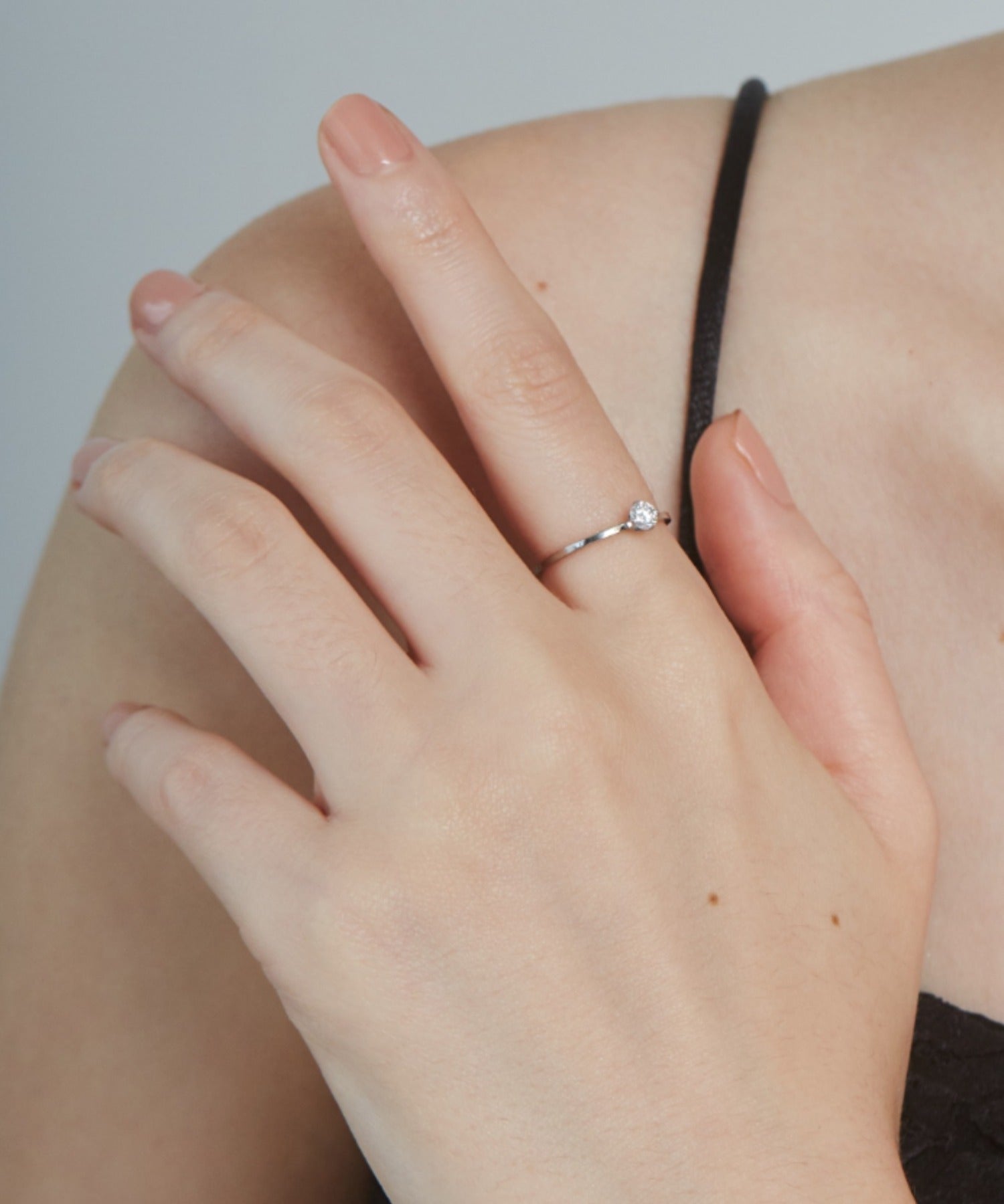 シンプルながらも付けたときのバランスにこだわったビジューリング。