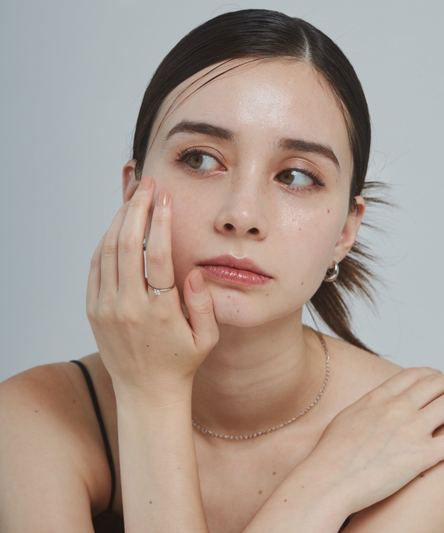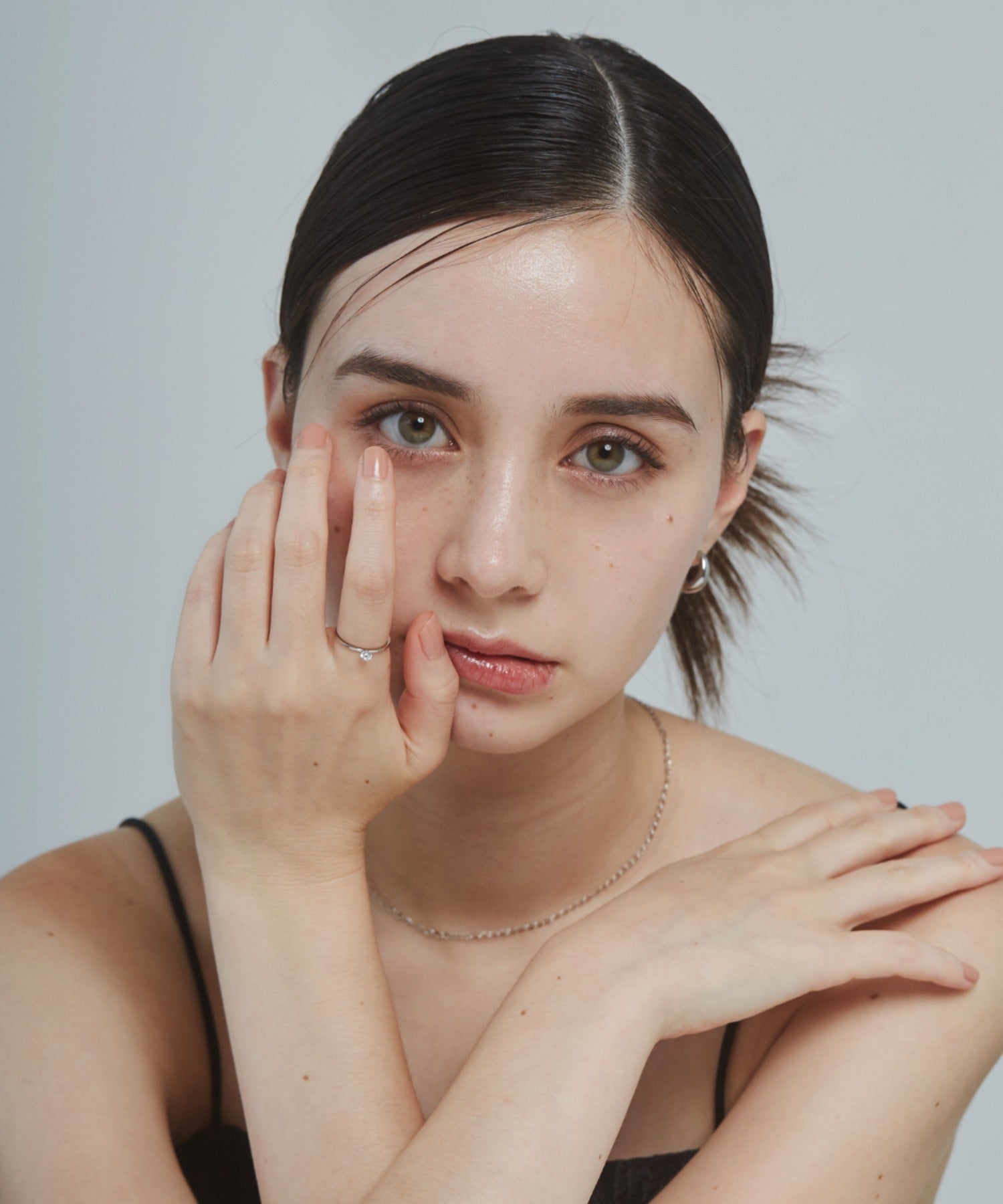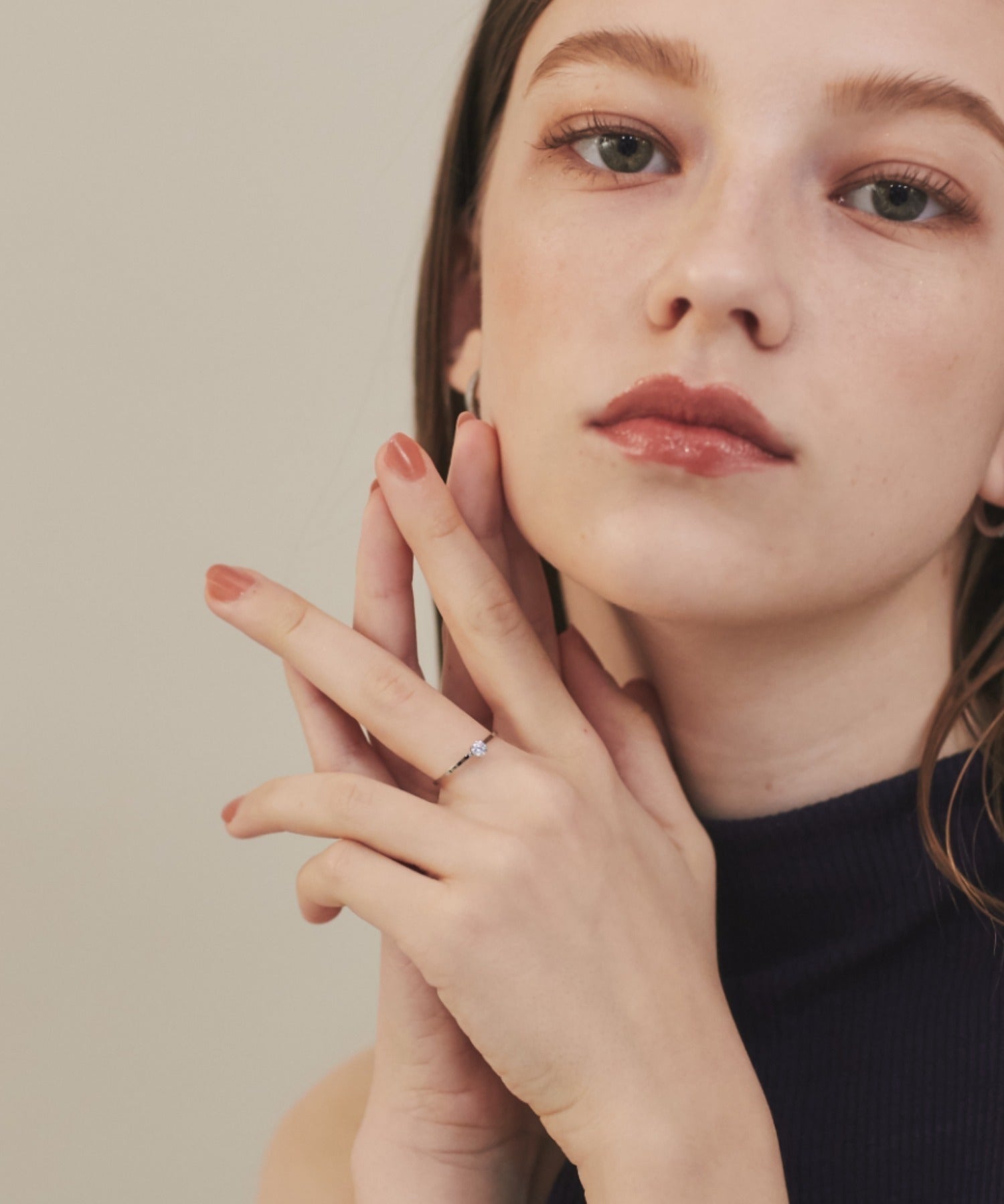 シンプルながらも付けたときのバランスにこだわったビジューリング。