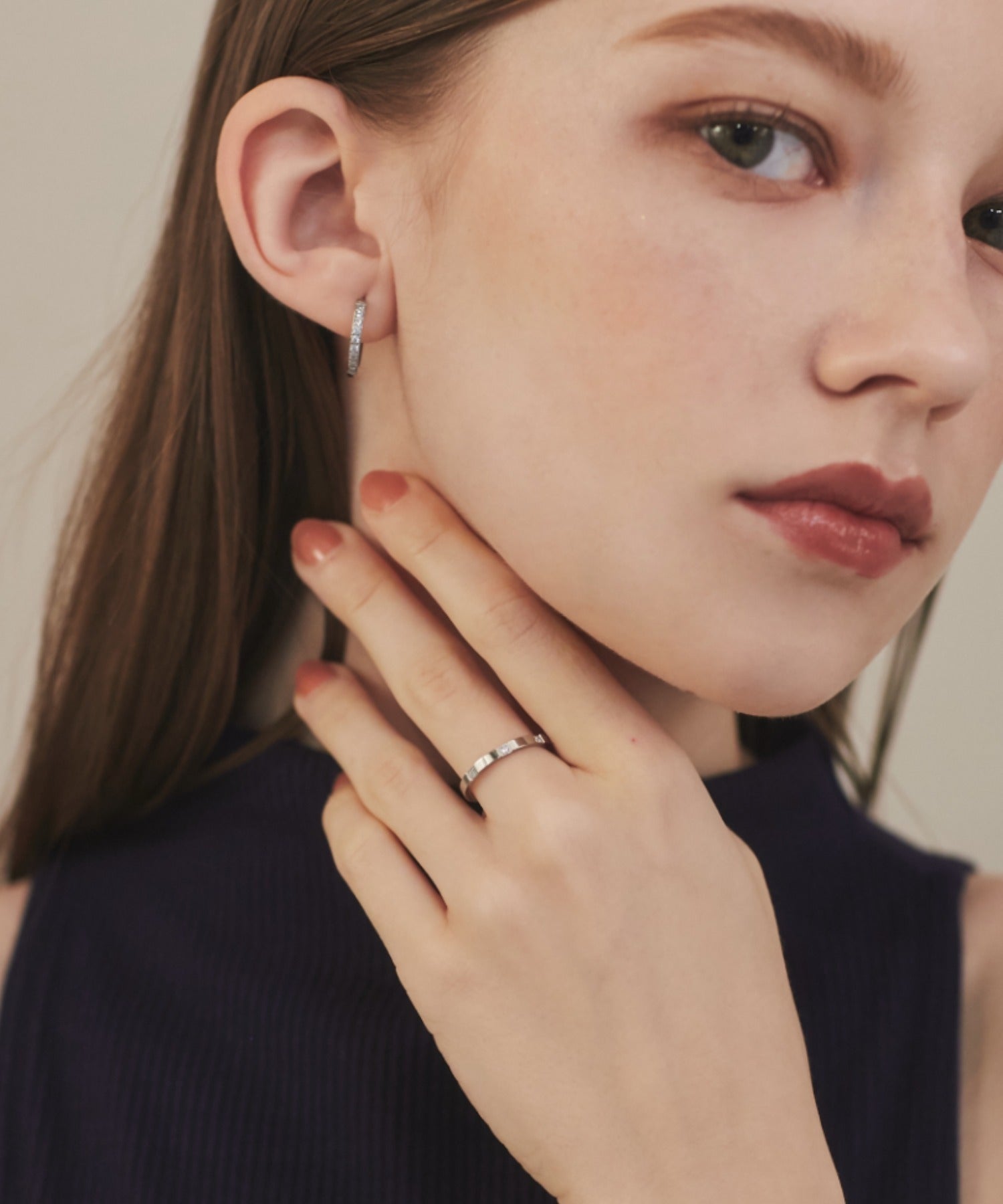 シンプルながらも付けたときのバランスにこだわっシンプルビジューリング。