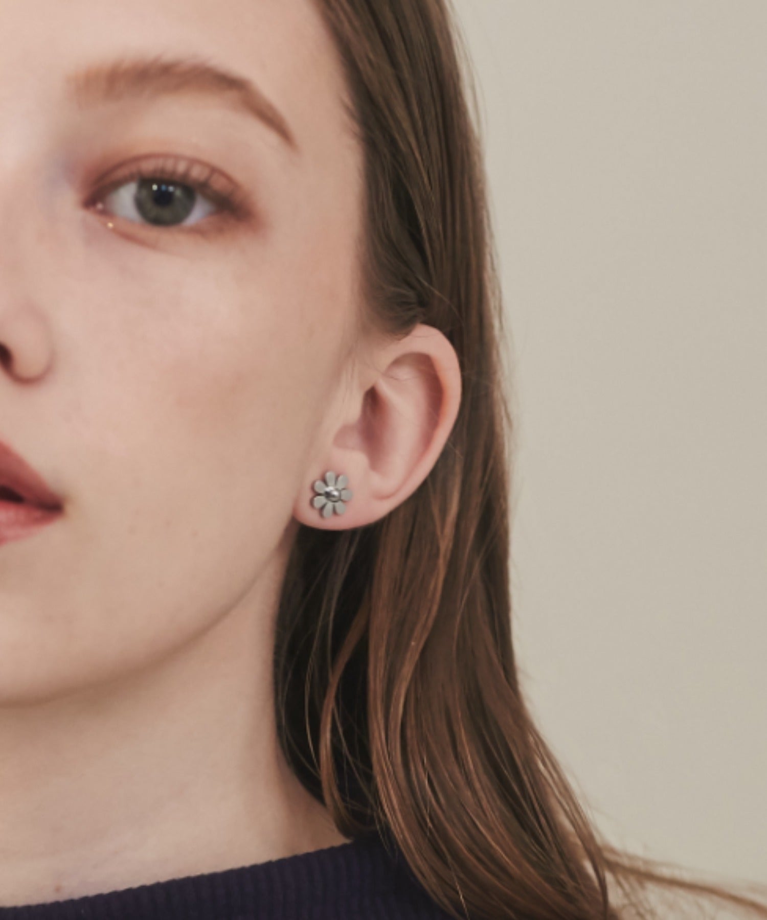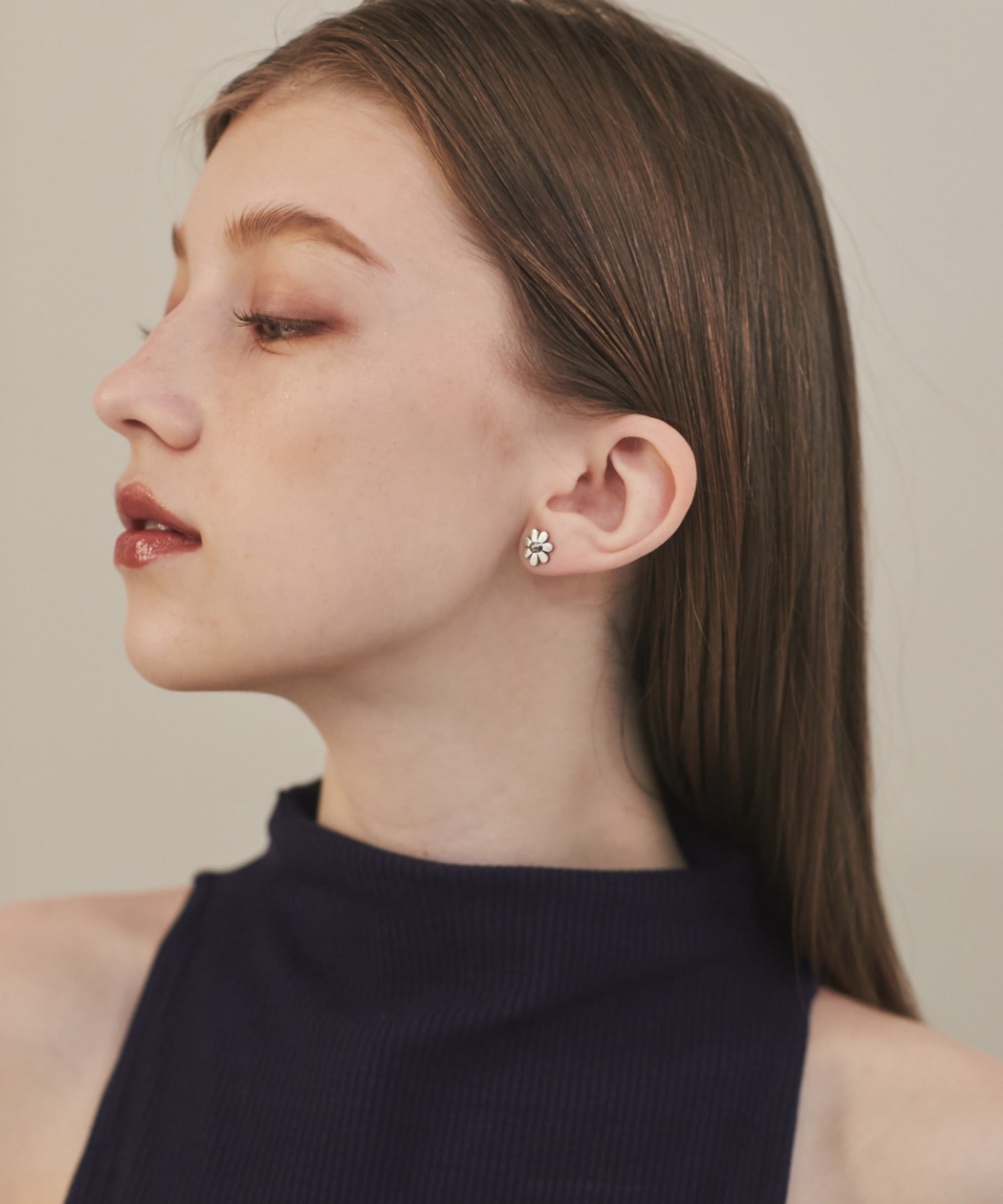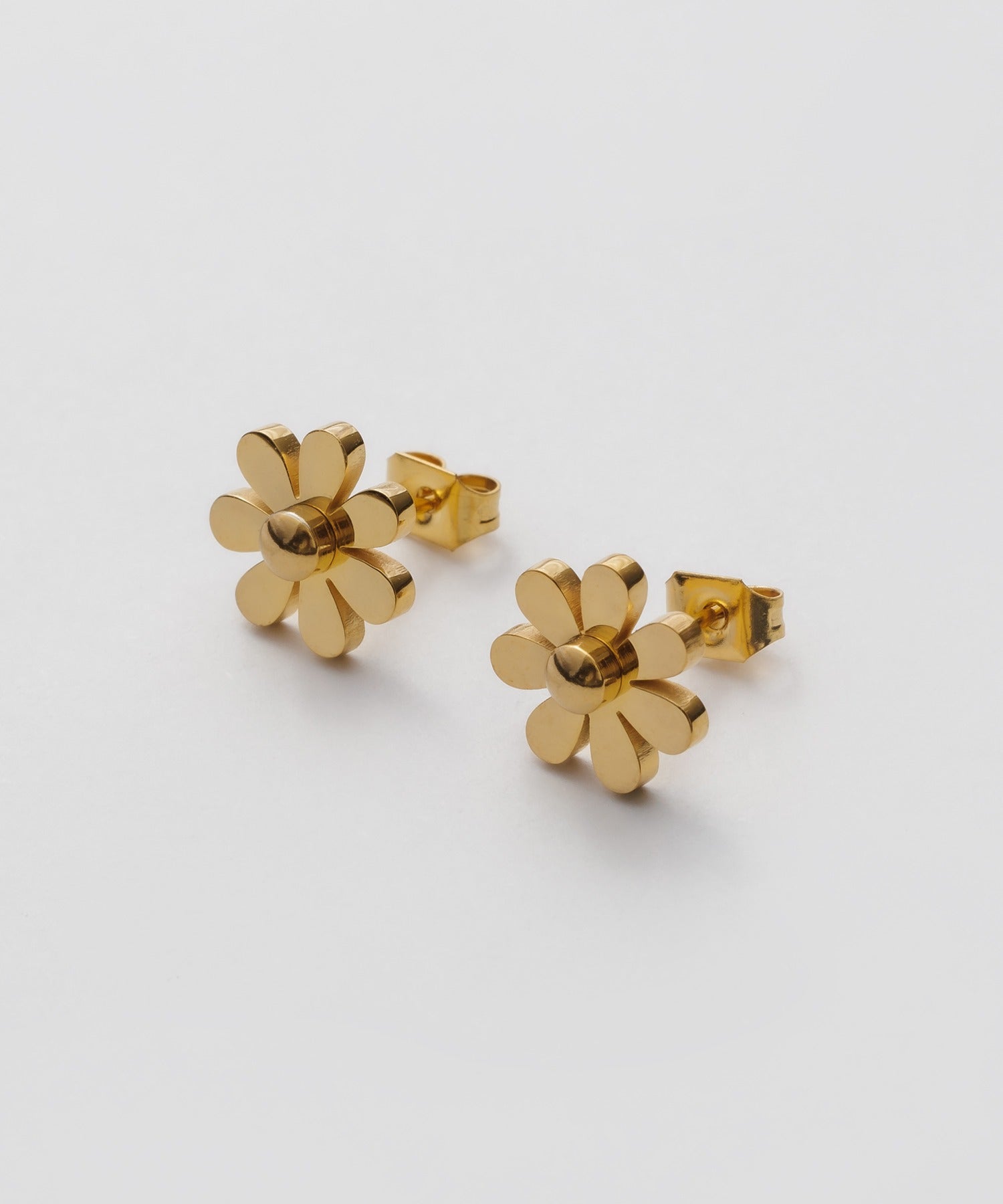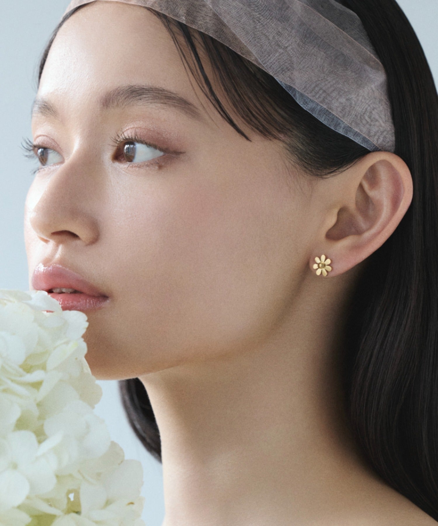 シンプルながらも付けたときのバランスにこだわったフラワーモチーフピアス。