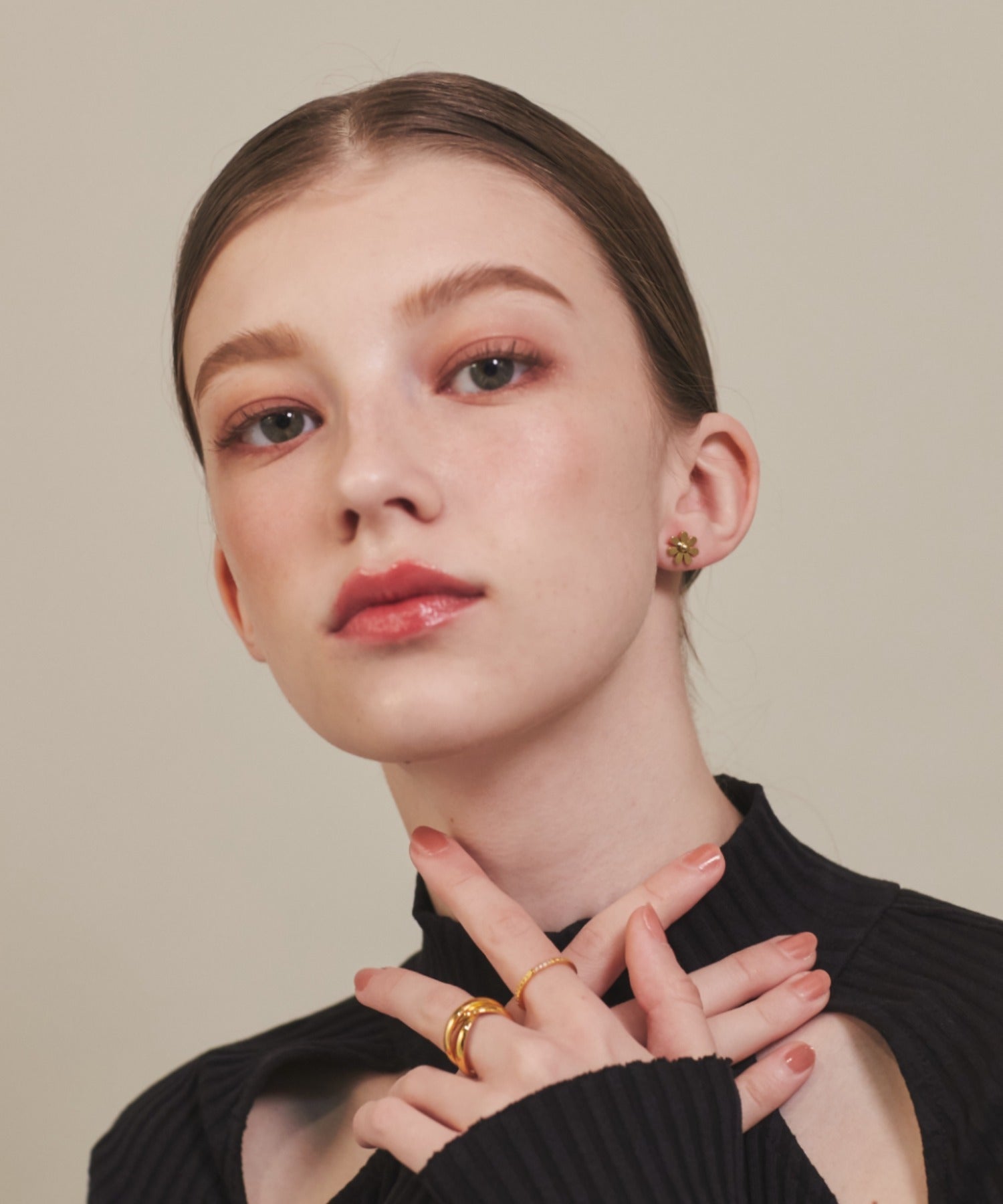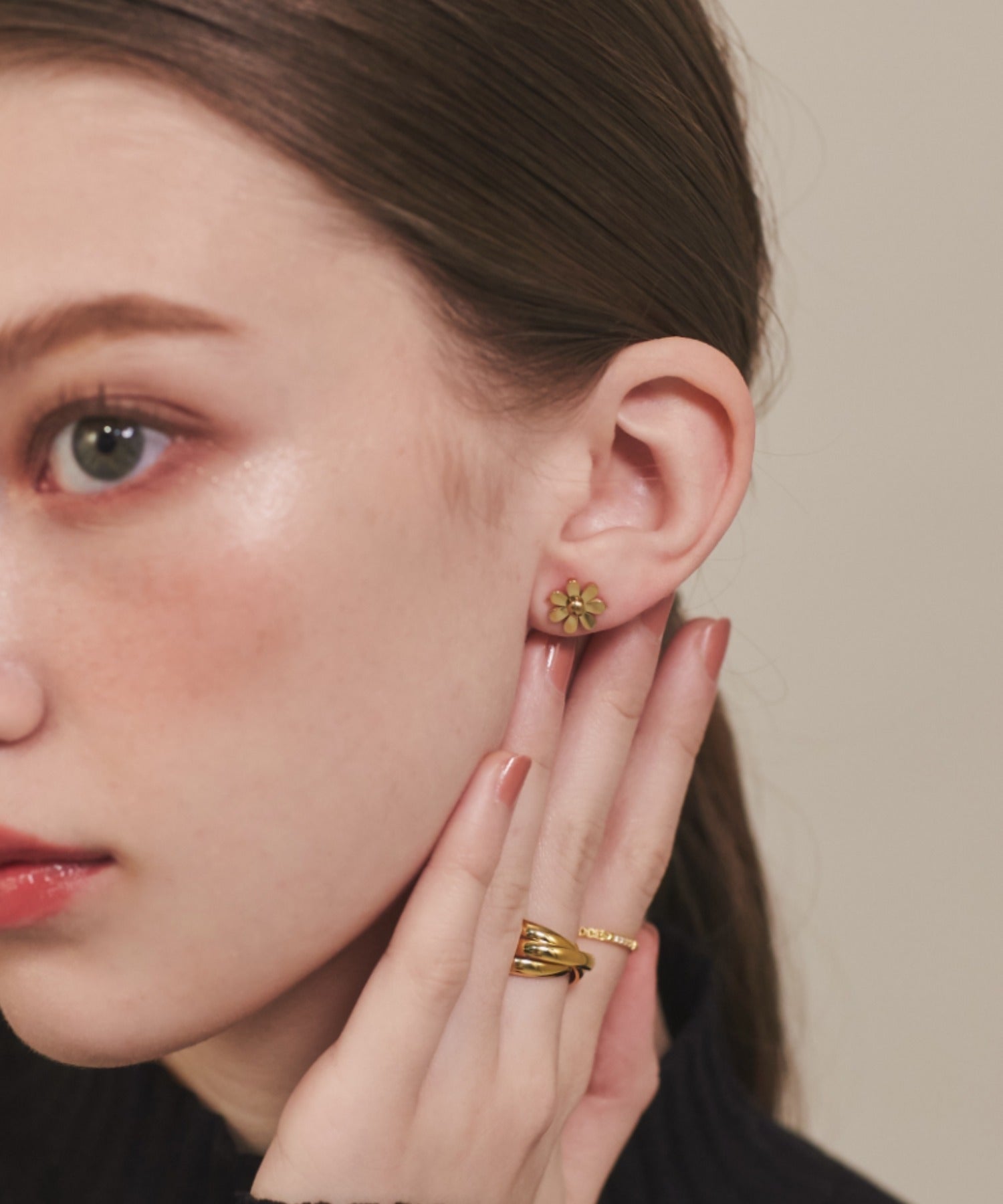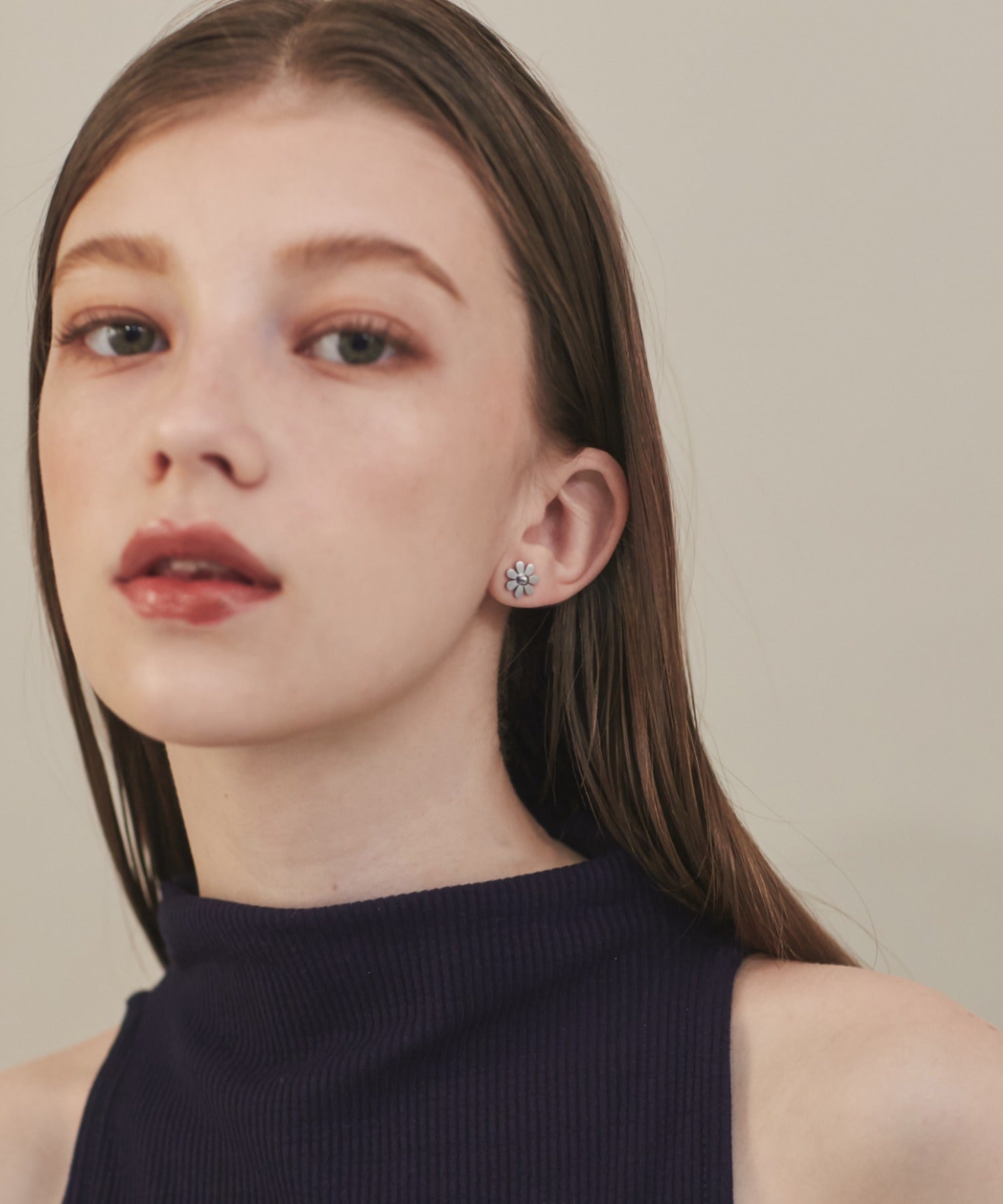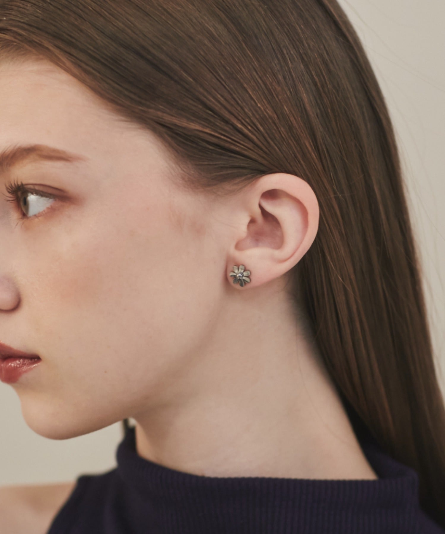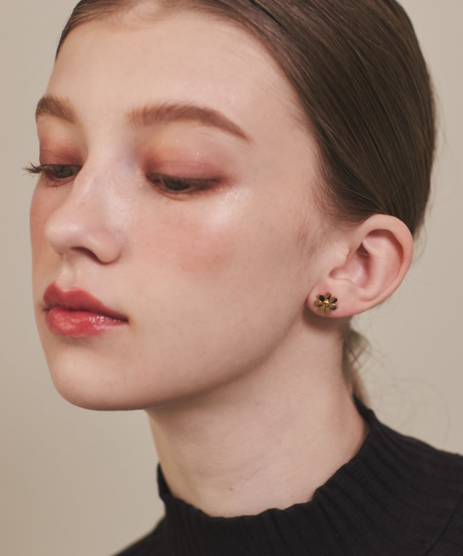 シンプルながらも付けたときのバランスにこだわったフラワーモチーフピアス。
