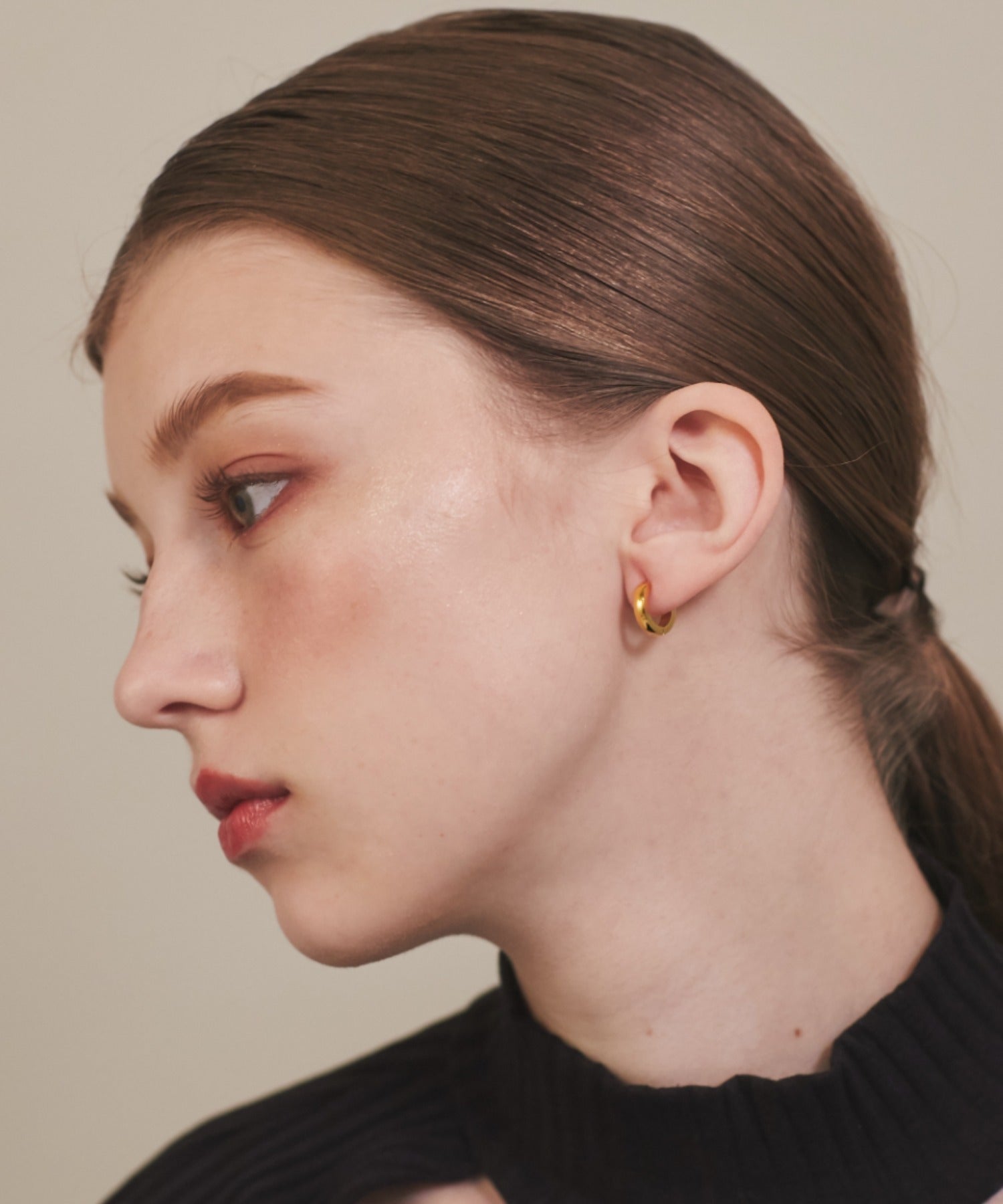 シンプルながらも付けたときのバランスにこだわったフープピアス。