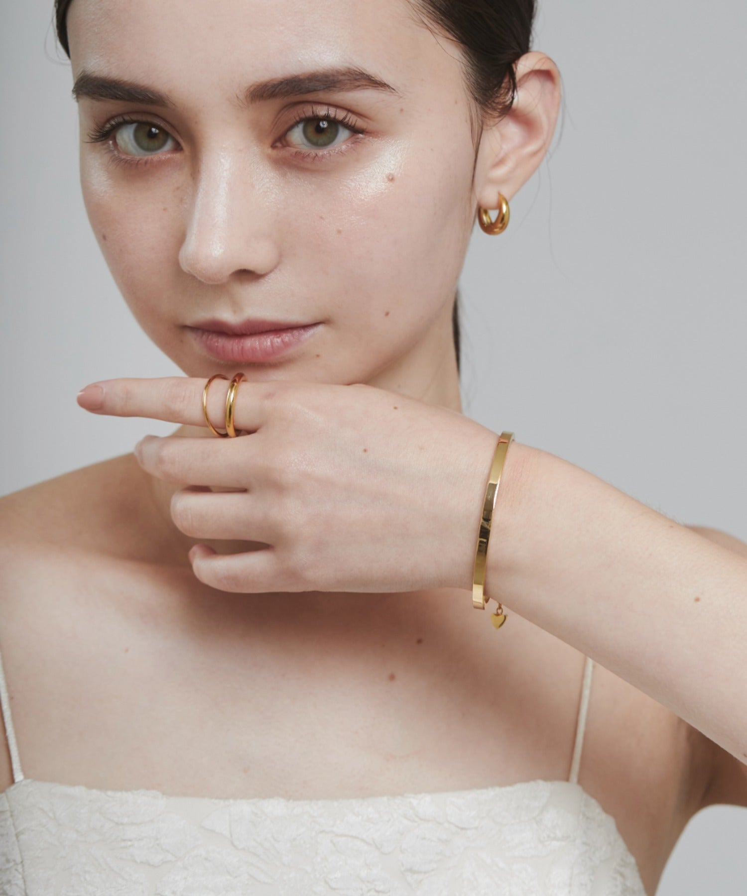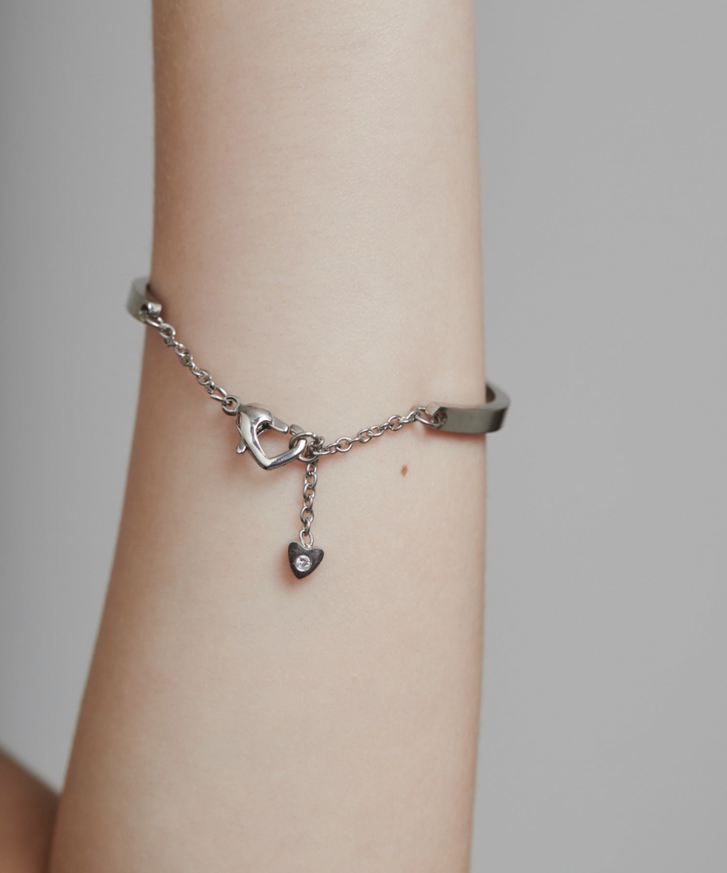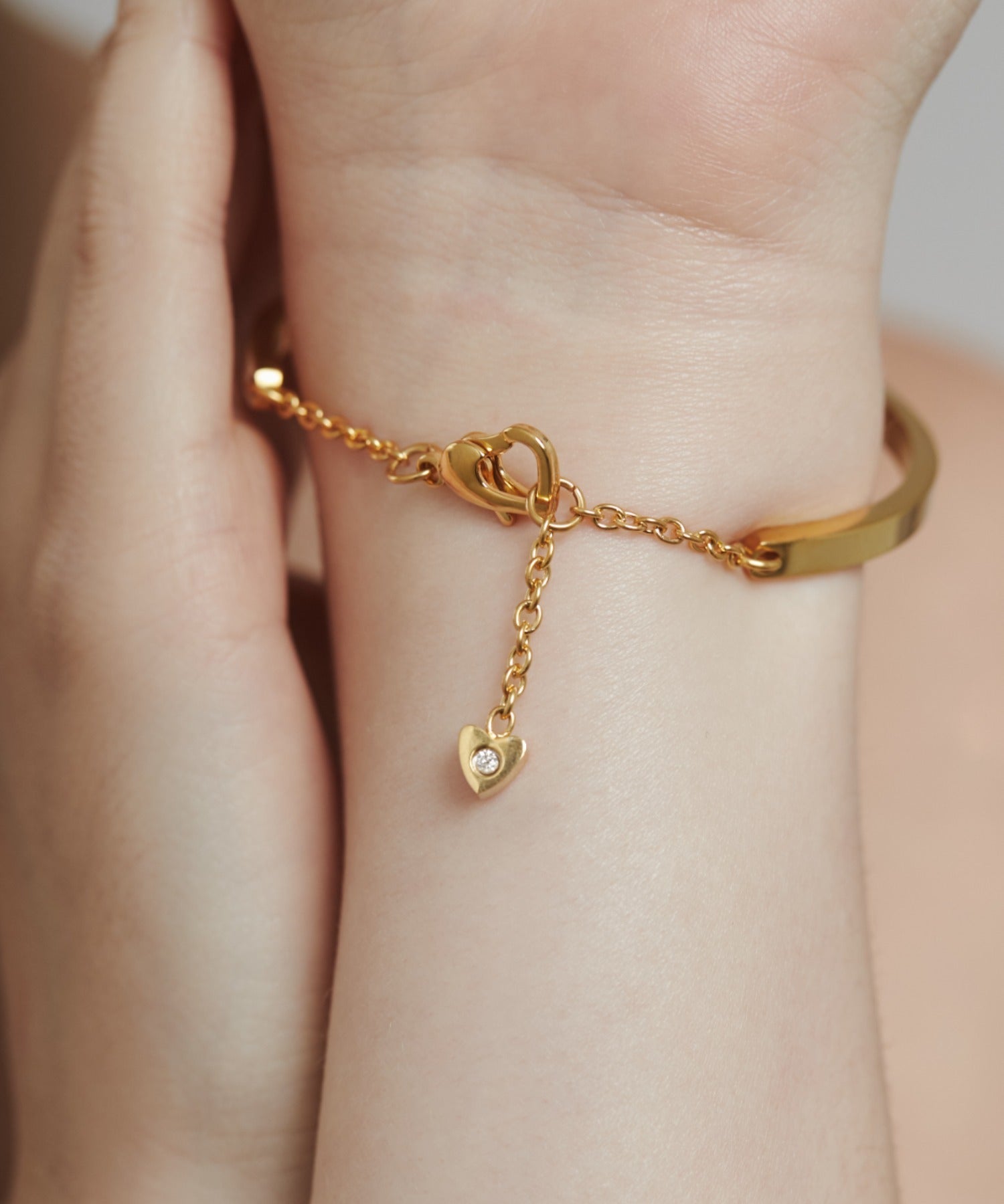 【 金属アレルギー対応 】 ハートビジュー シンプルブレスレット / バングル サージカルステンレス