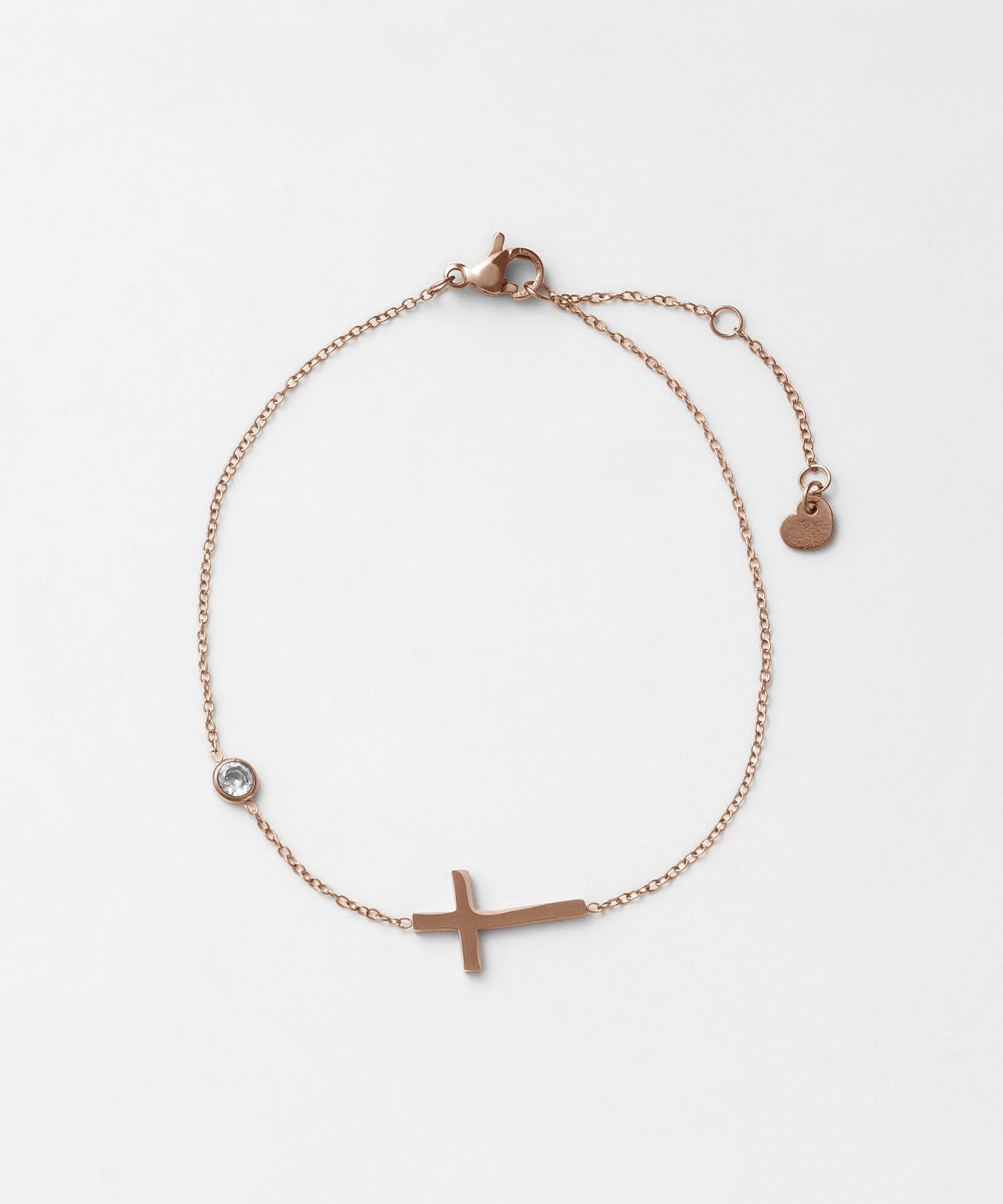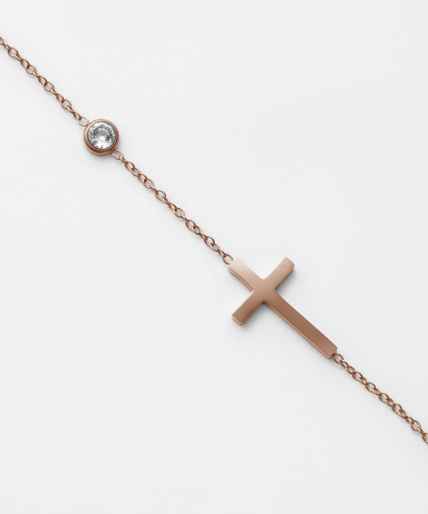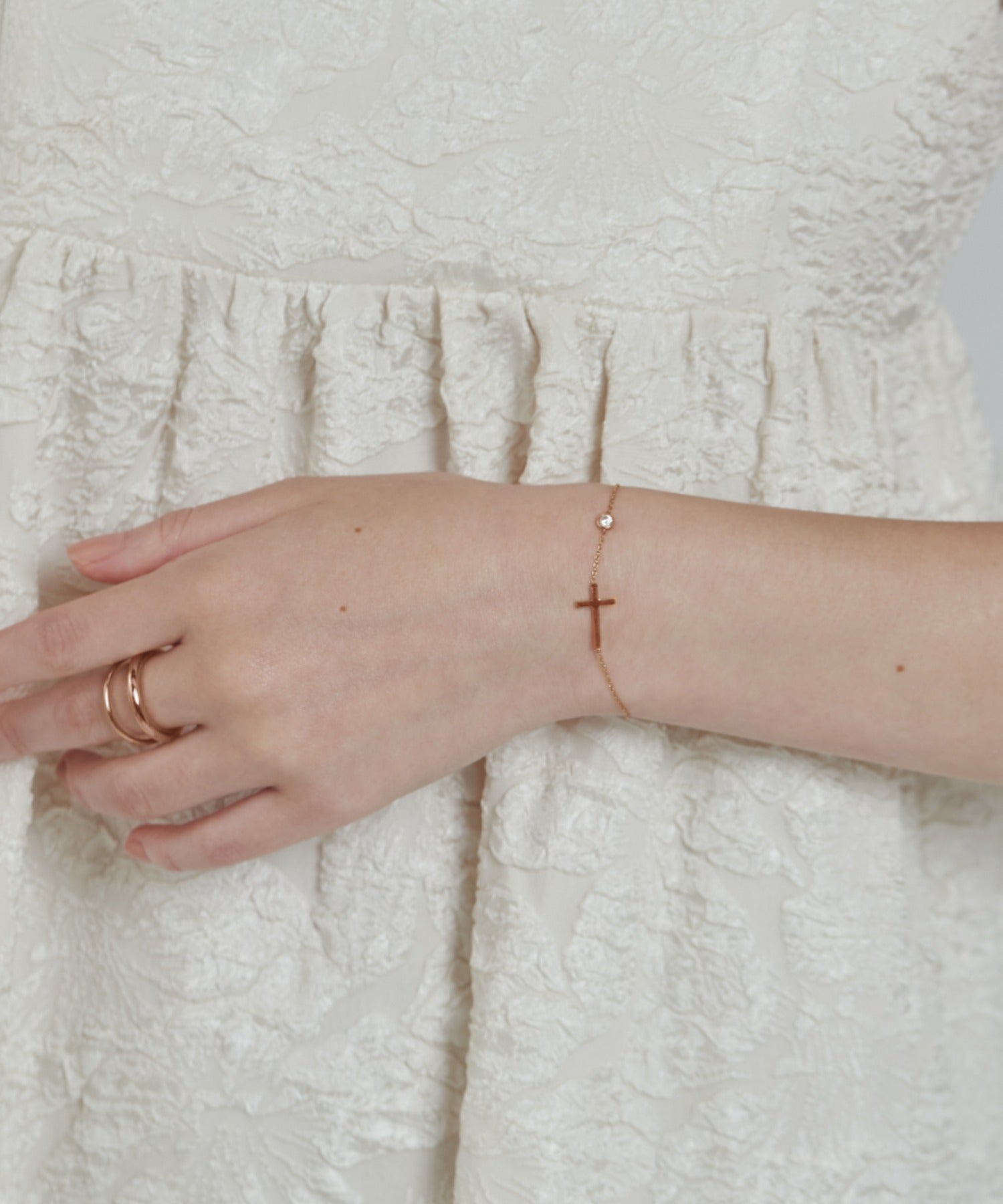クロスと小ぶりなビジューが大人可愛い印象のブレスレット。