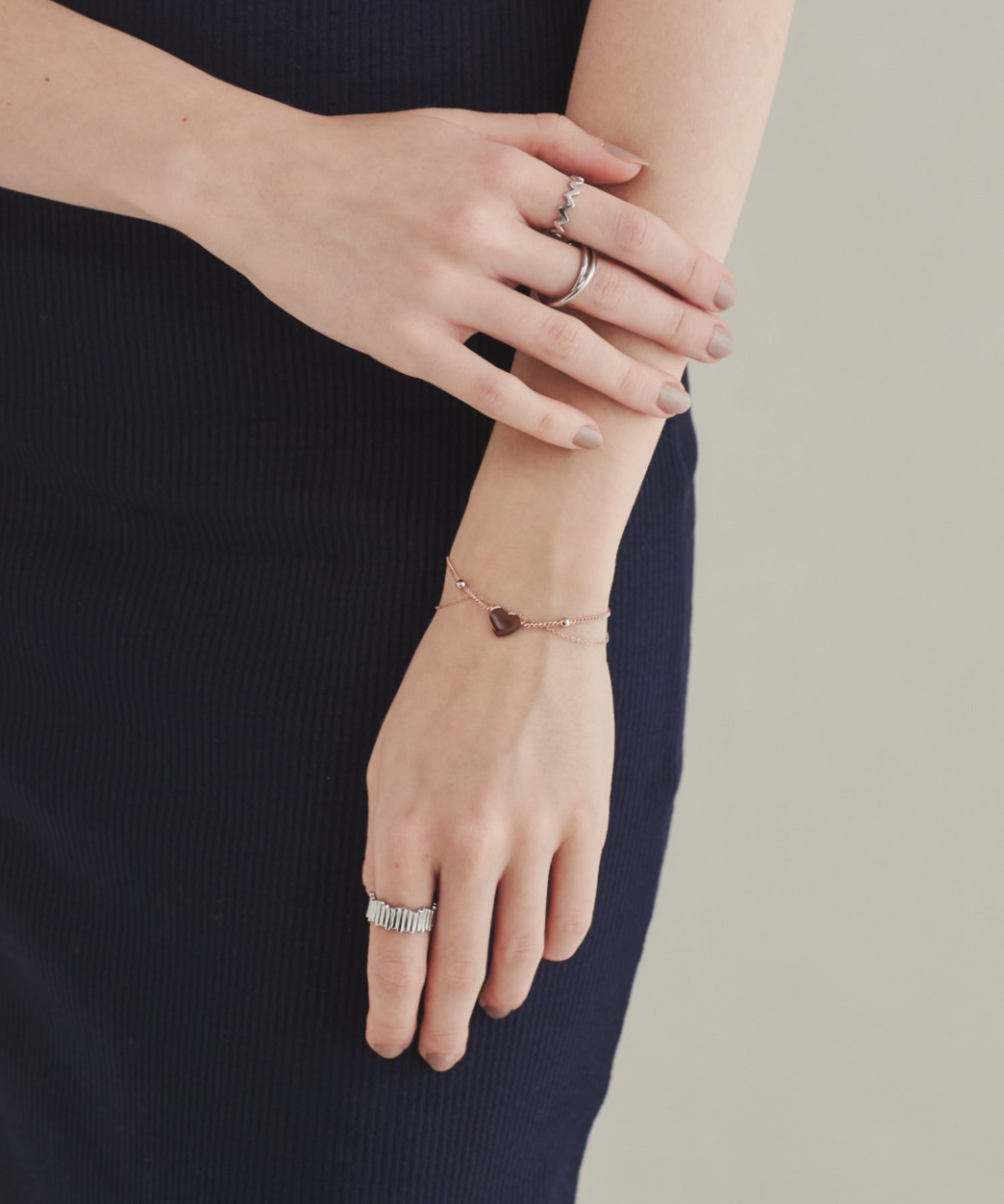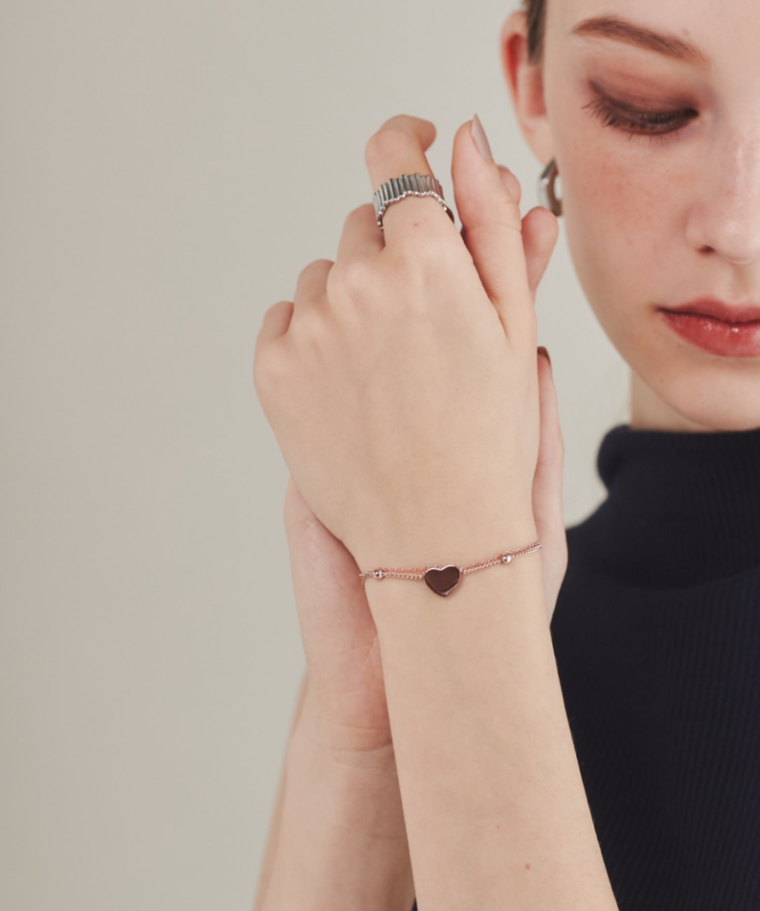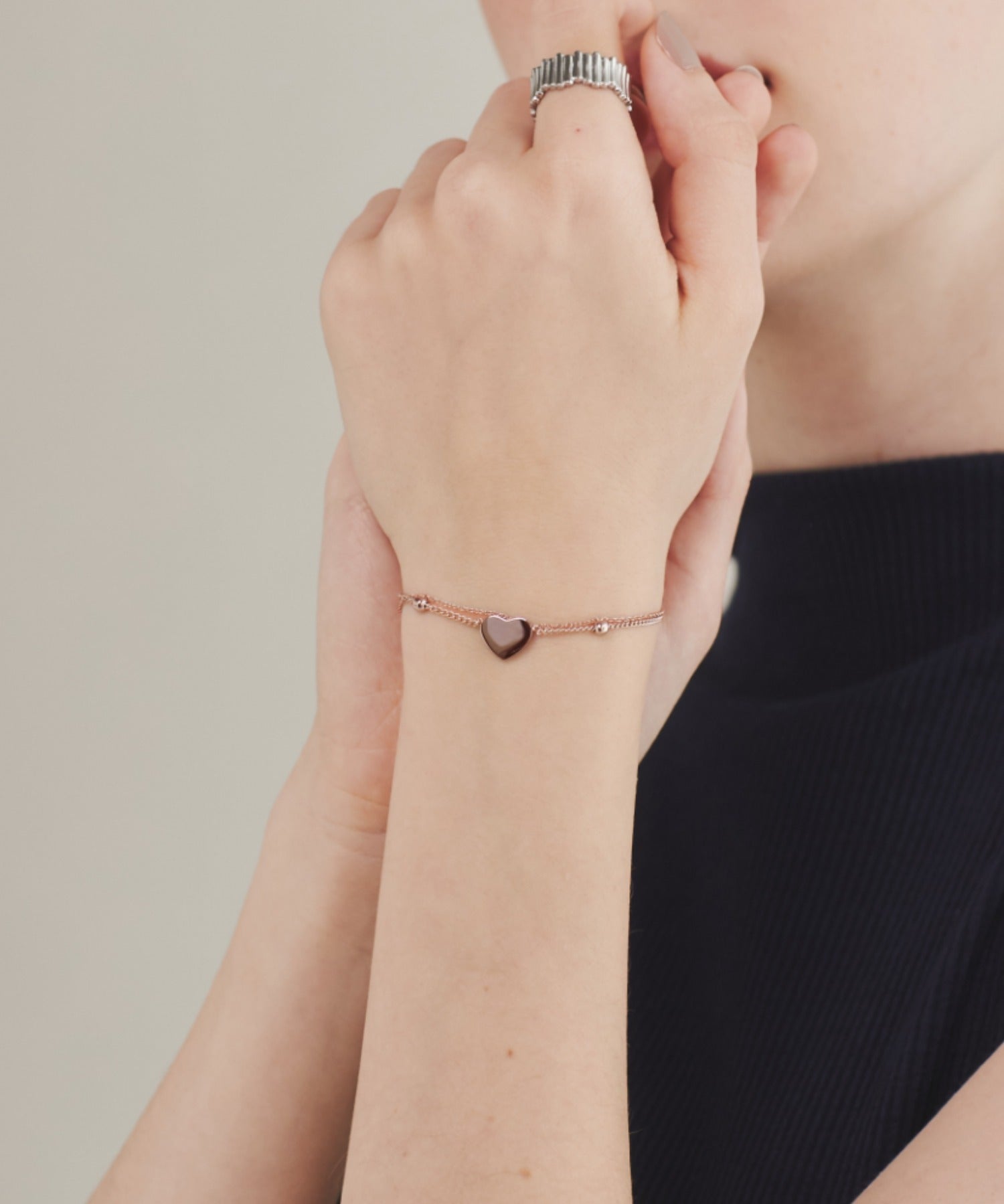 ハートデザインが大人可愛い印象の2連ブレスレット。