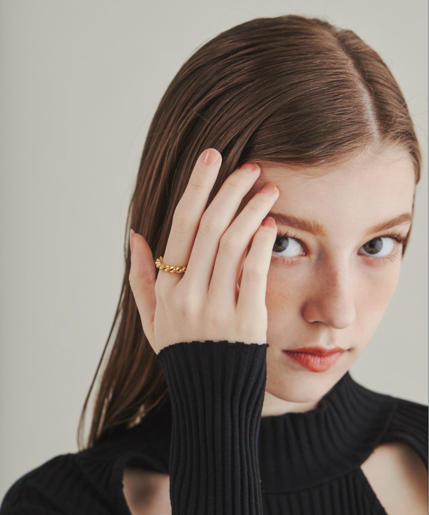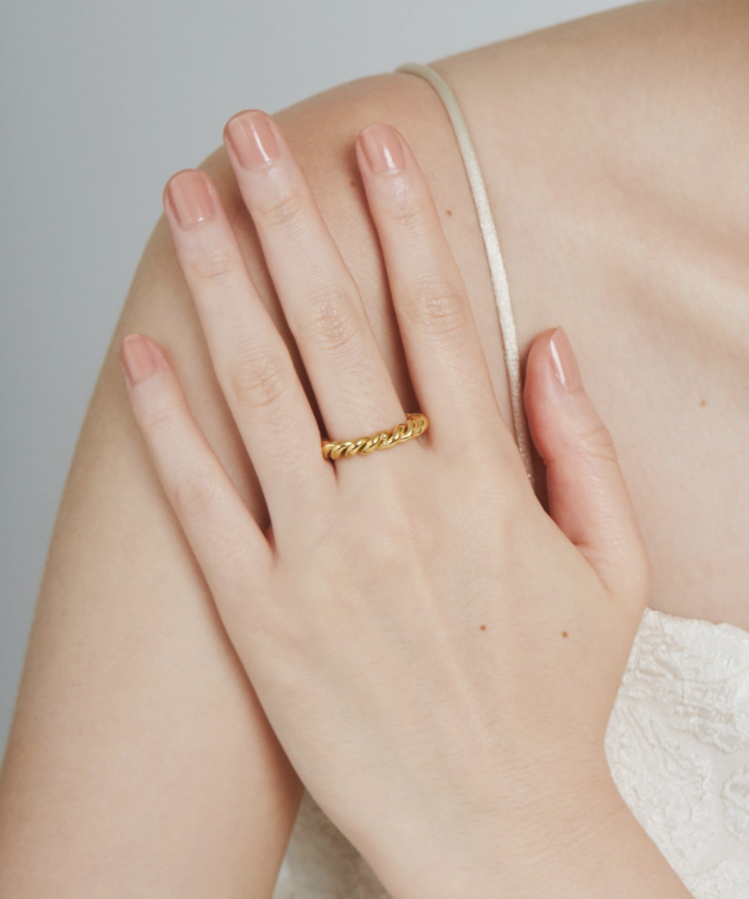 ツイストデザインが大人可愛い印象のリング。