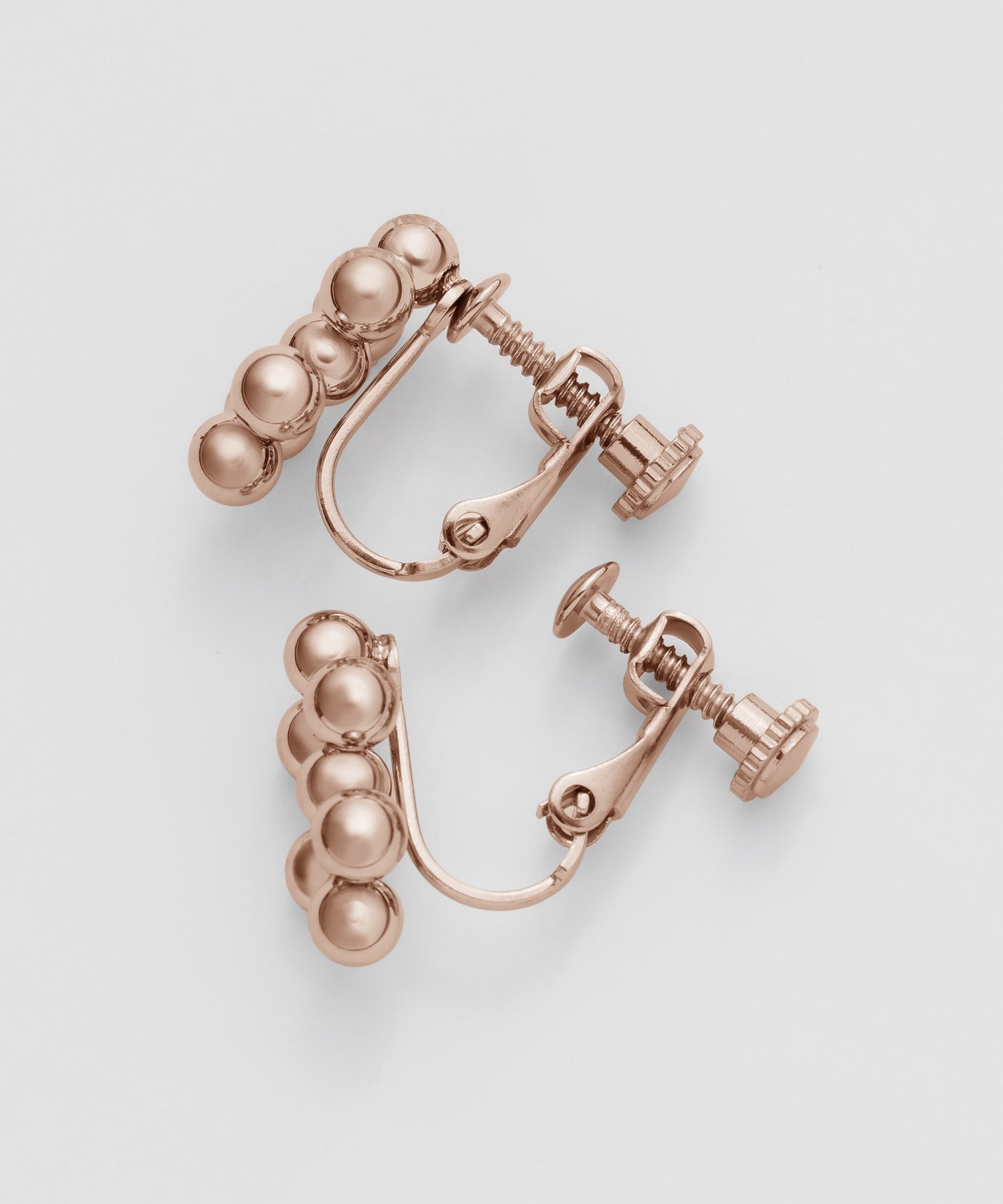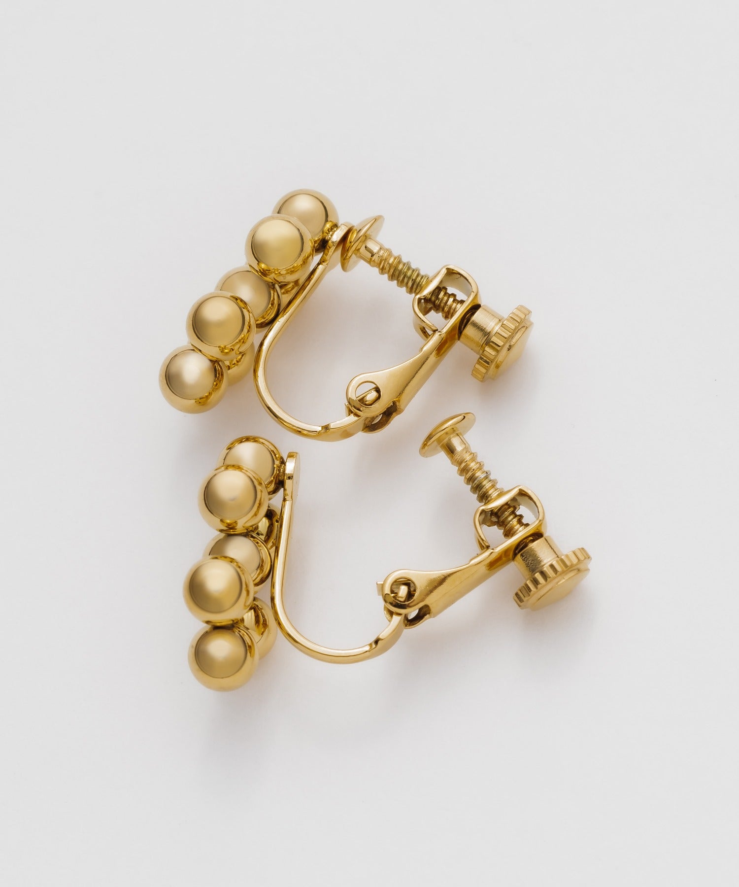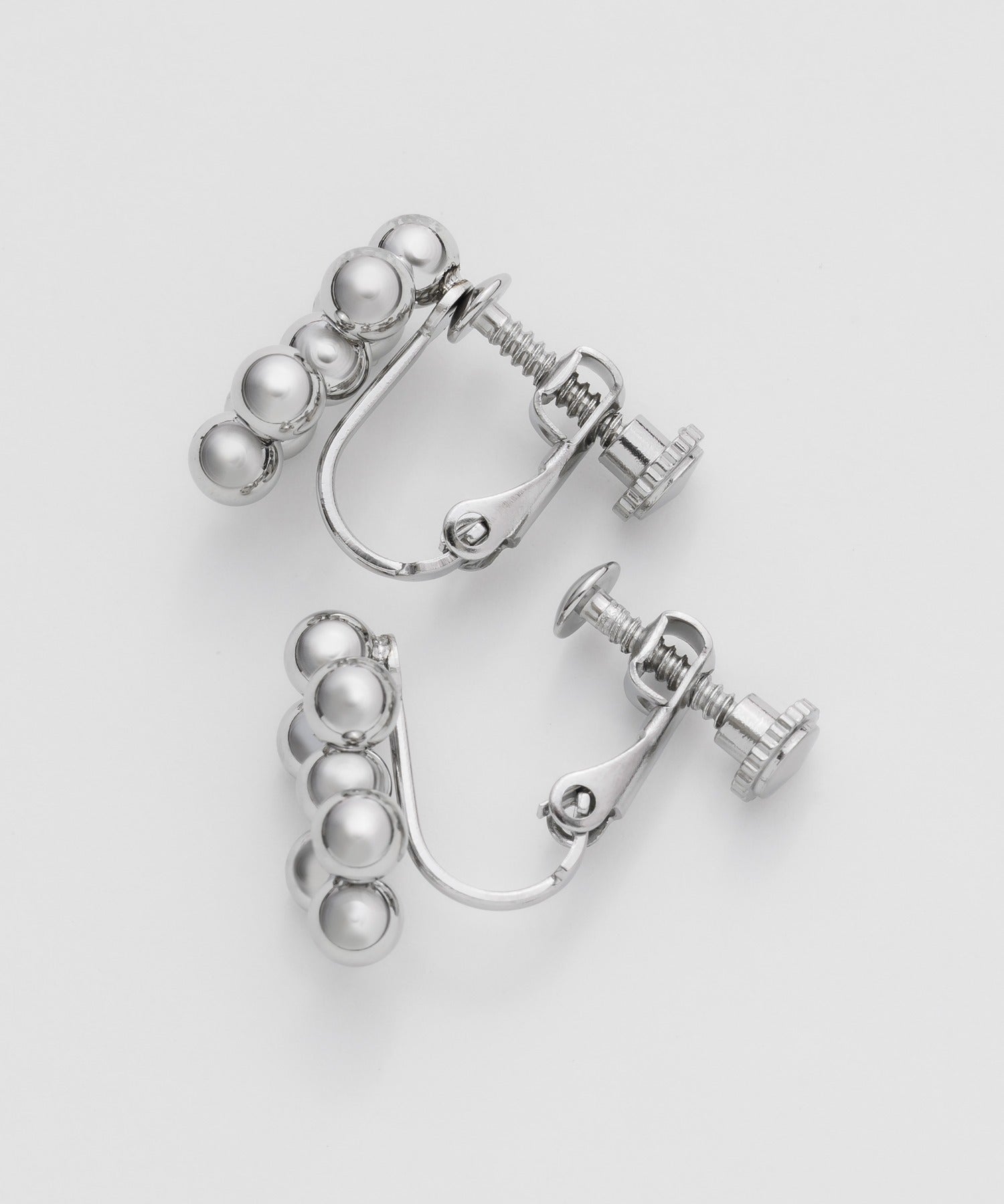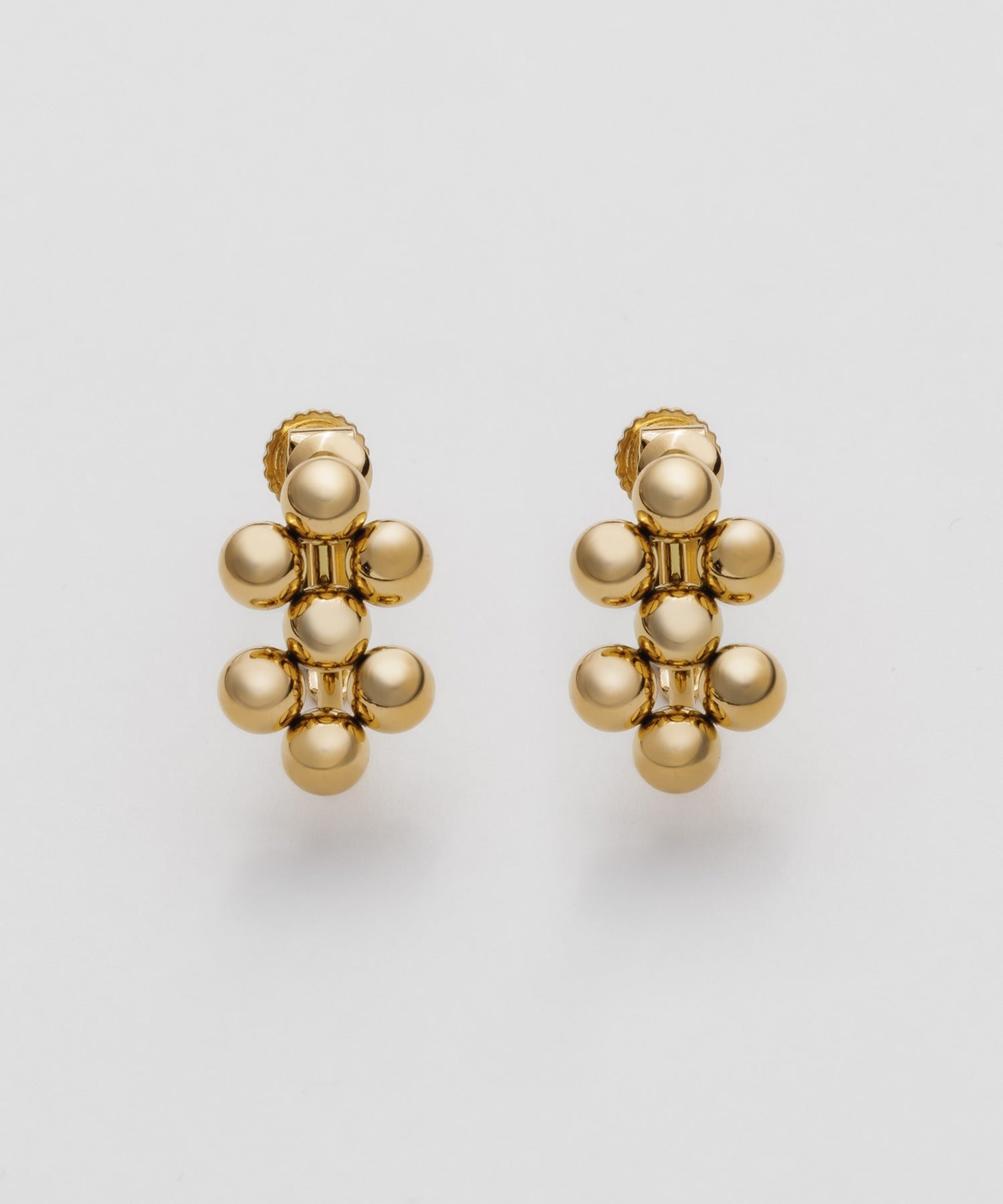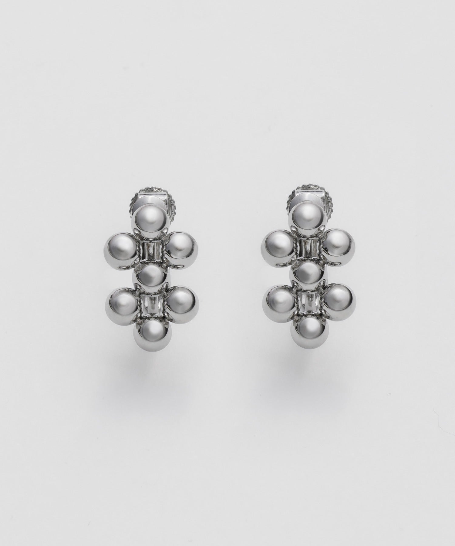 小さい○を集めたようなデザインが大人可愛い印象のデザインイヤリング。