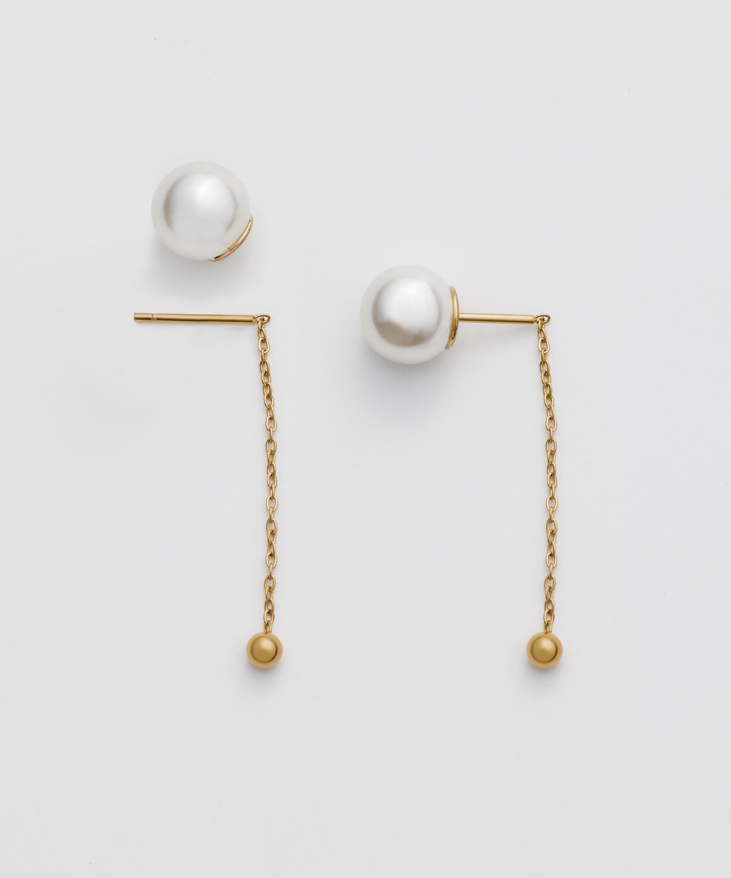 【 金属アレルギー対応 】 2way パールピアス サージカルステンレス (両耳用)