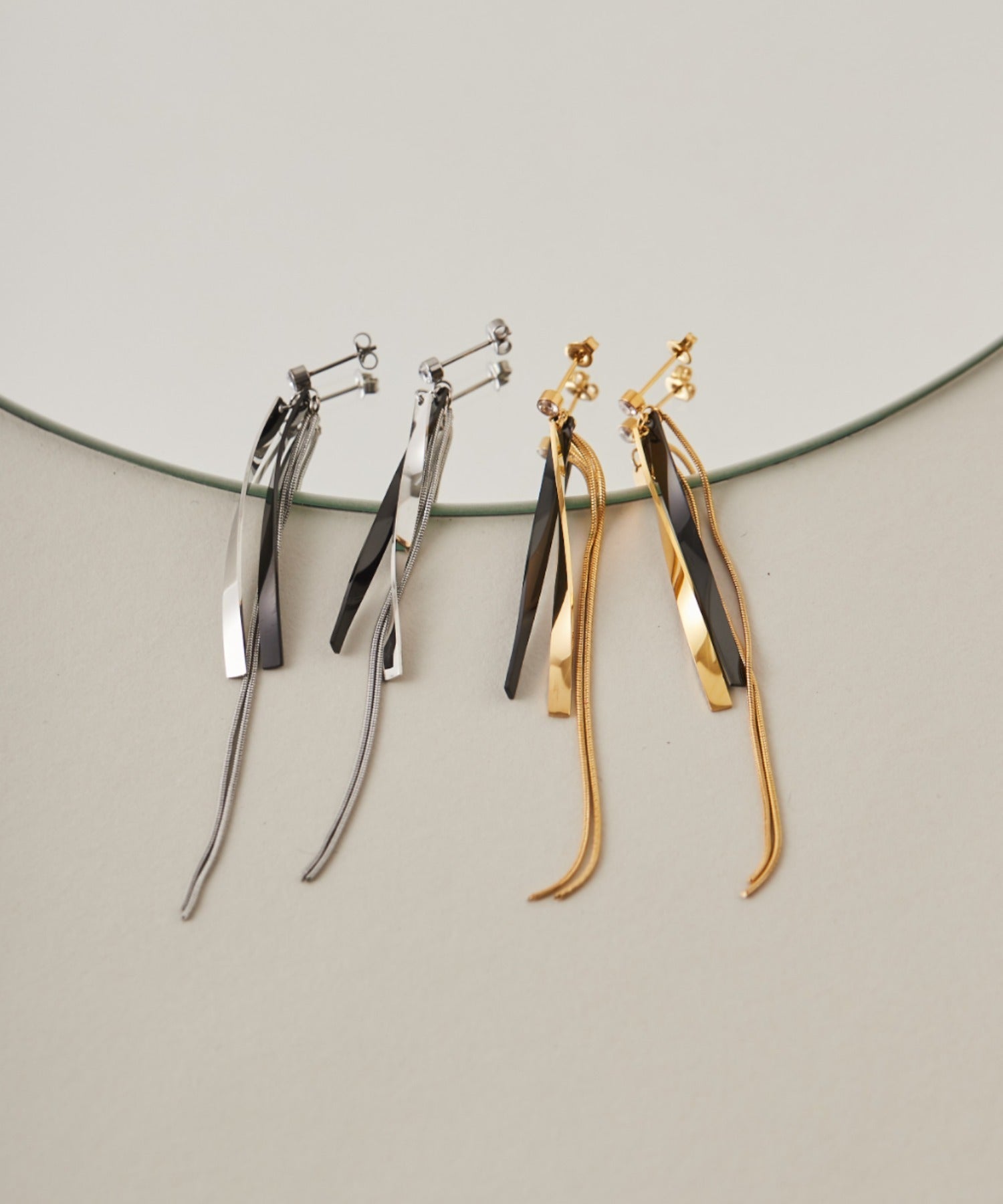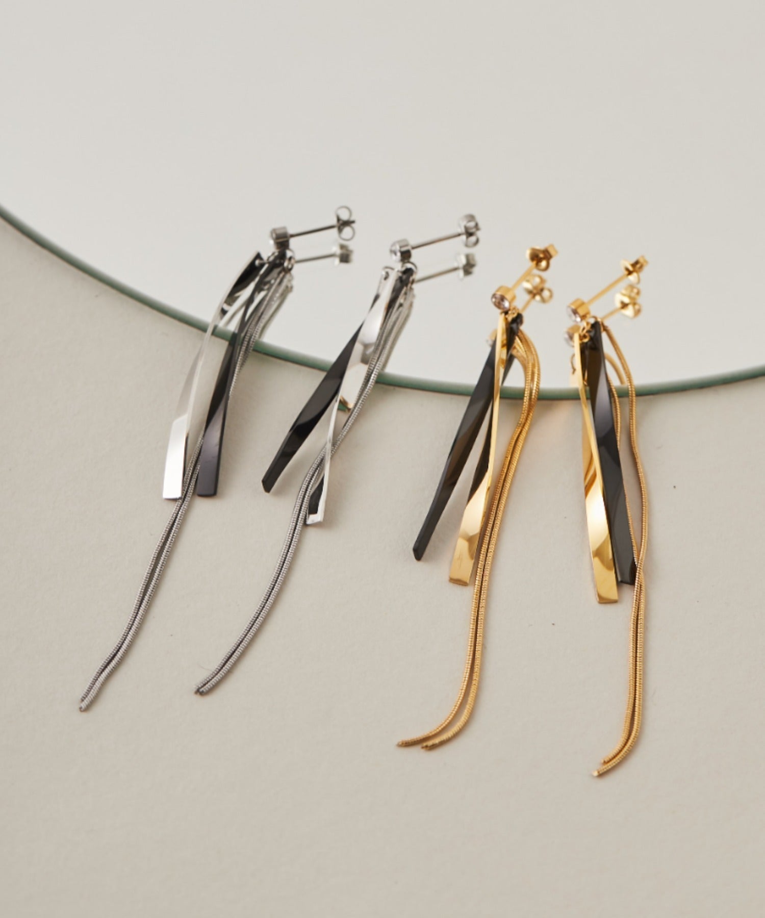 【 金属アレルギー対応 】 ニュアンスロングピアス サージカルステンレス (両耳用)