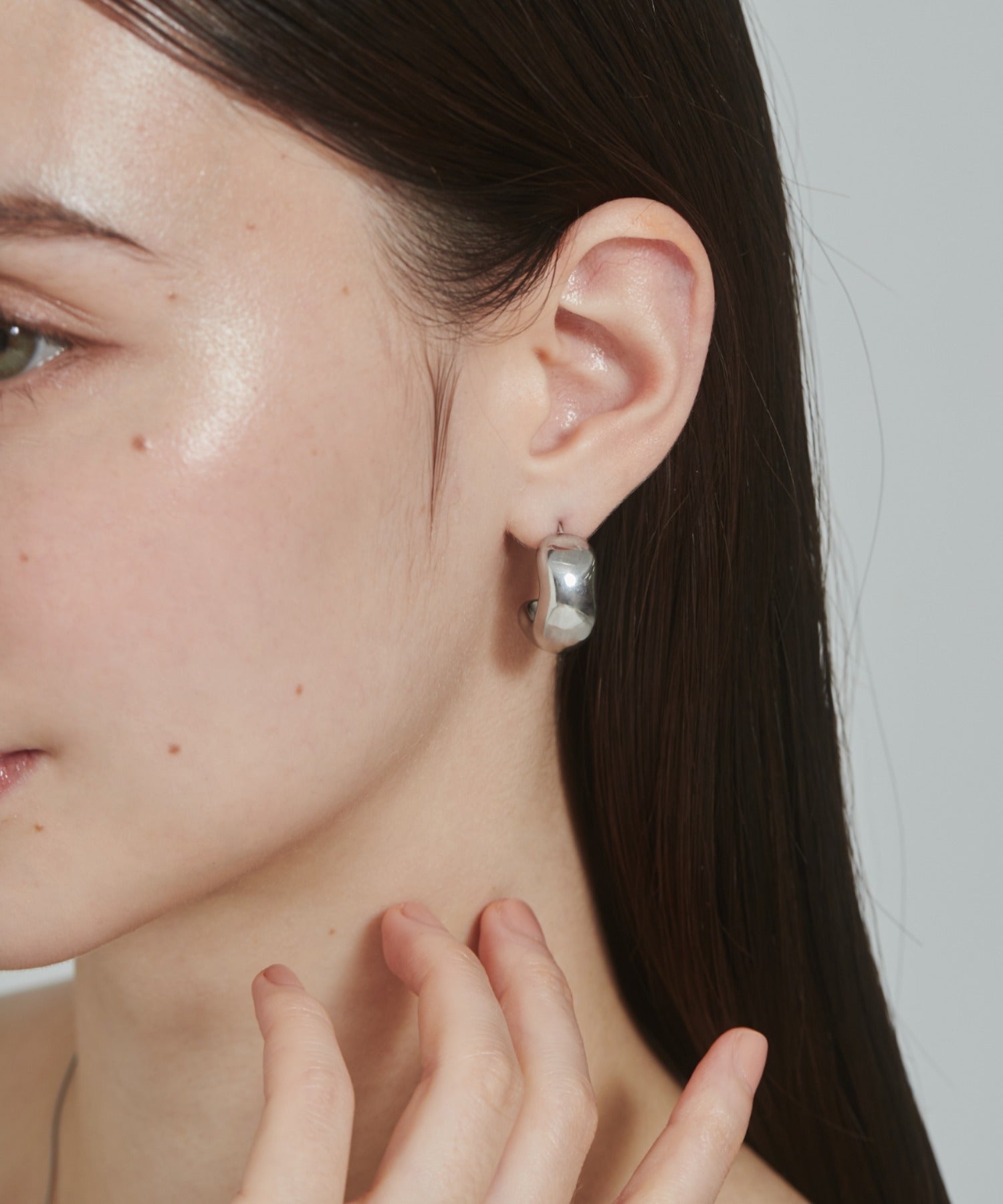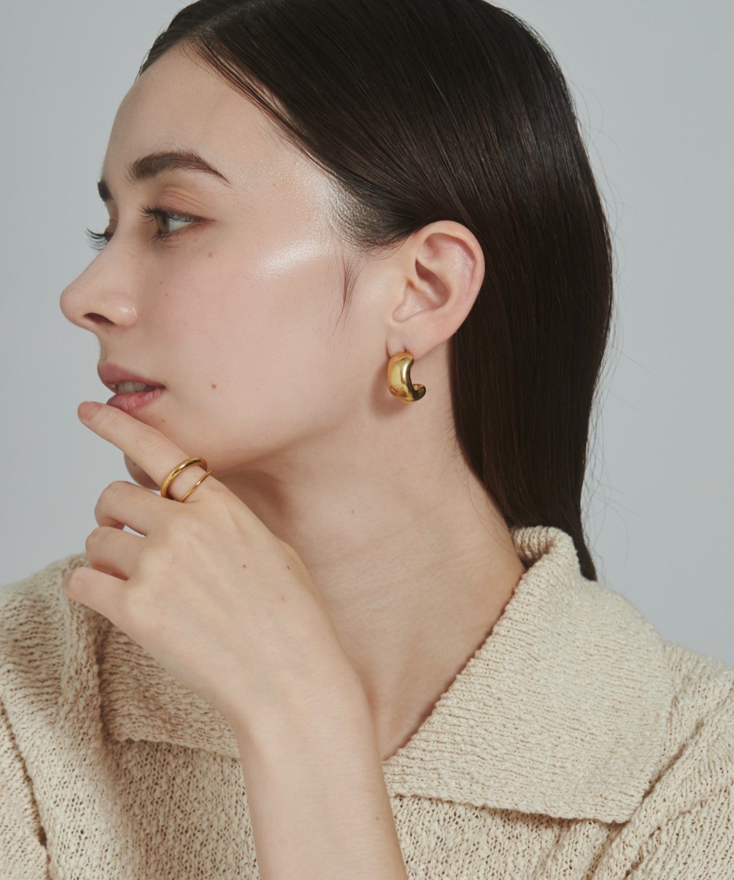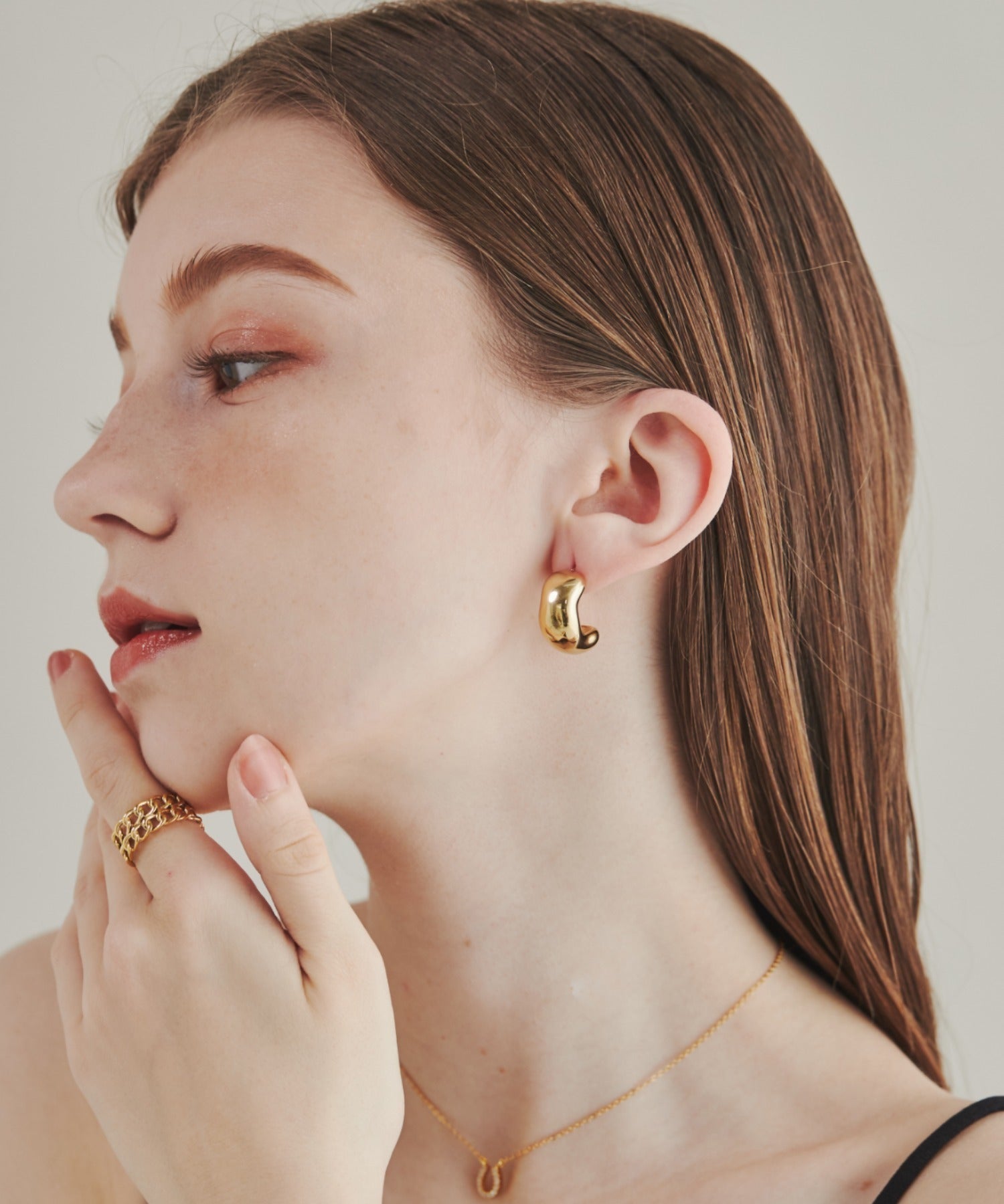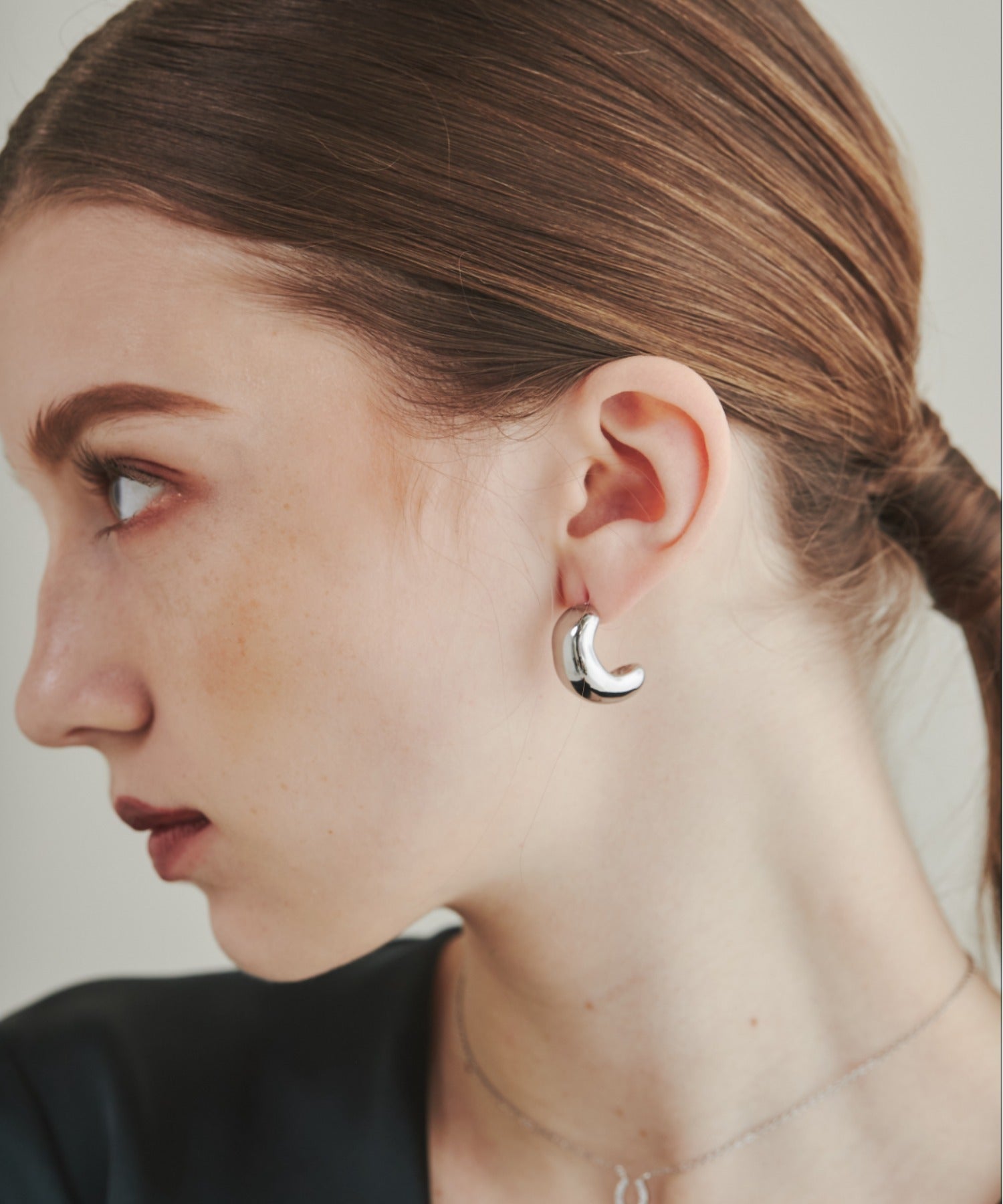 ぷっくりとしたデザインが大人可愛い印象のピアス。