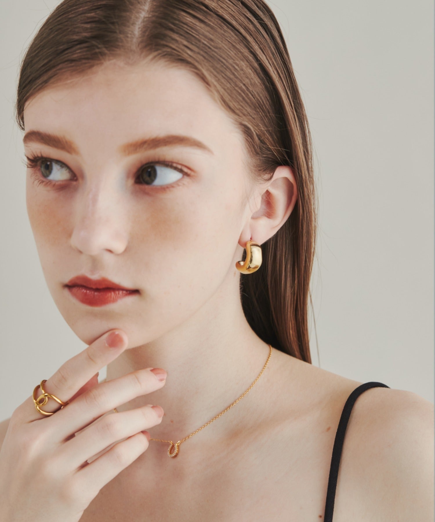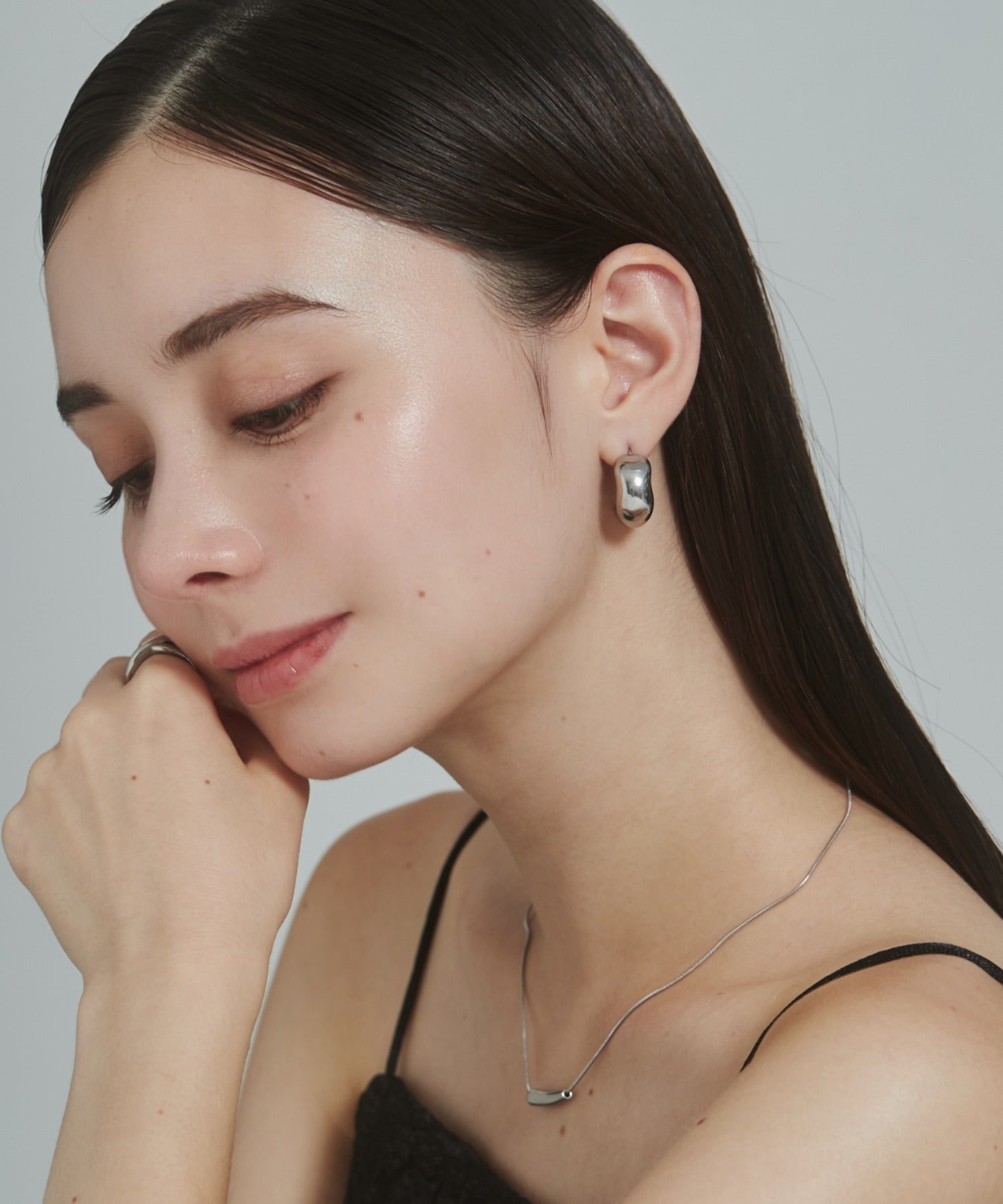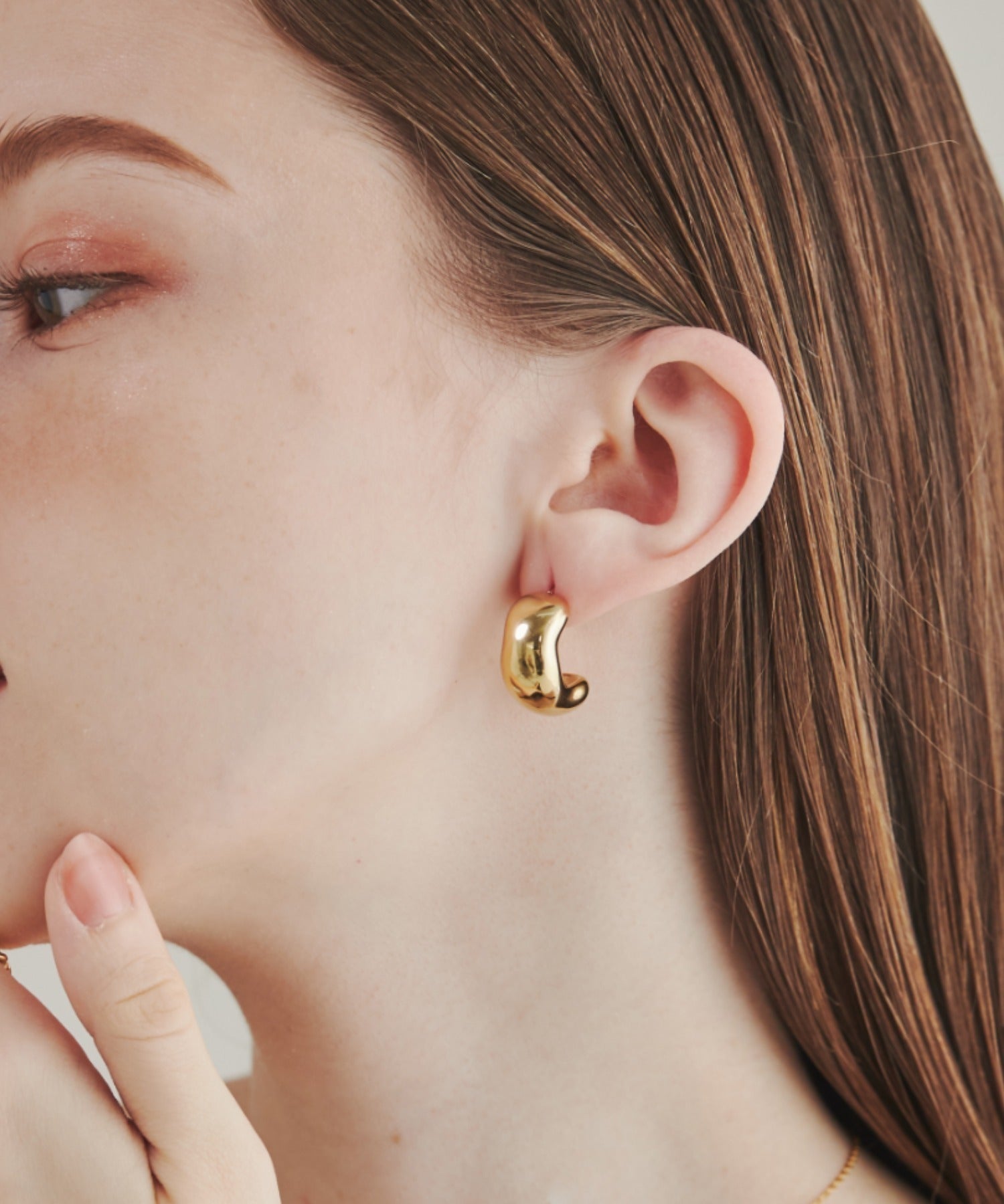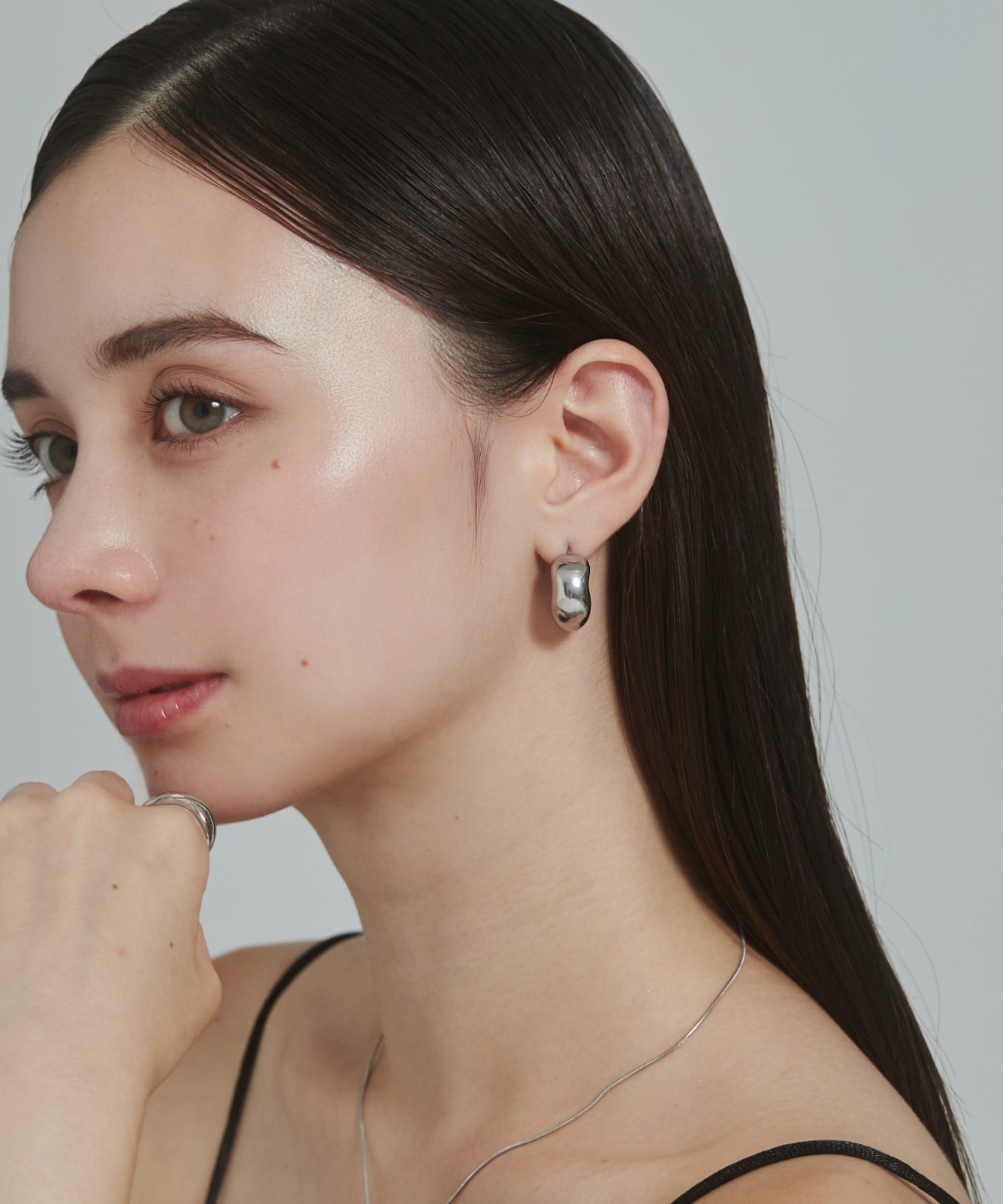 ぷっくりとしたデザインが大人可愛い印象のピアス。