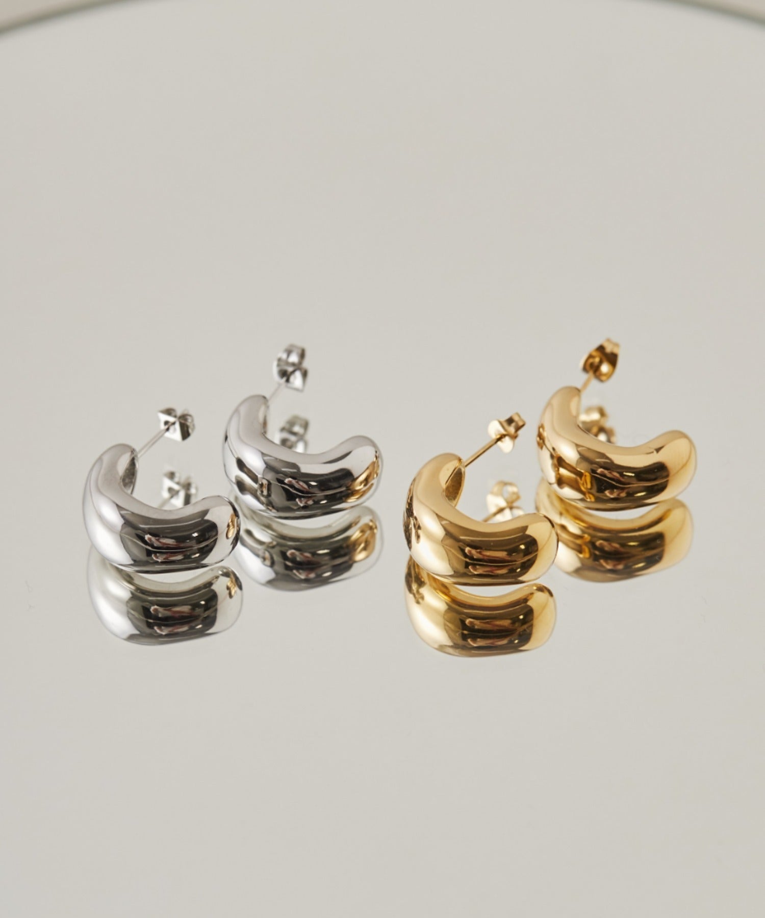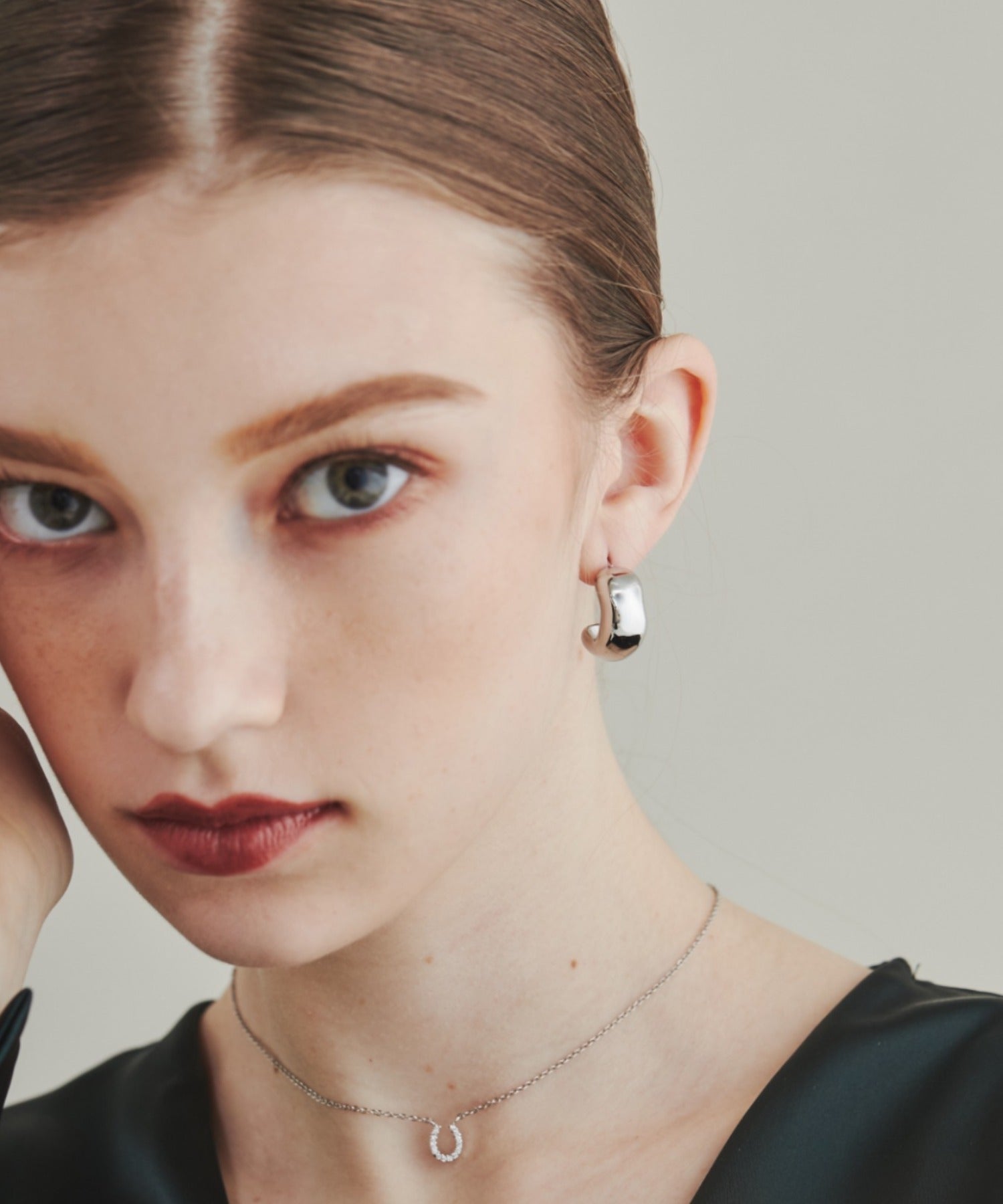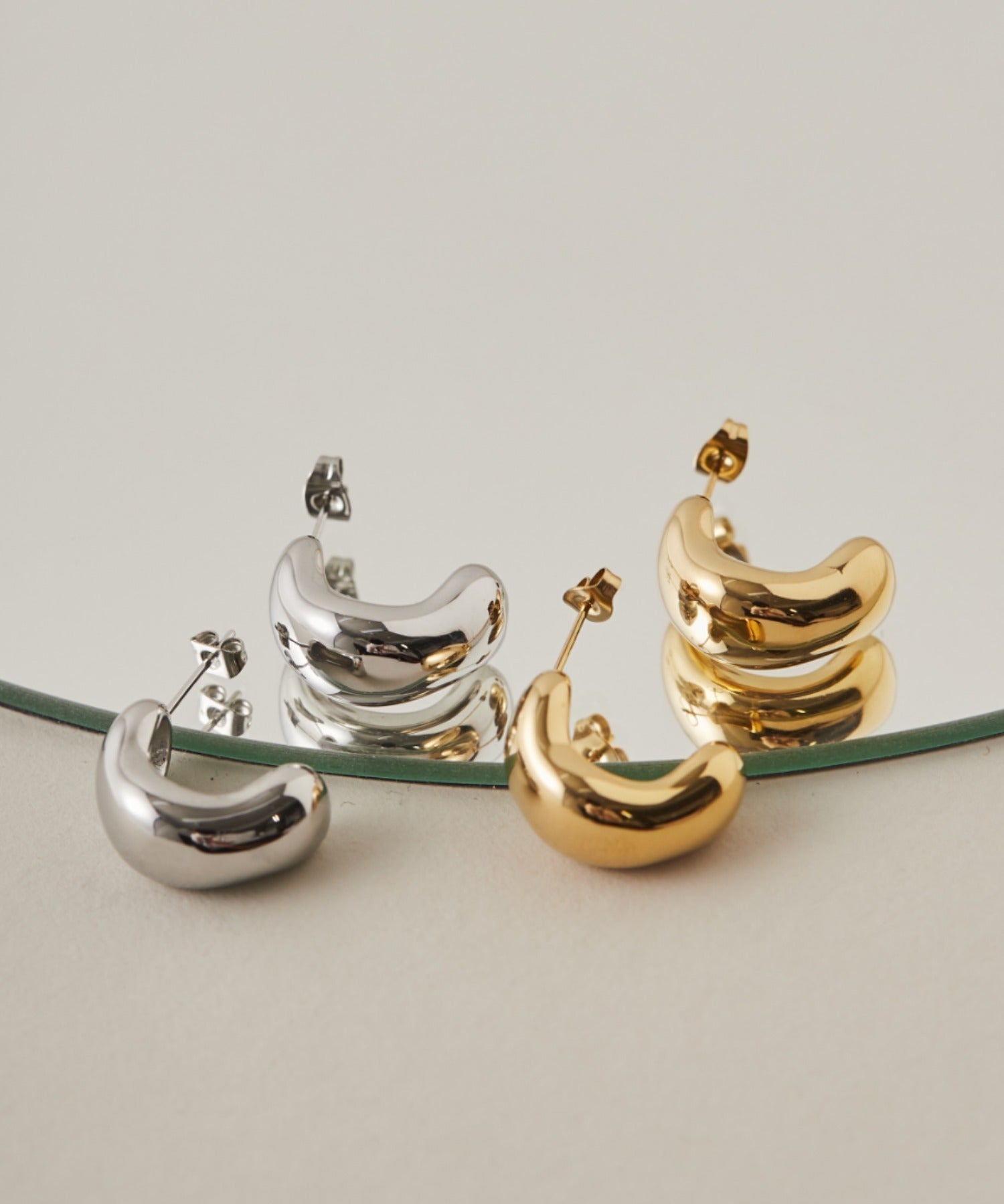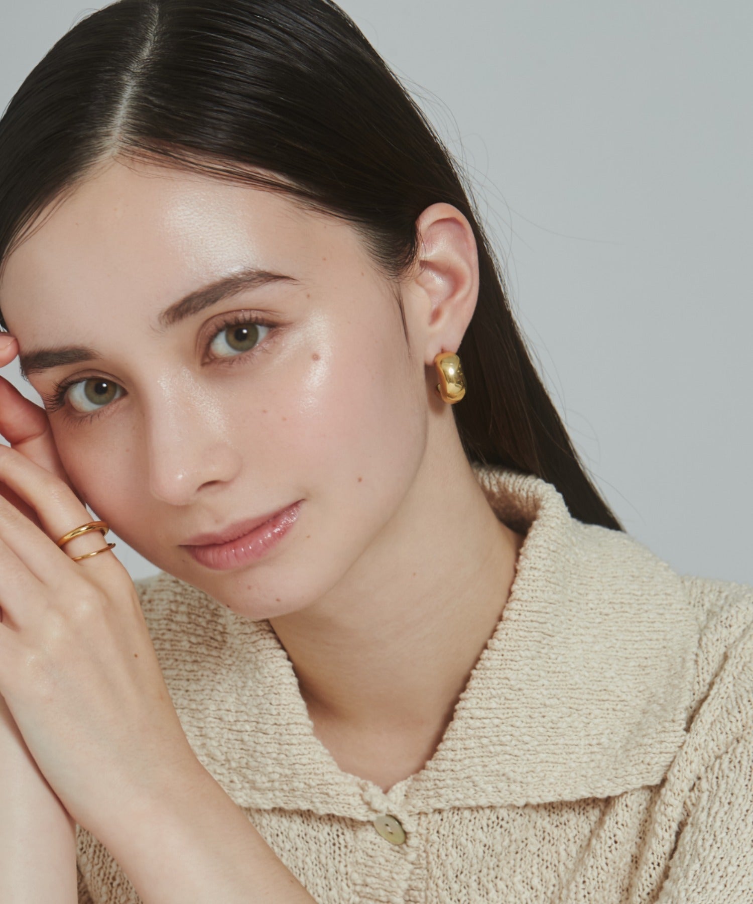 ぷっくりとしたデザインが大人可愛い印象のピアス。