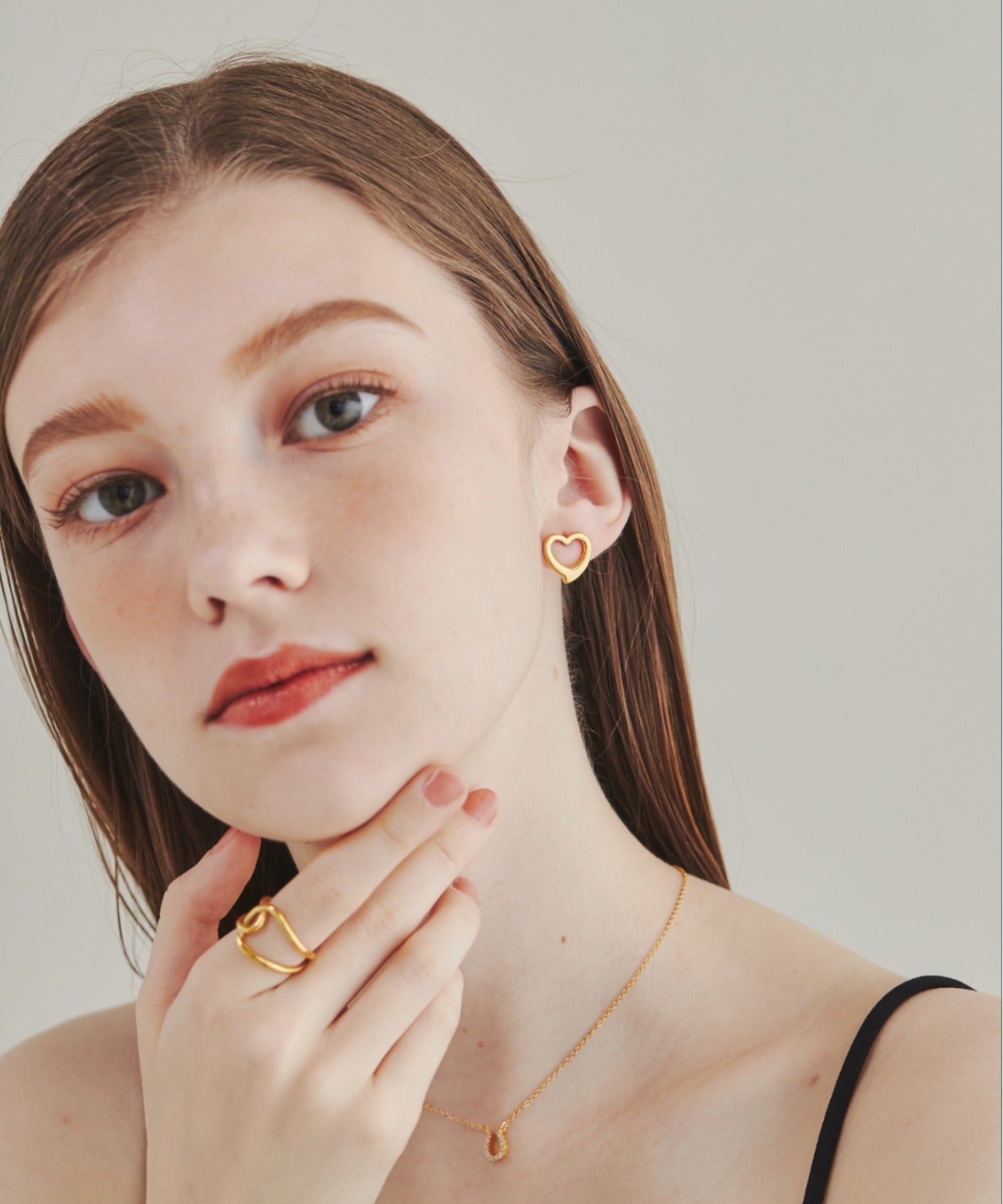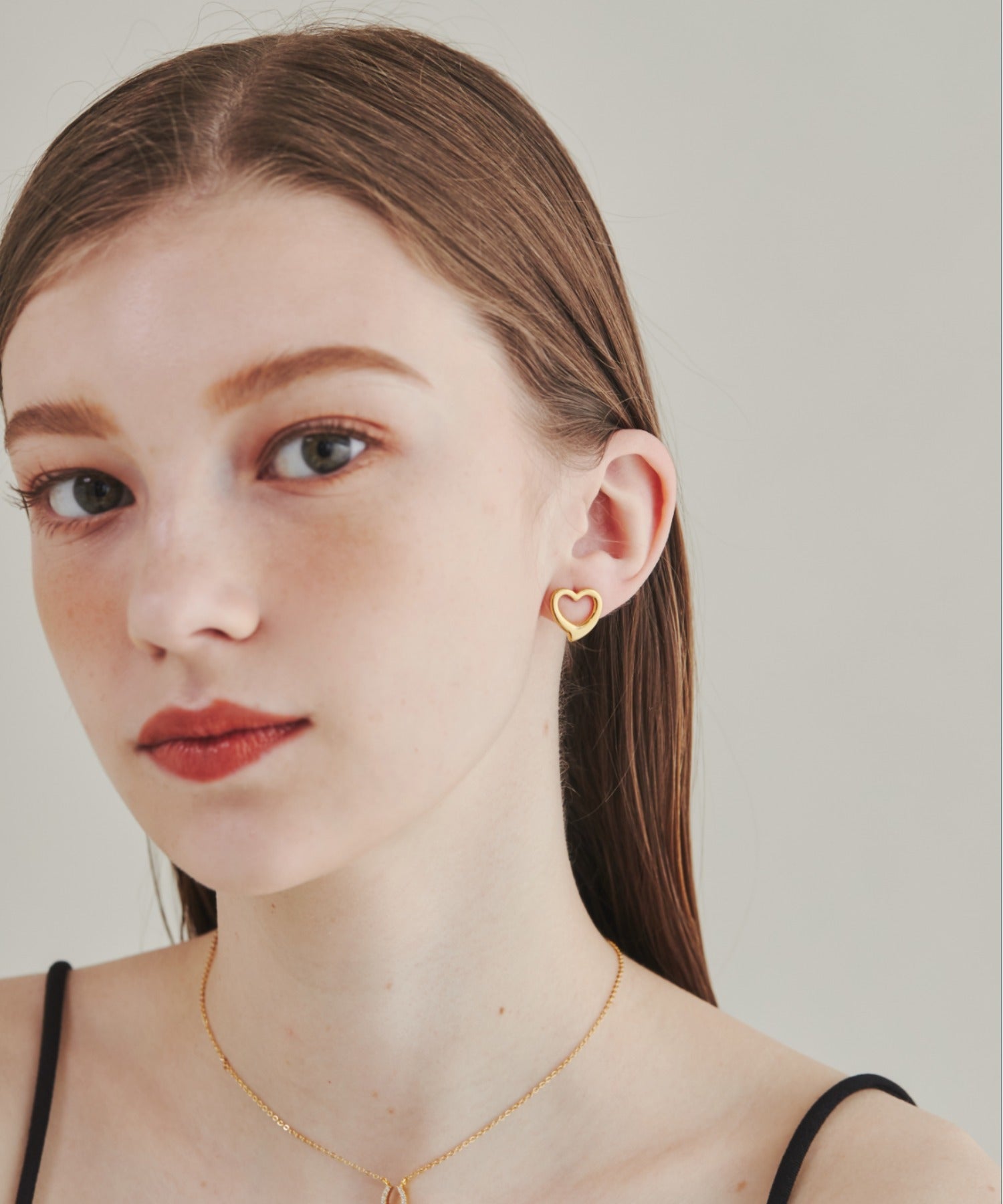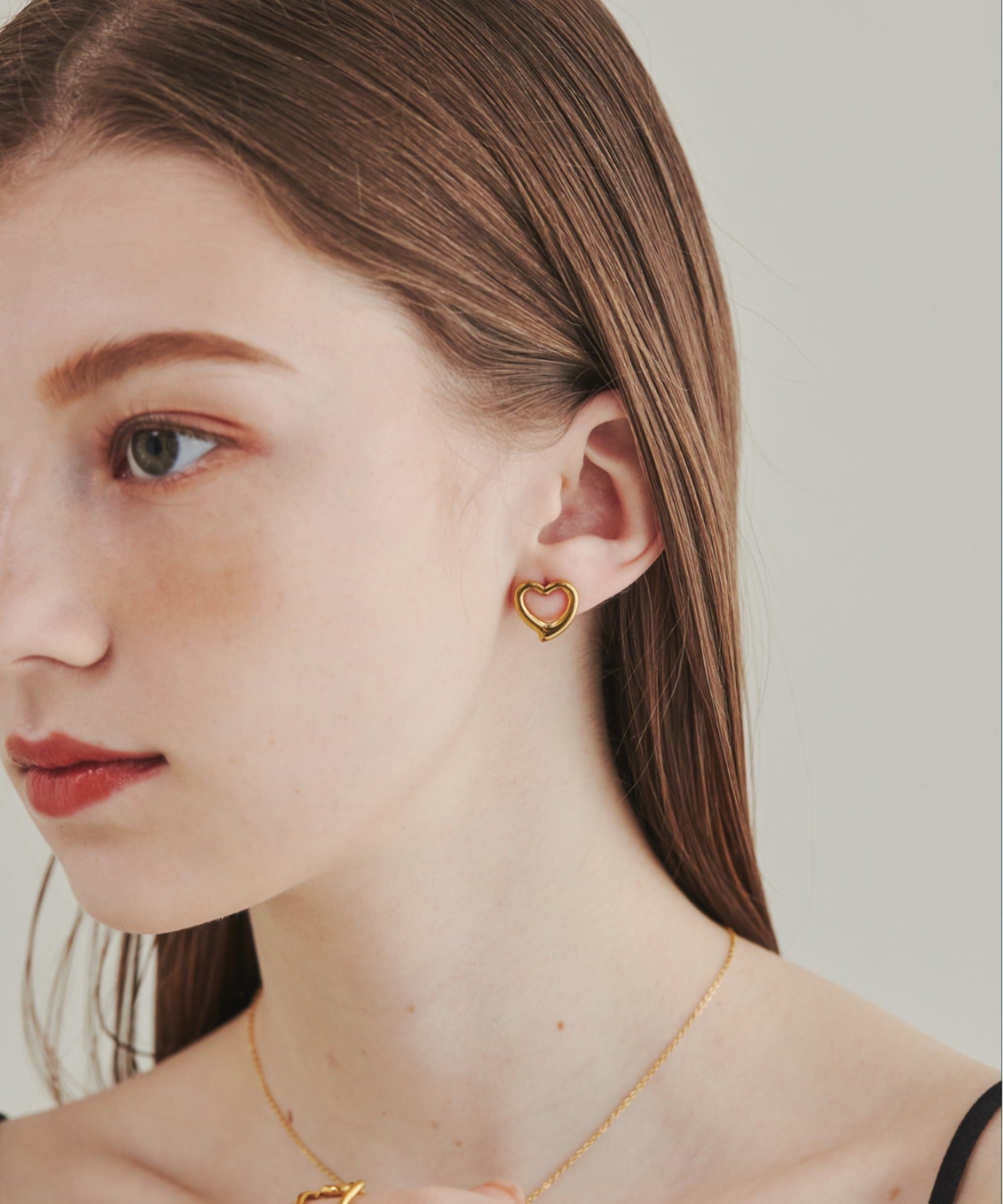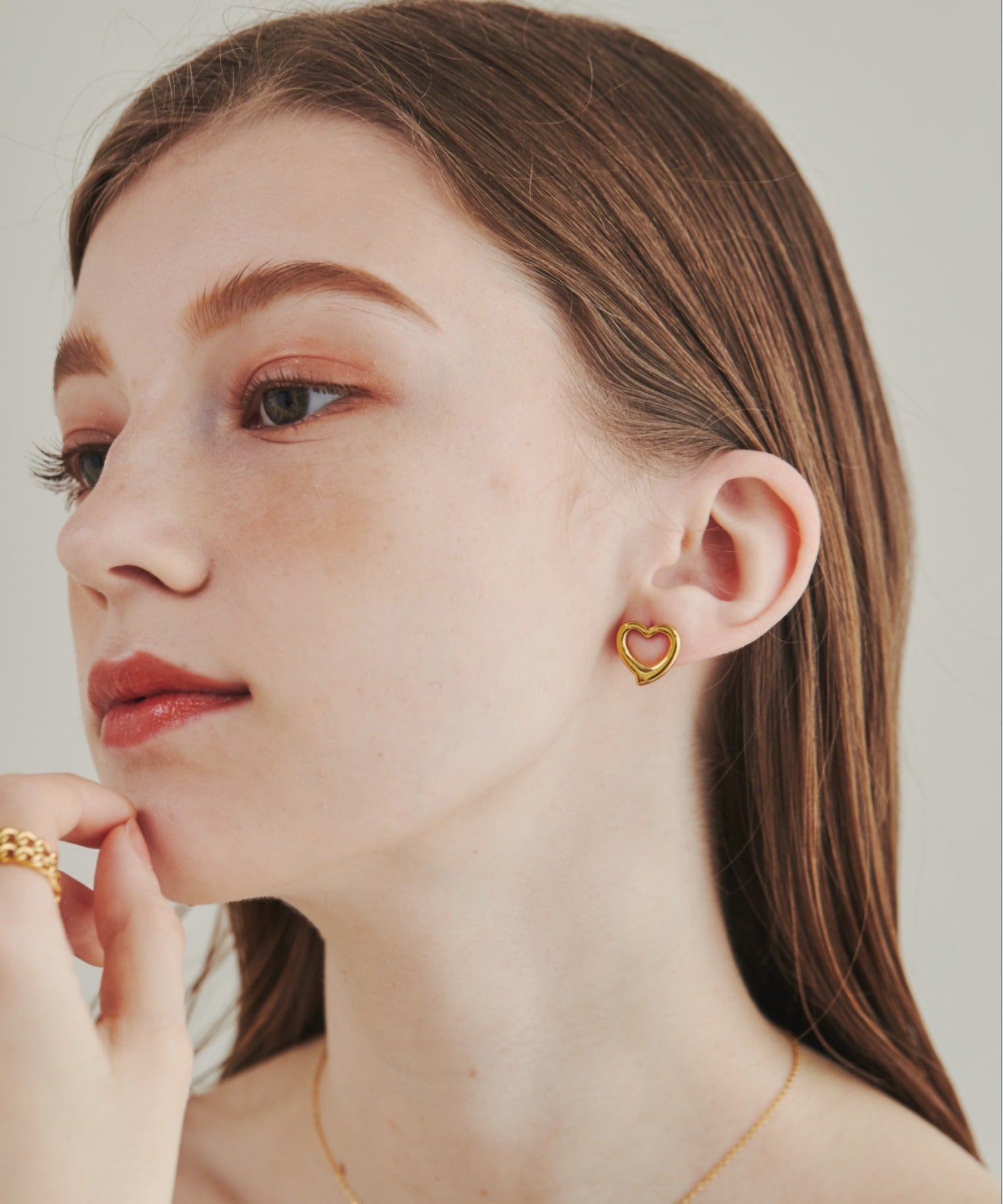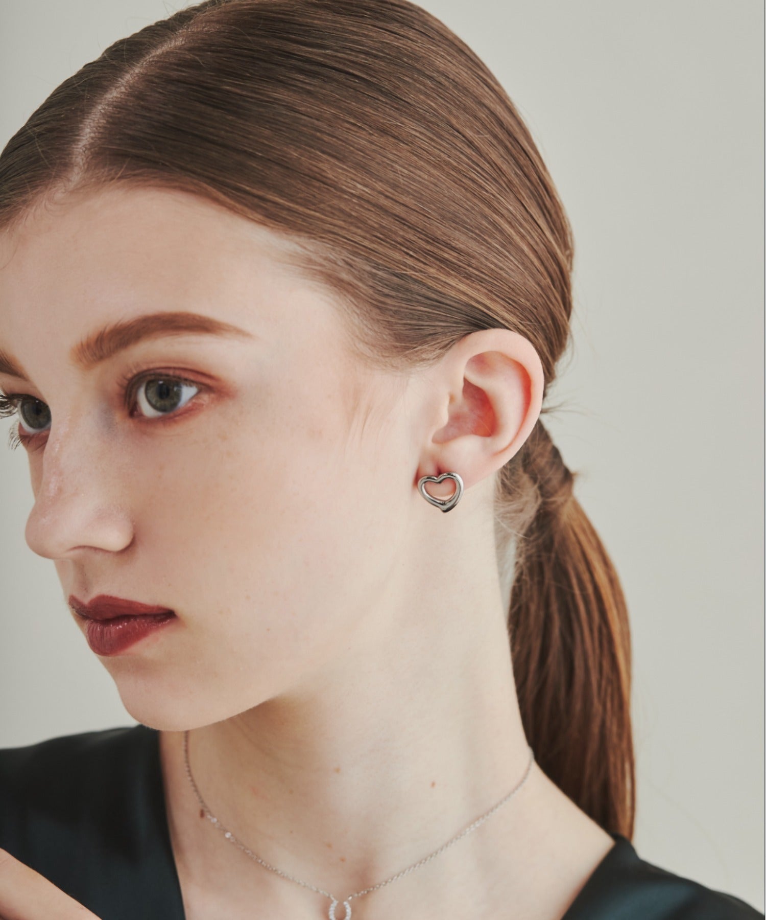 シンプルながらも付けた時のバランスに最大限こだわったハートピアス。