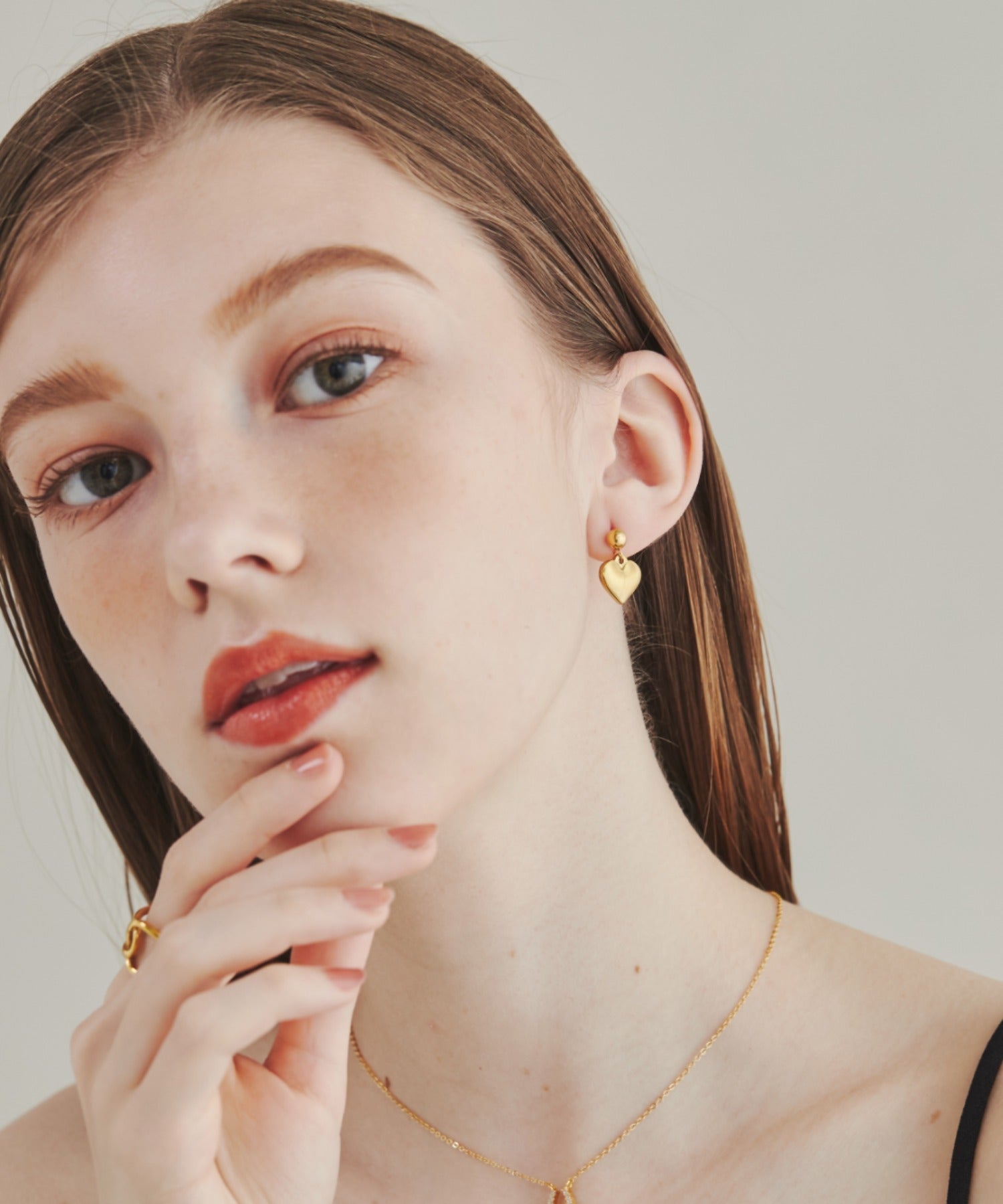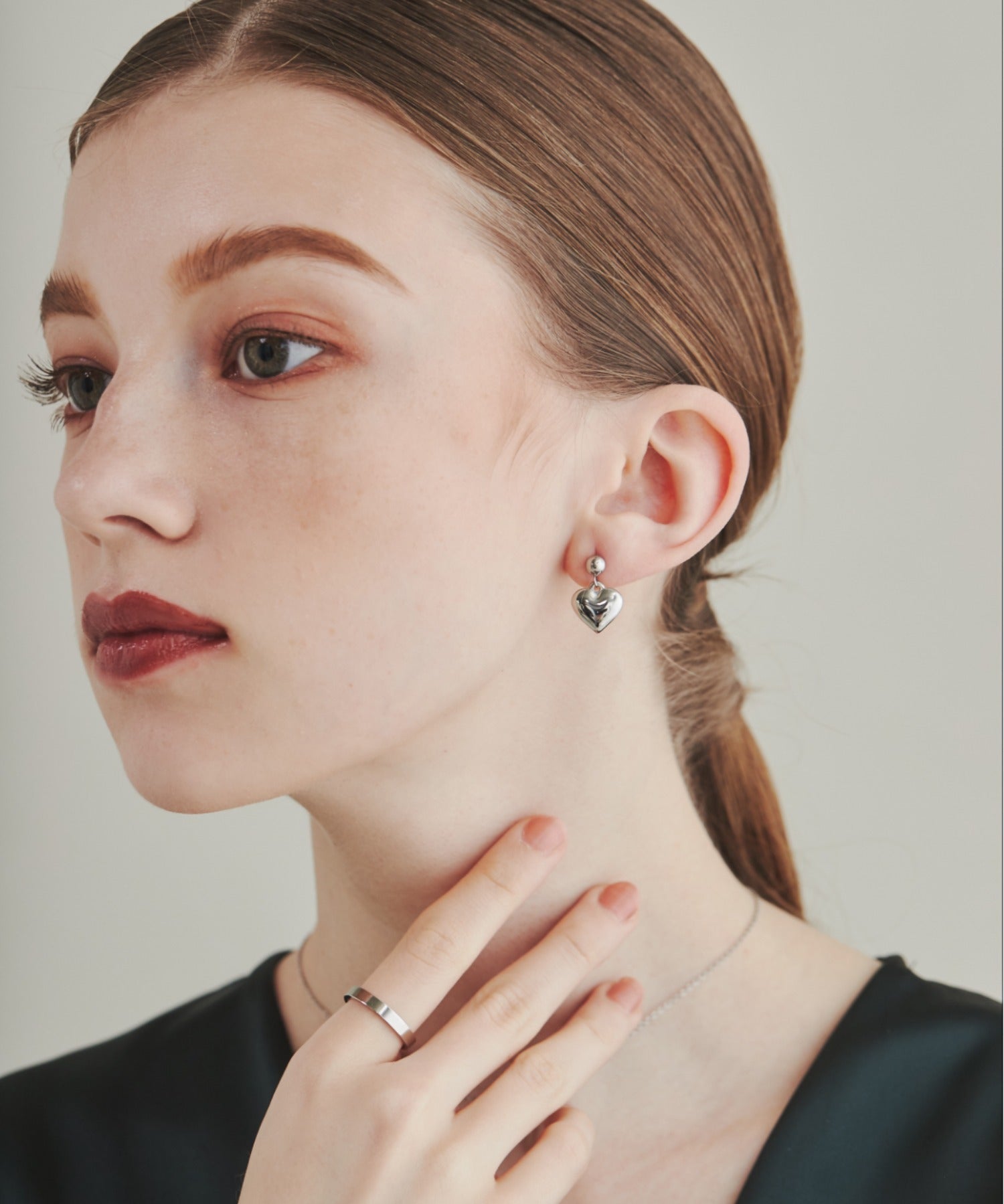 シンプルながらも付けた時のバランスに最大限こだわったハートピアス。
