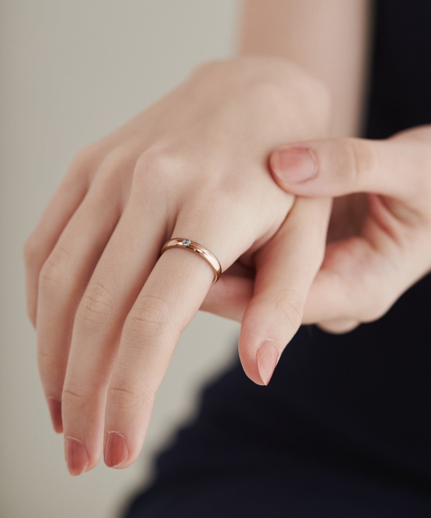 シンプルなデザインに美しく光り輝くビジューをあしらったリング。