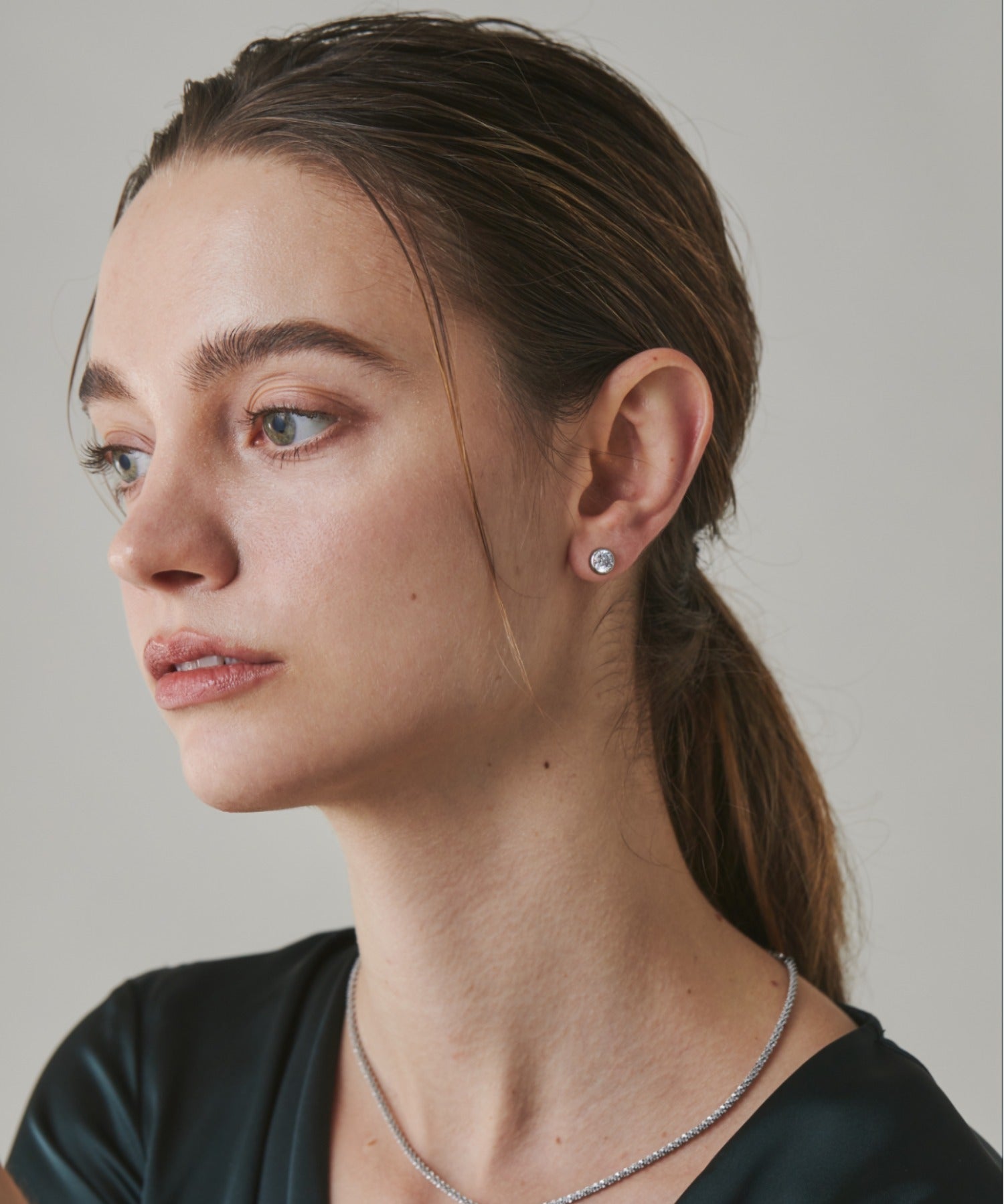 シンプルながらも付けた時のバランスに最大限こだわったジルコニアミニピアス。