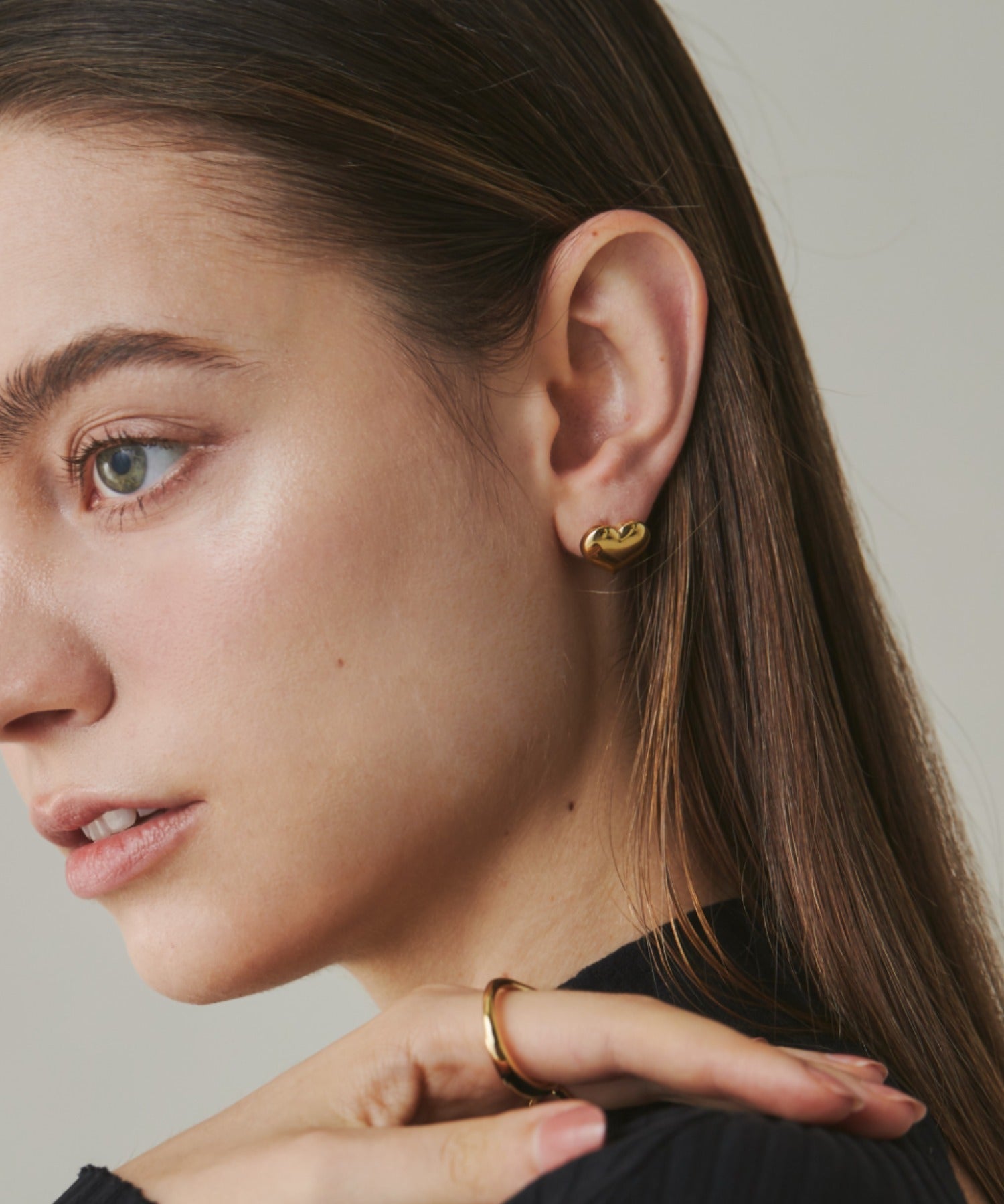 シンプルながらも付けた時のバランスに最大限こだわったミニハートピアス。