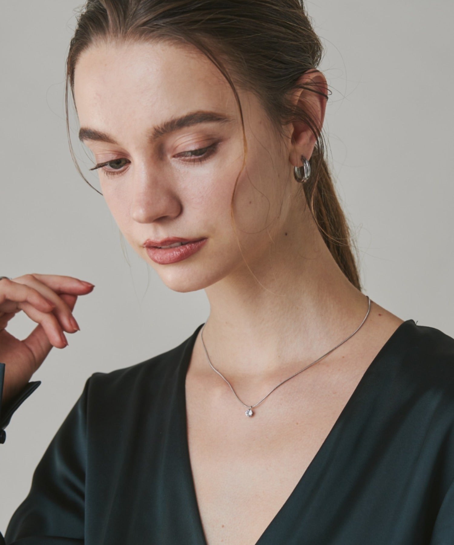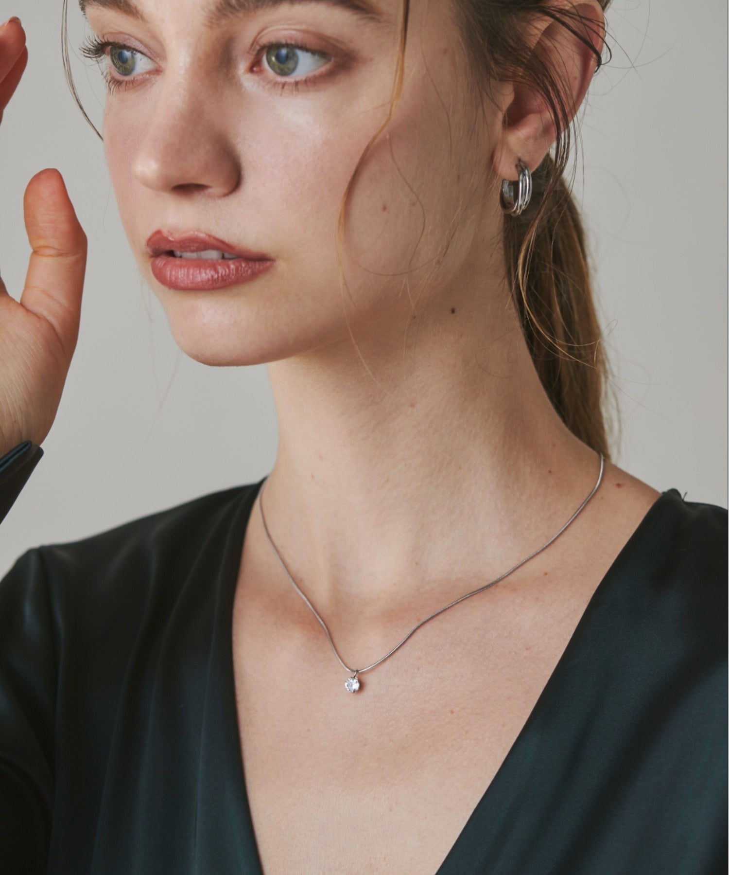 シンプルながらも付けた時のバランスに最大限こだわったシンプルビジューネックレス。