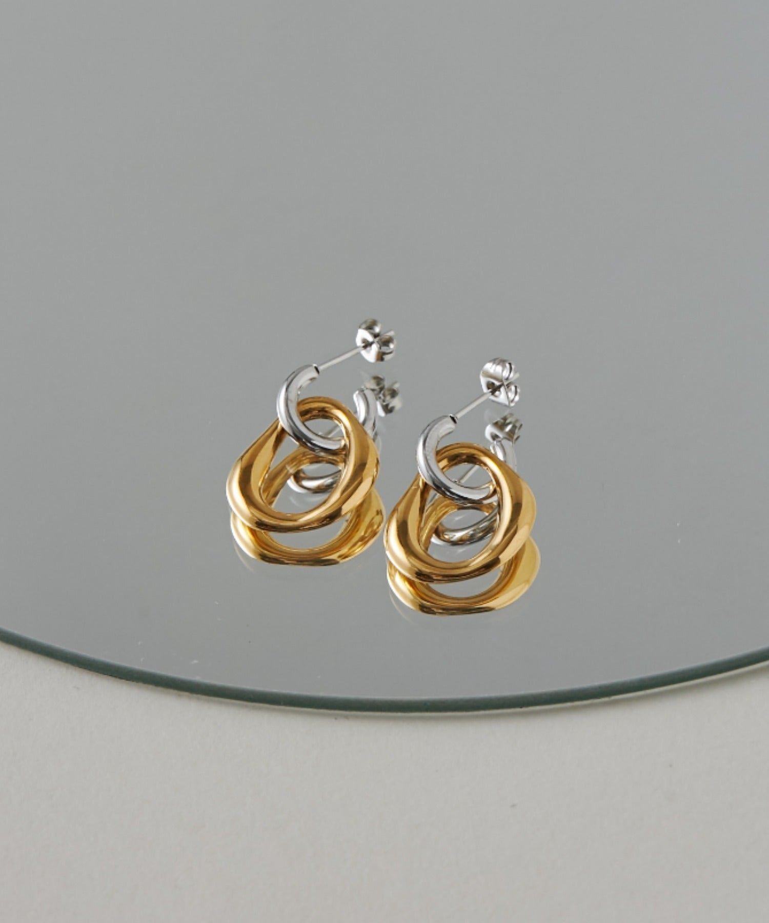 【 金属アレルギー対応 】 2way バイカラーピアス サージカルステンレス (両耳用)