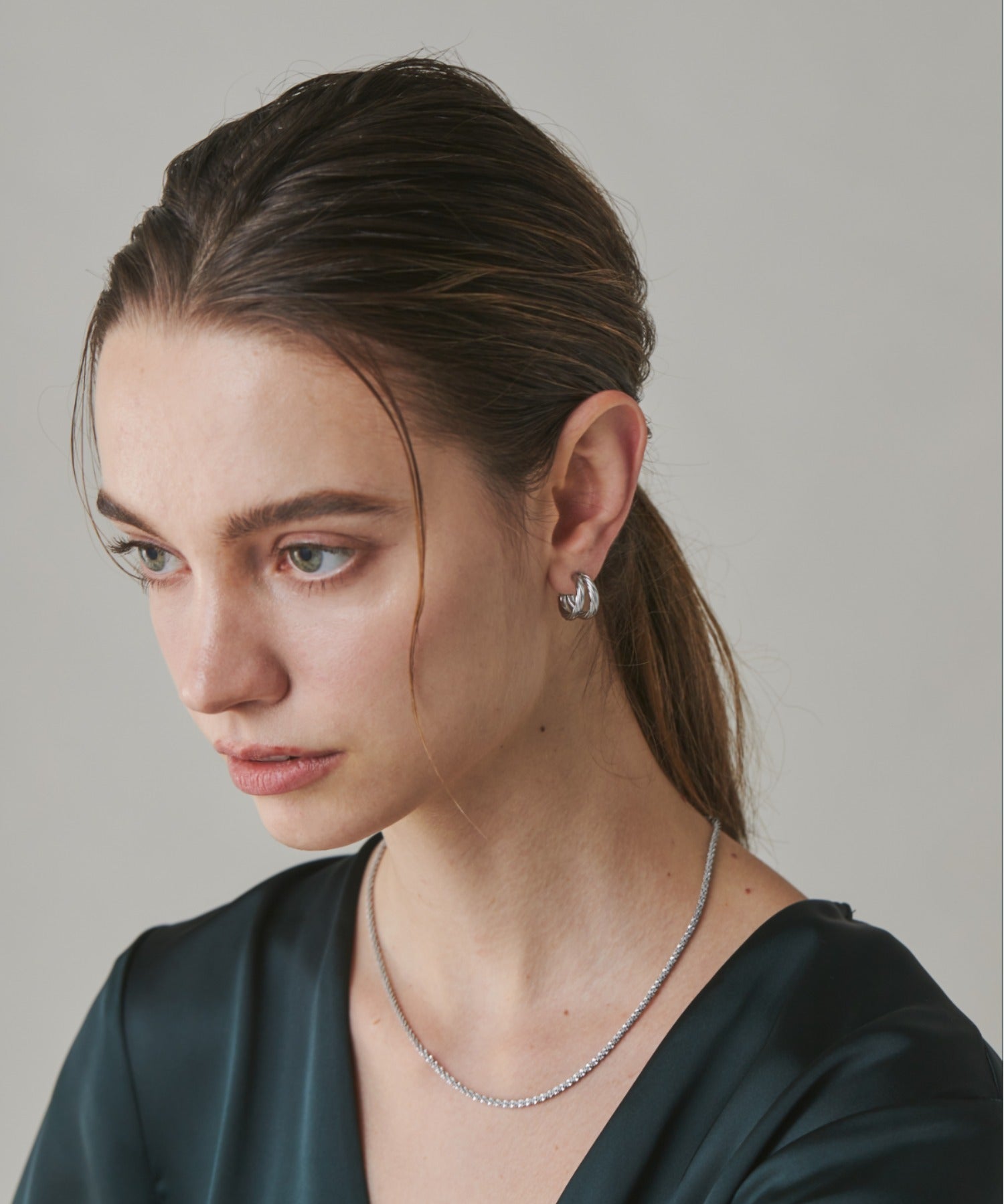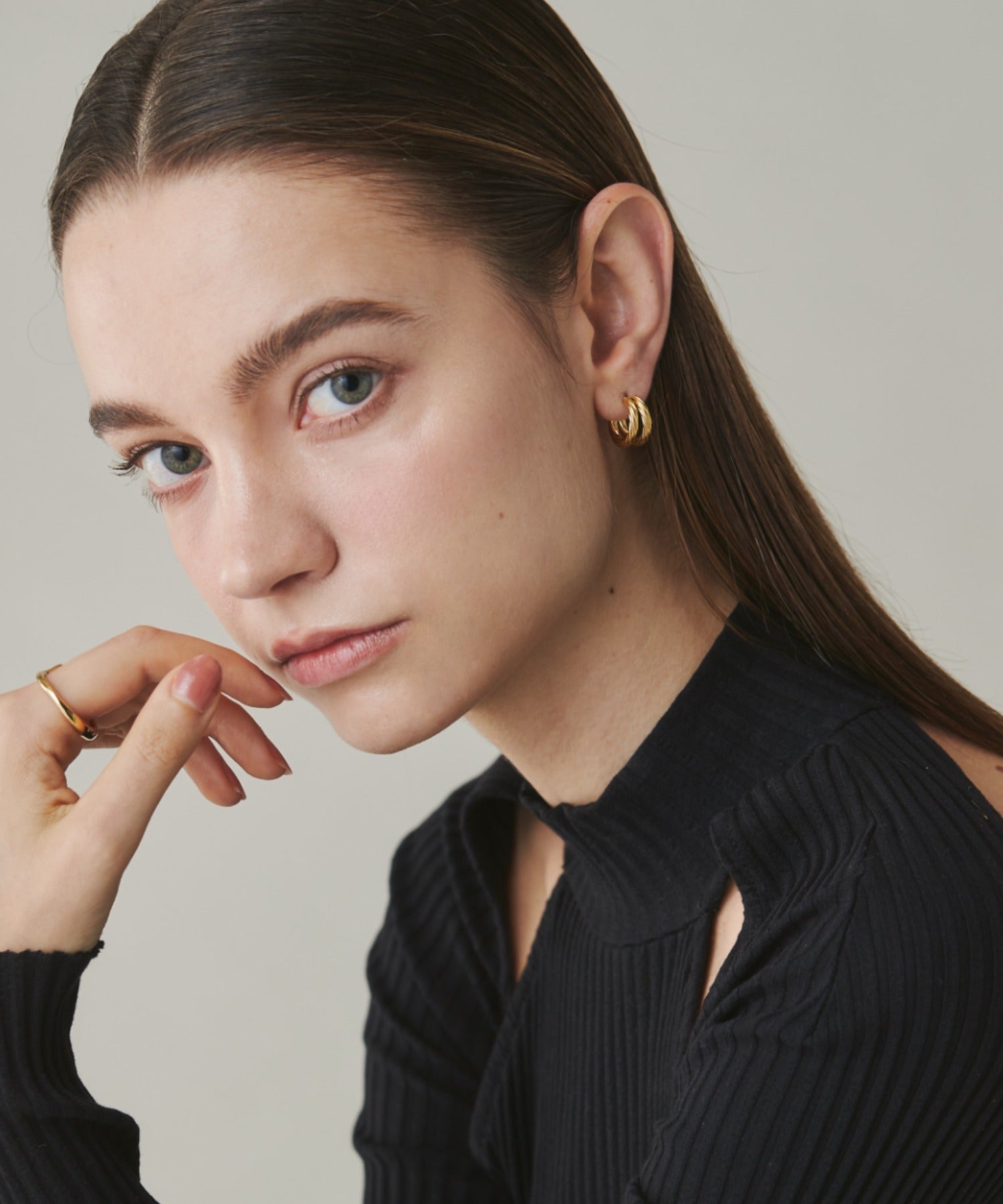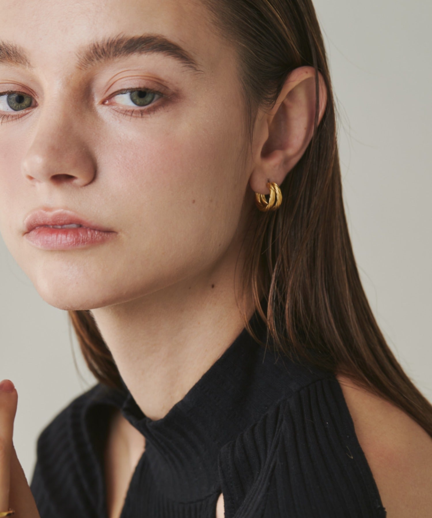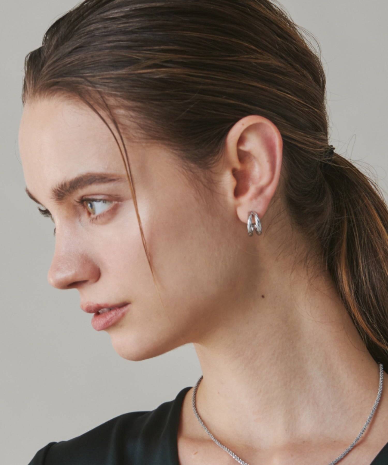 シンプルながらも付けた時のバランスに最大限こだわったダブルラインツイストフープピアス。