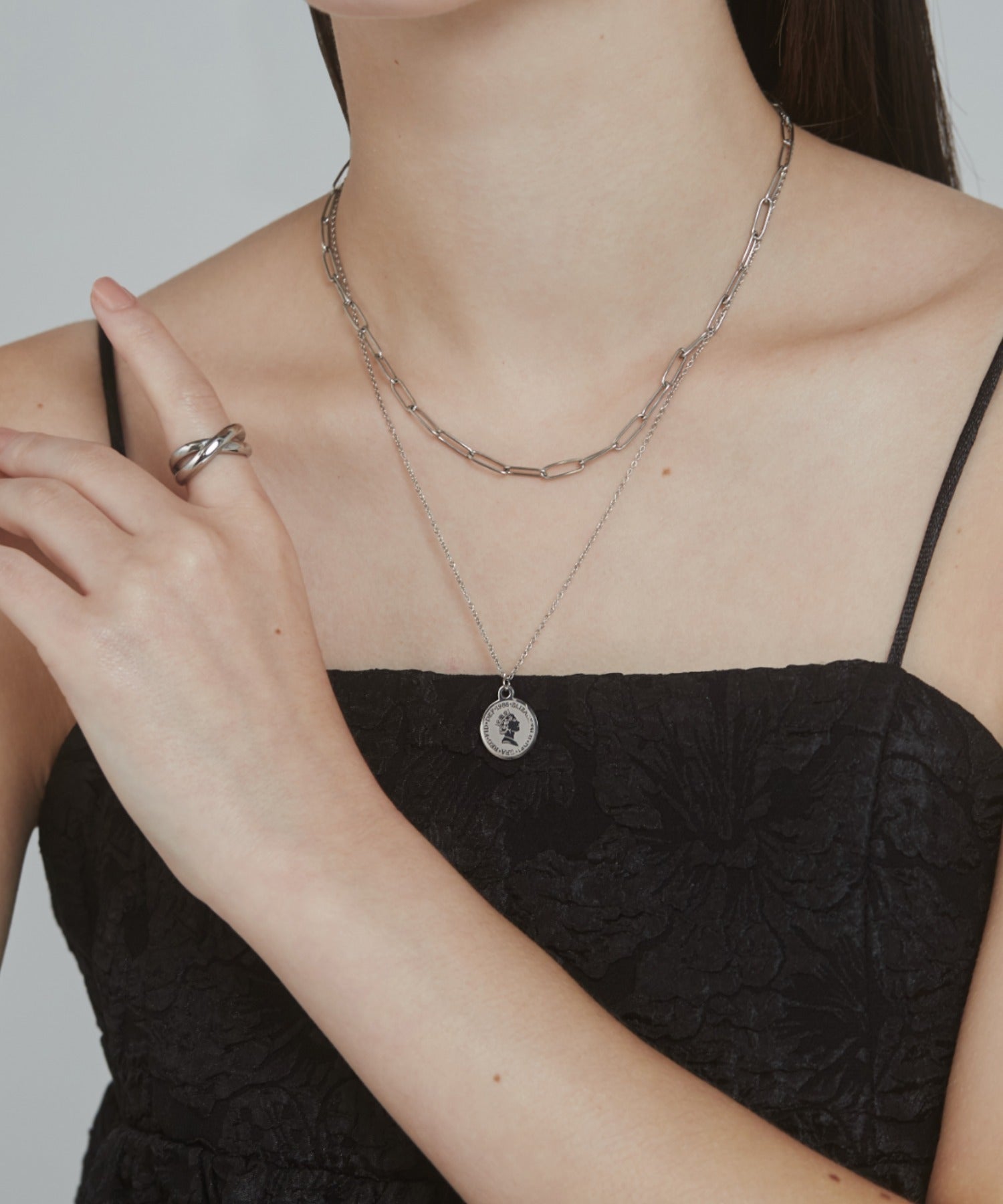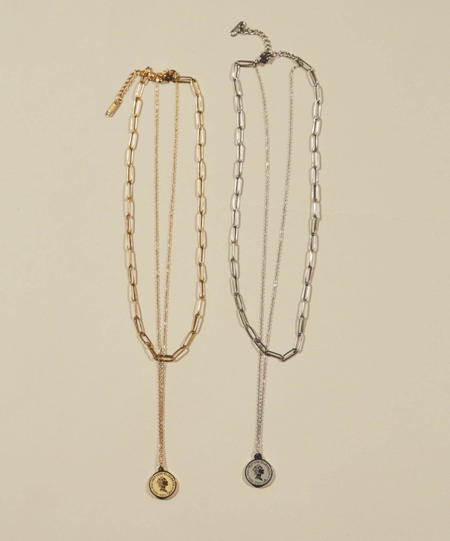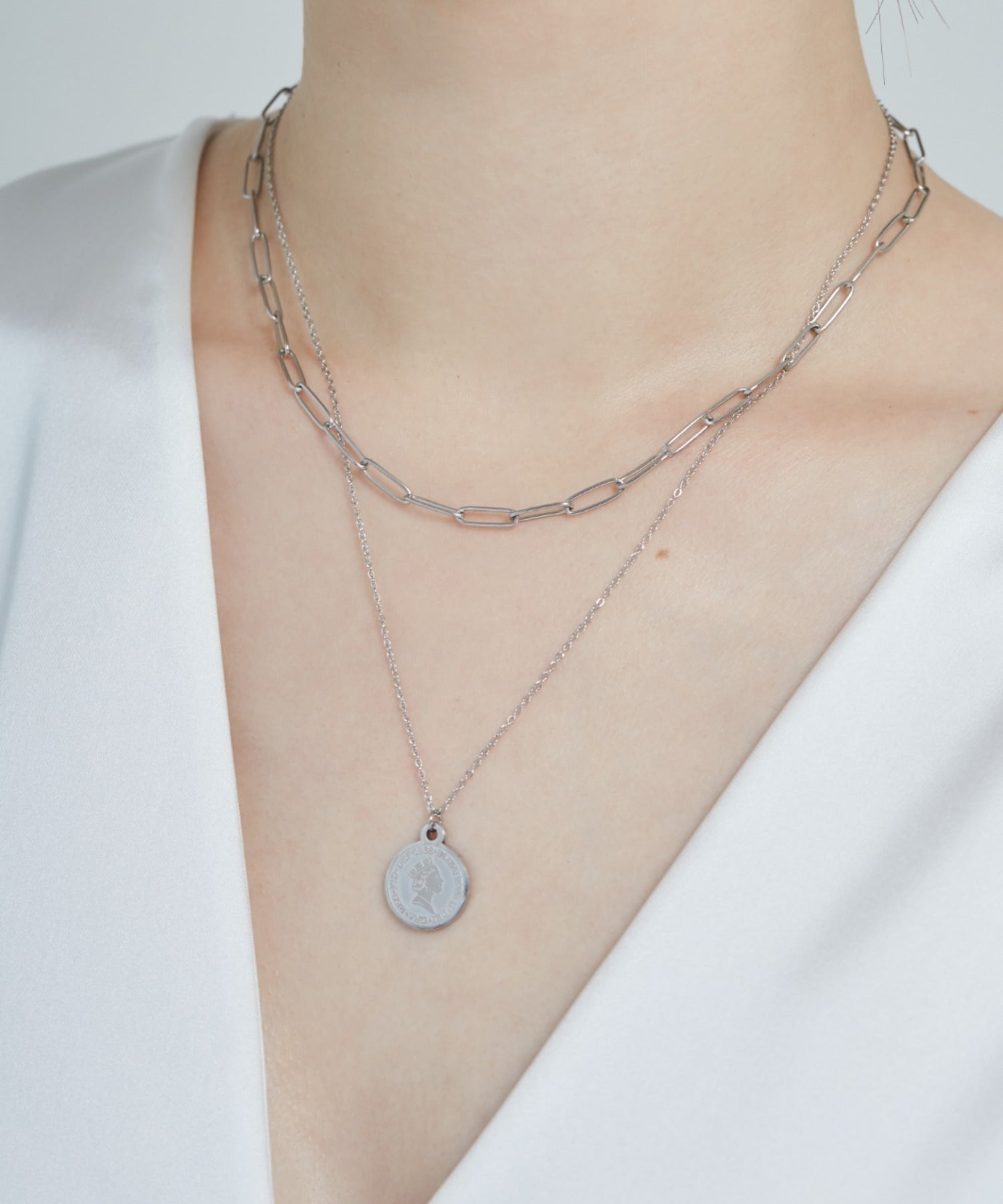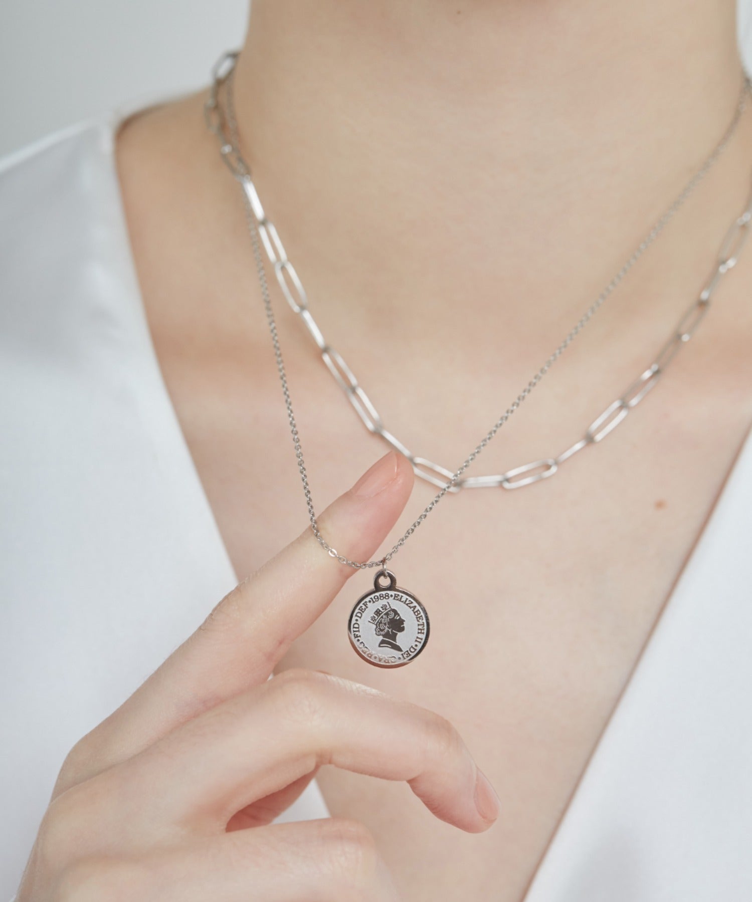 【 金属アレルギー対応 】 2連 エリザベス コインネックレス サージカルステンレス