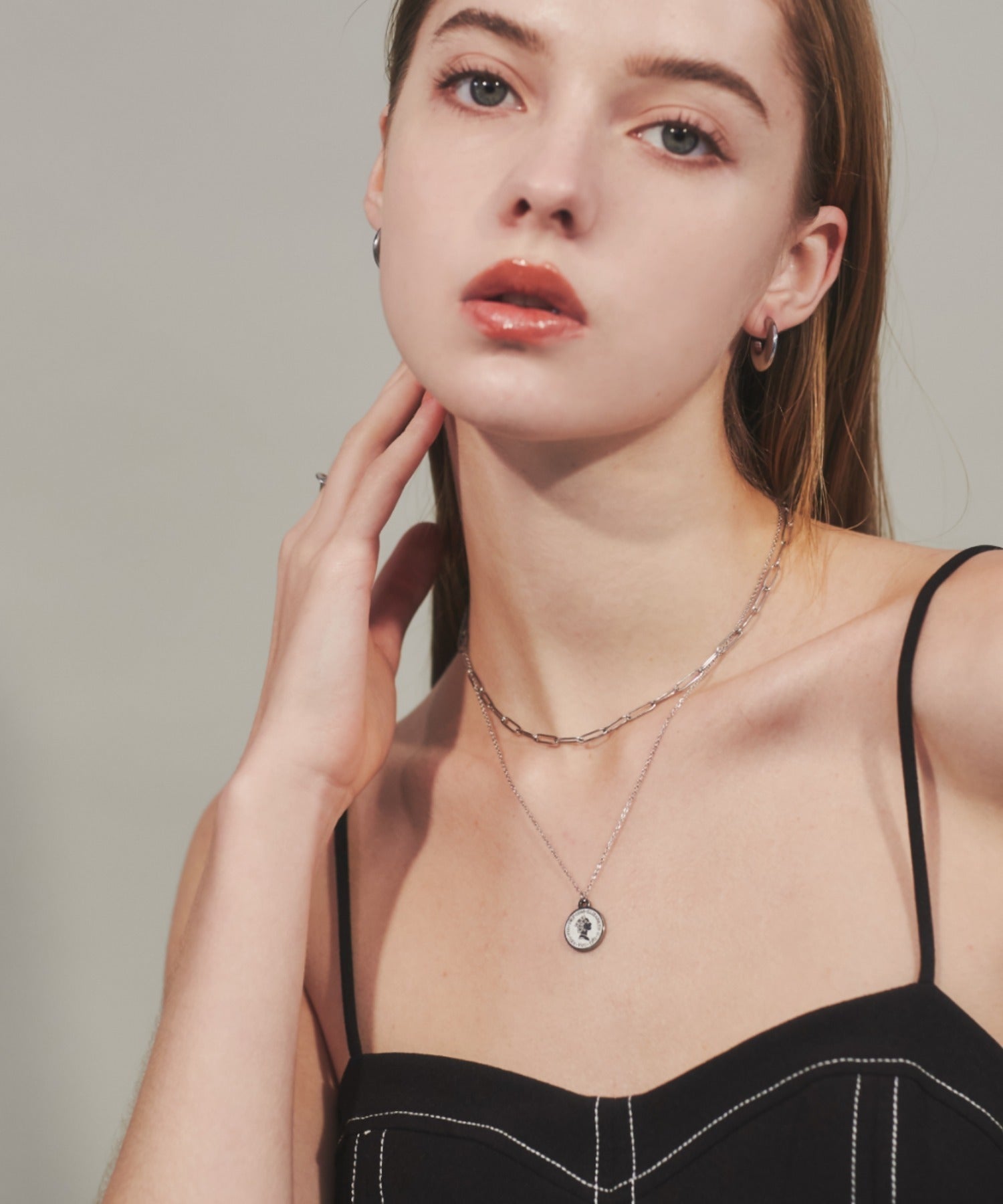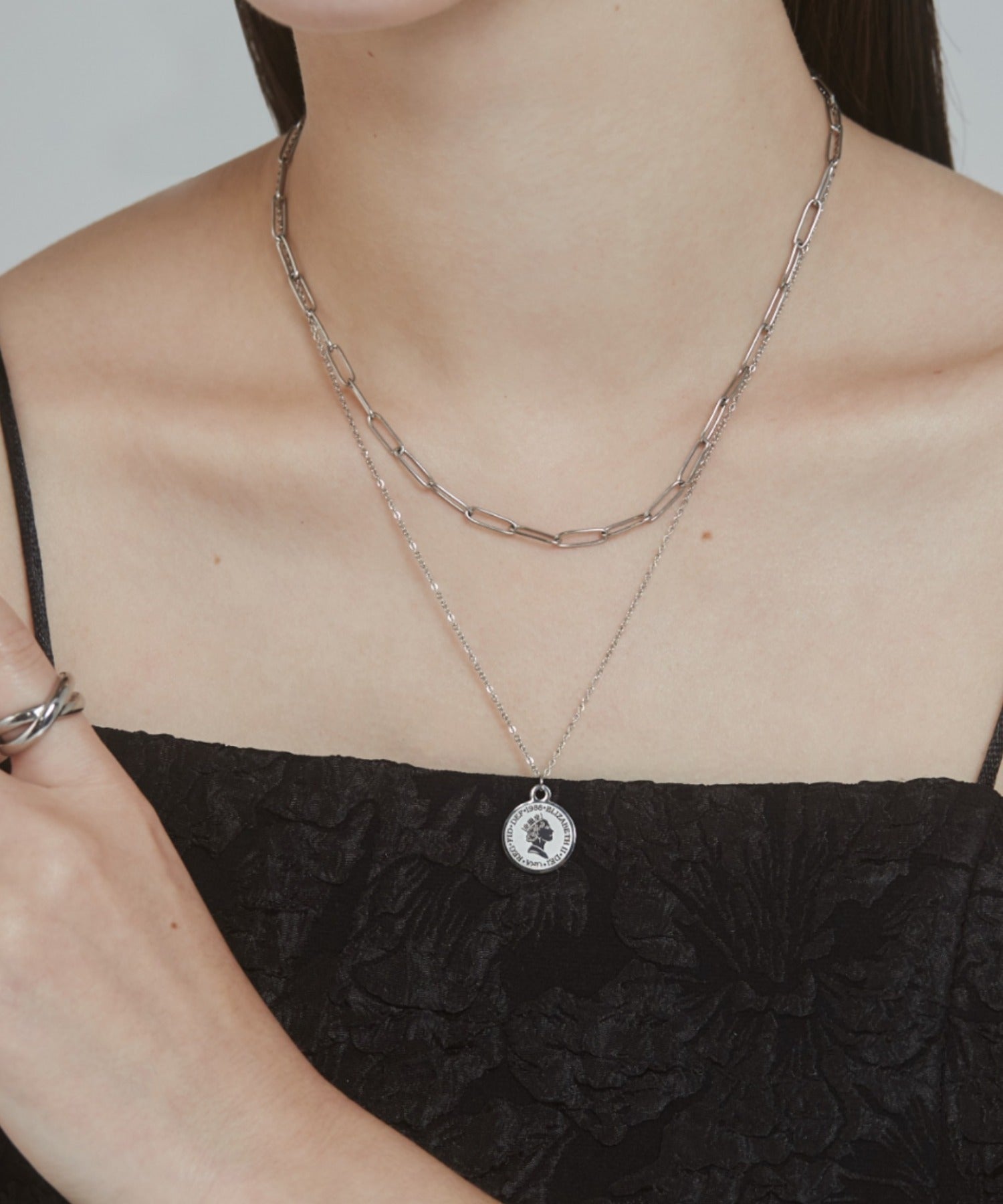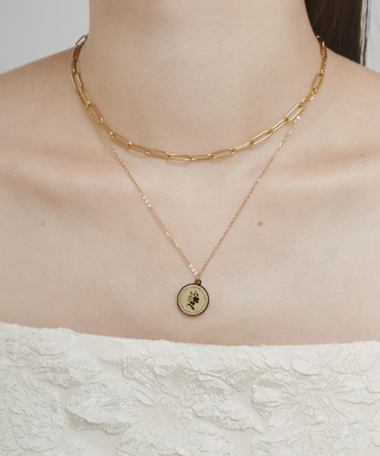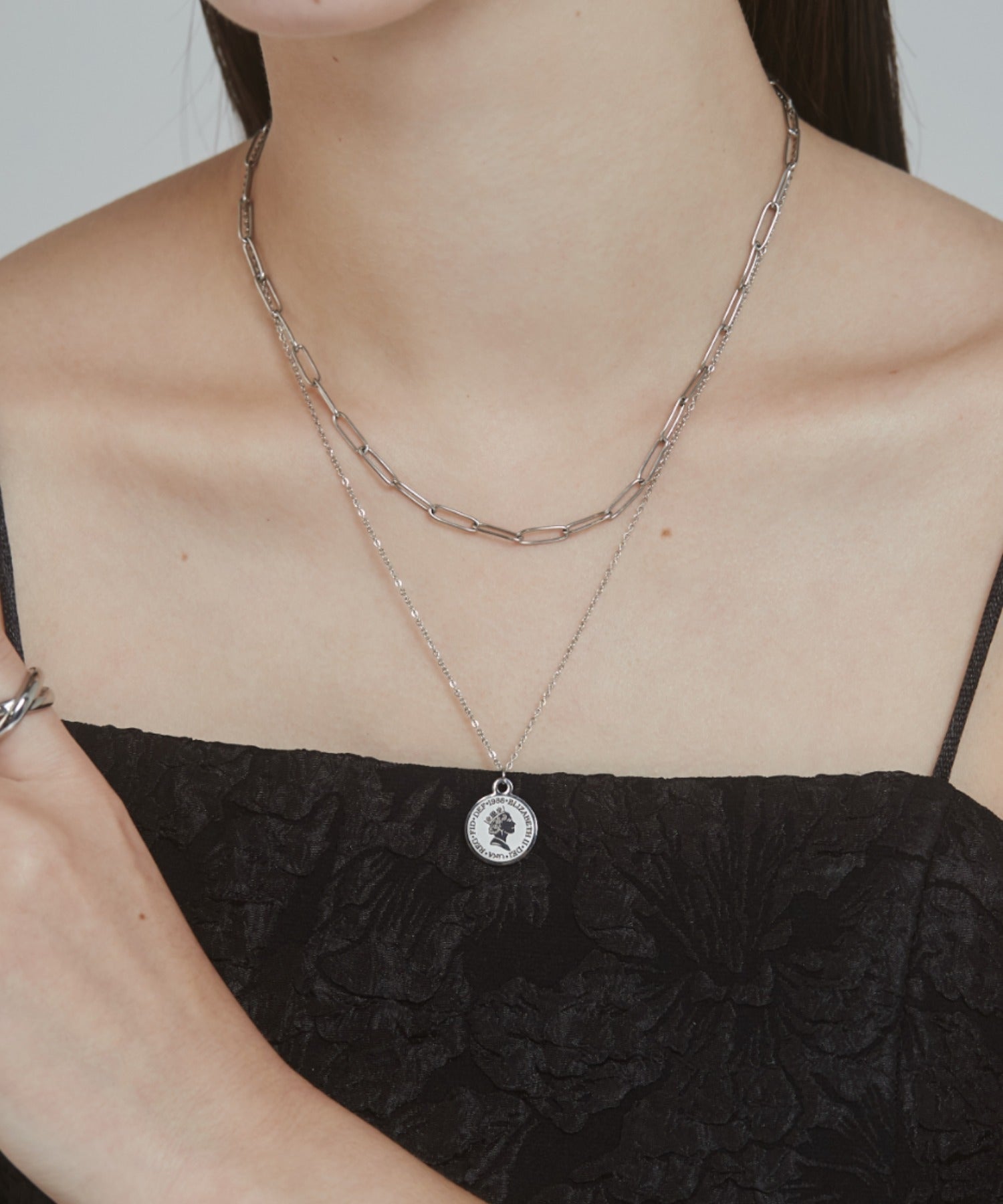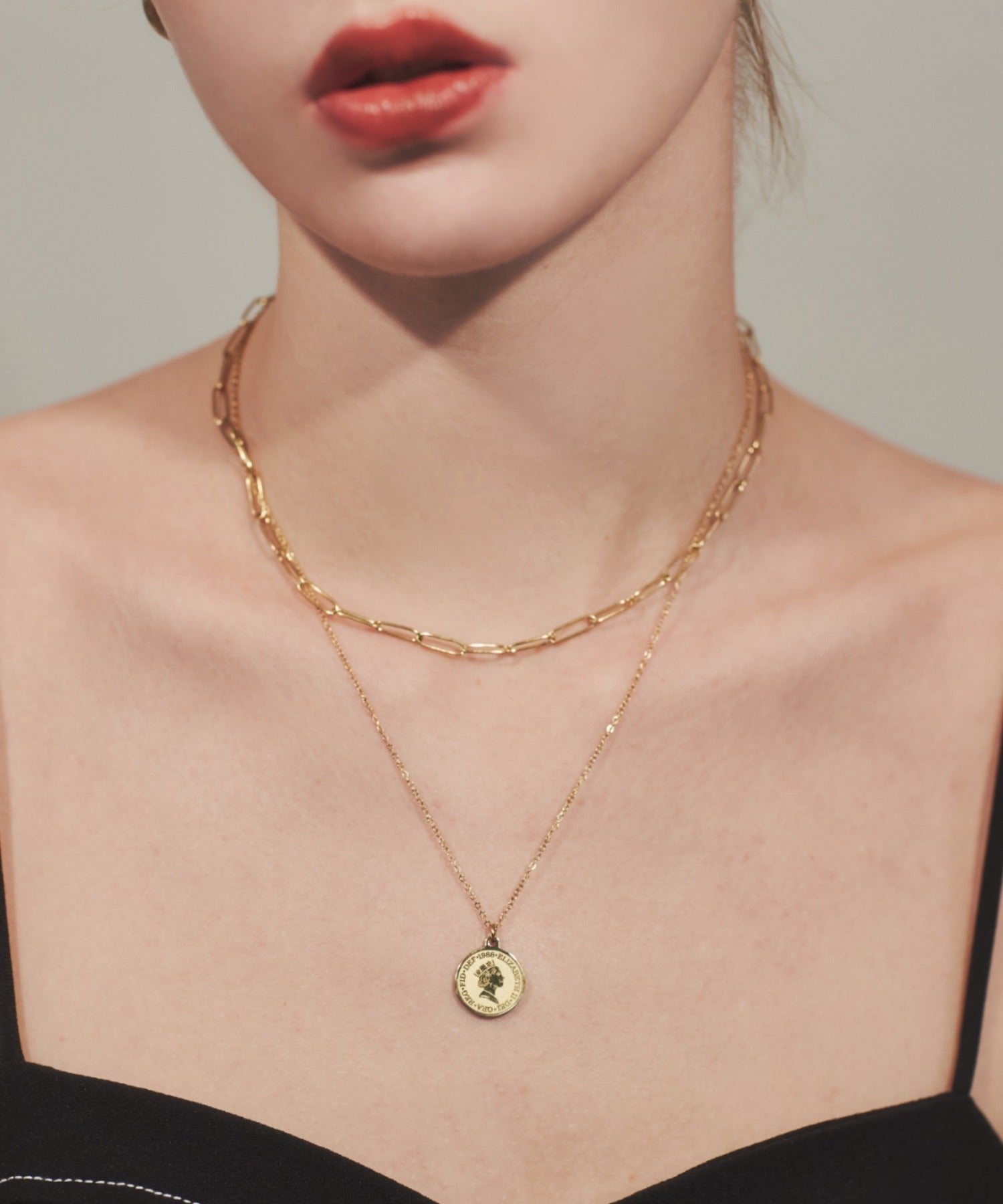 【 金属アレルギー対応 】 2連 エリザベス コインネックレス サージカルステンレス