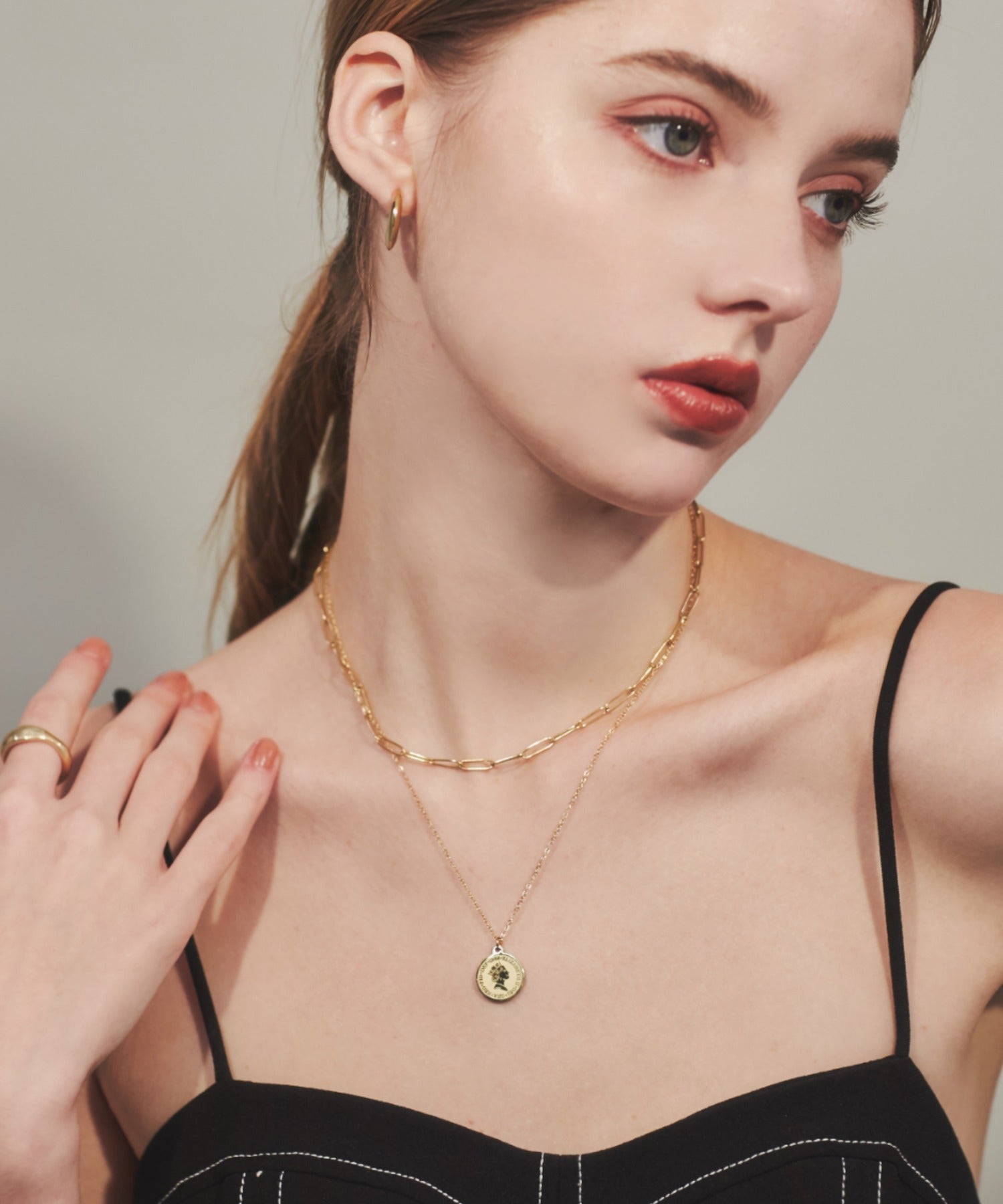 大人気のエリザベスコインネックレスを用いた2連ネックレス。