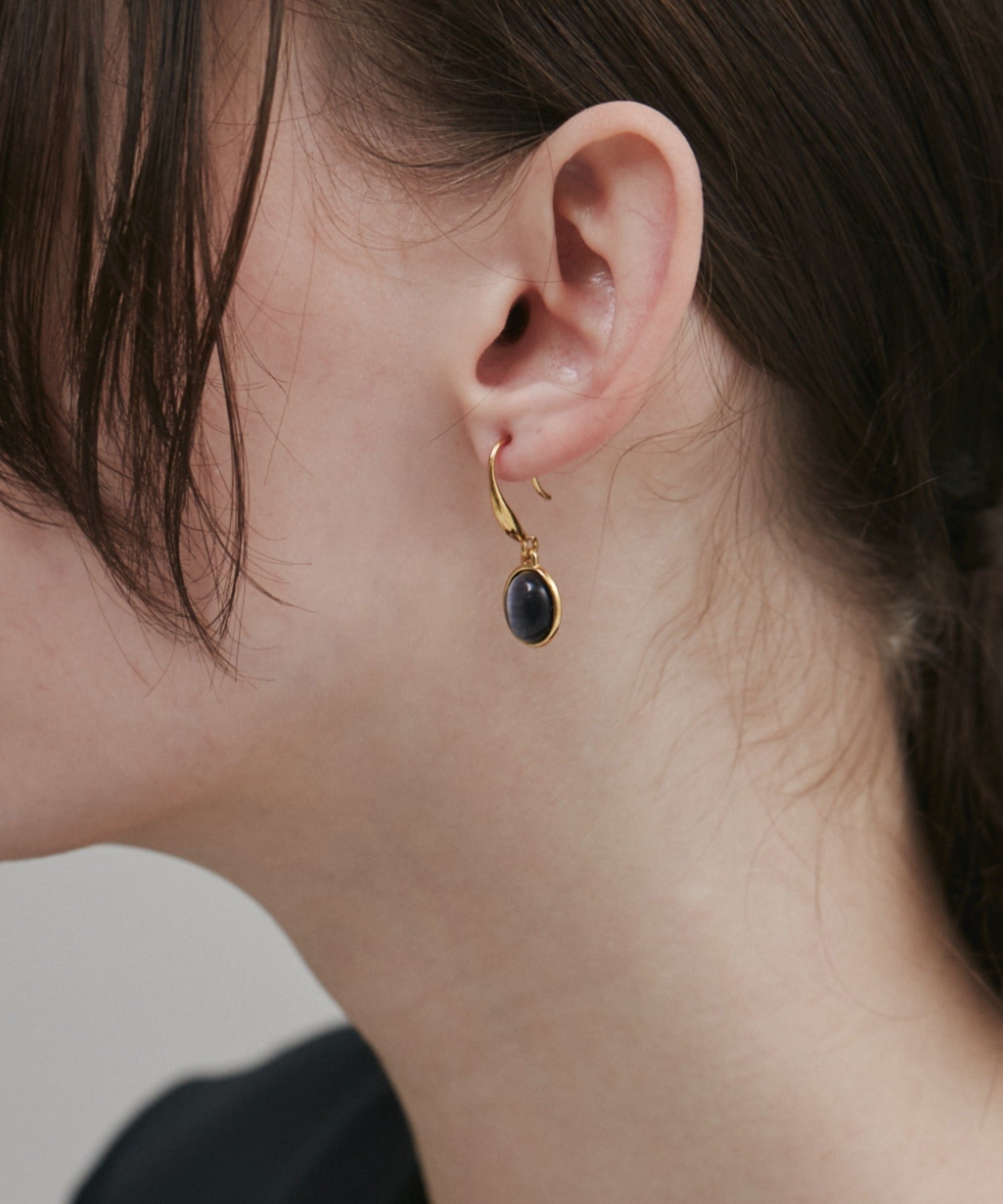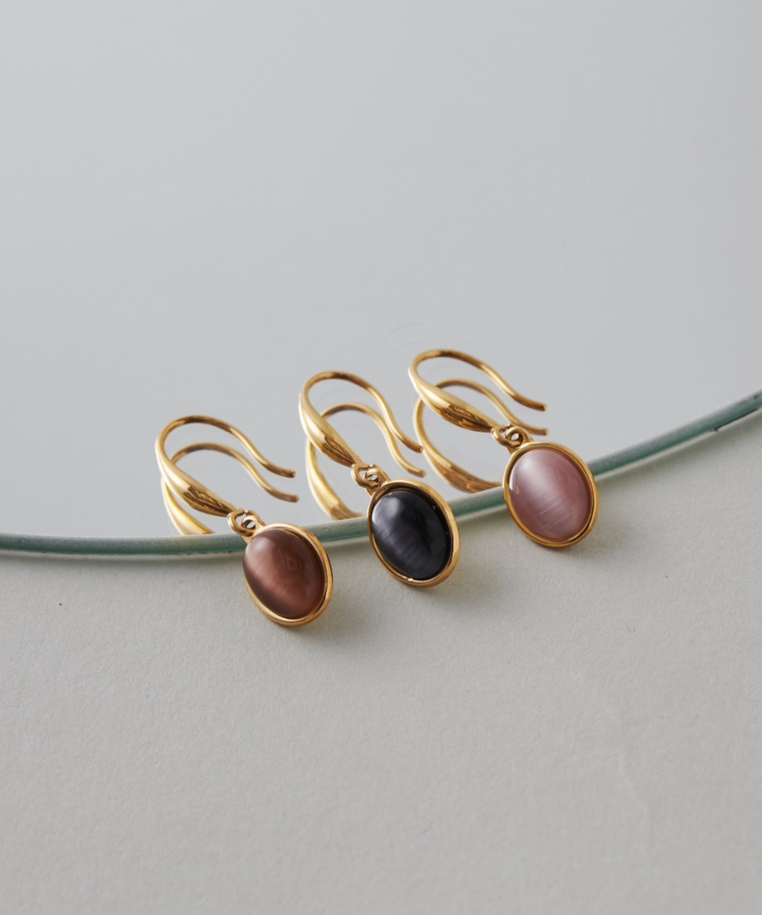 【 金属アレルギー対応 】 オーバルストーン フックピアス サージカルステンレス (両耳用)