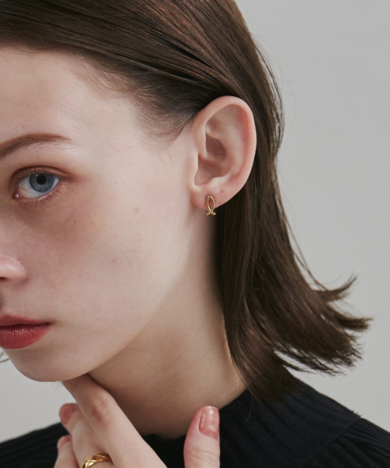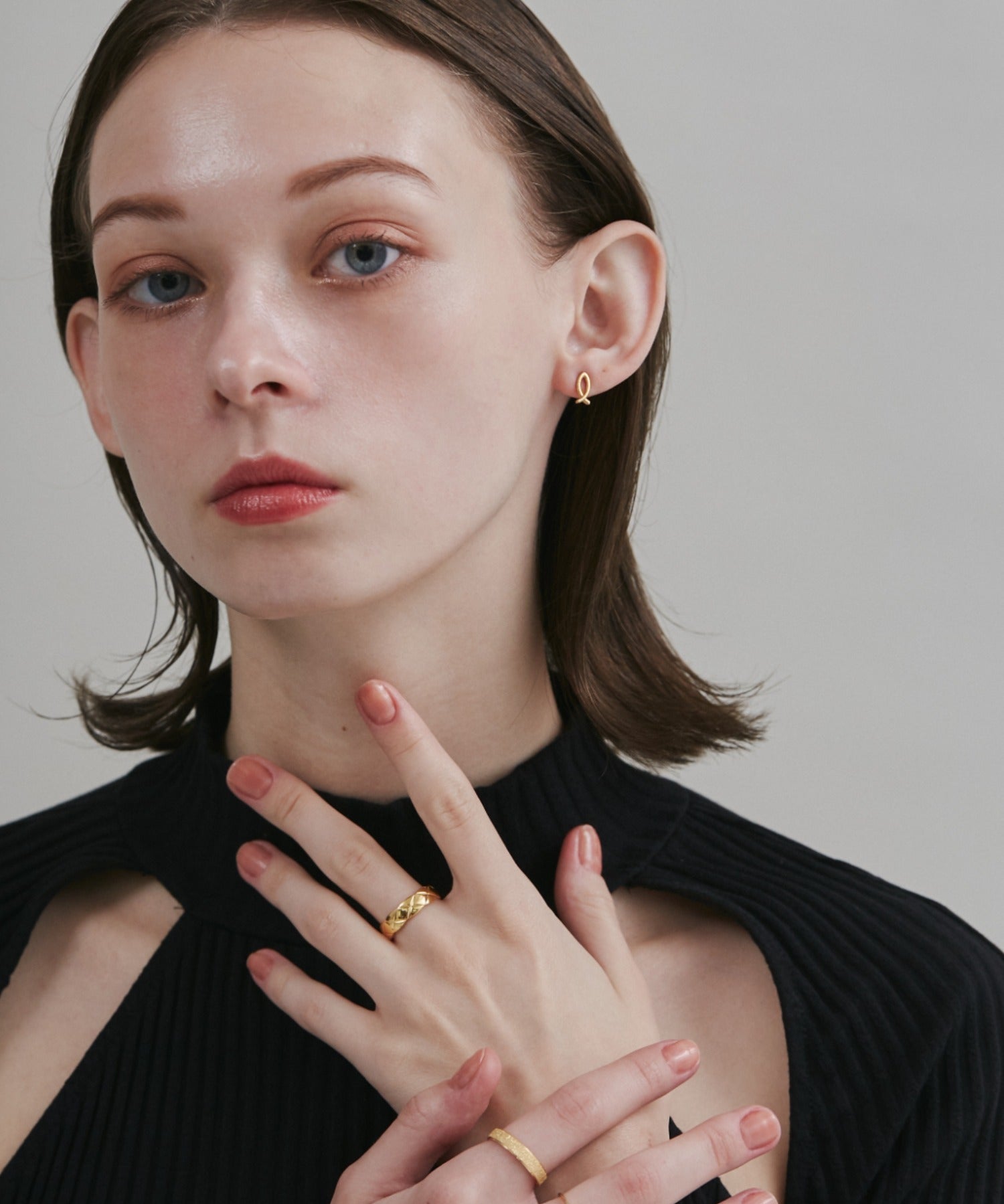 ミニマルなサイズ感で、一筆書きのようなデザインが可愛らしいピアス。