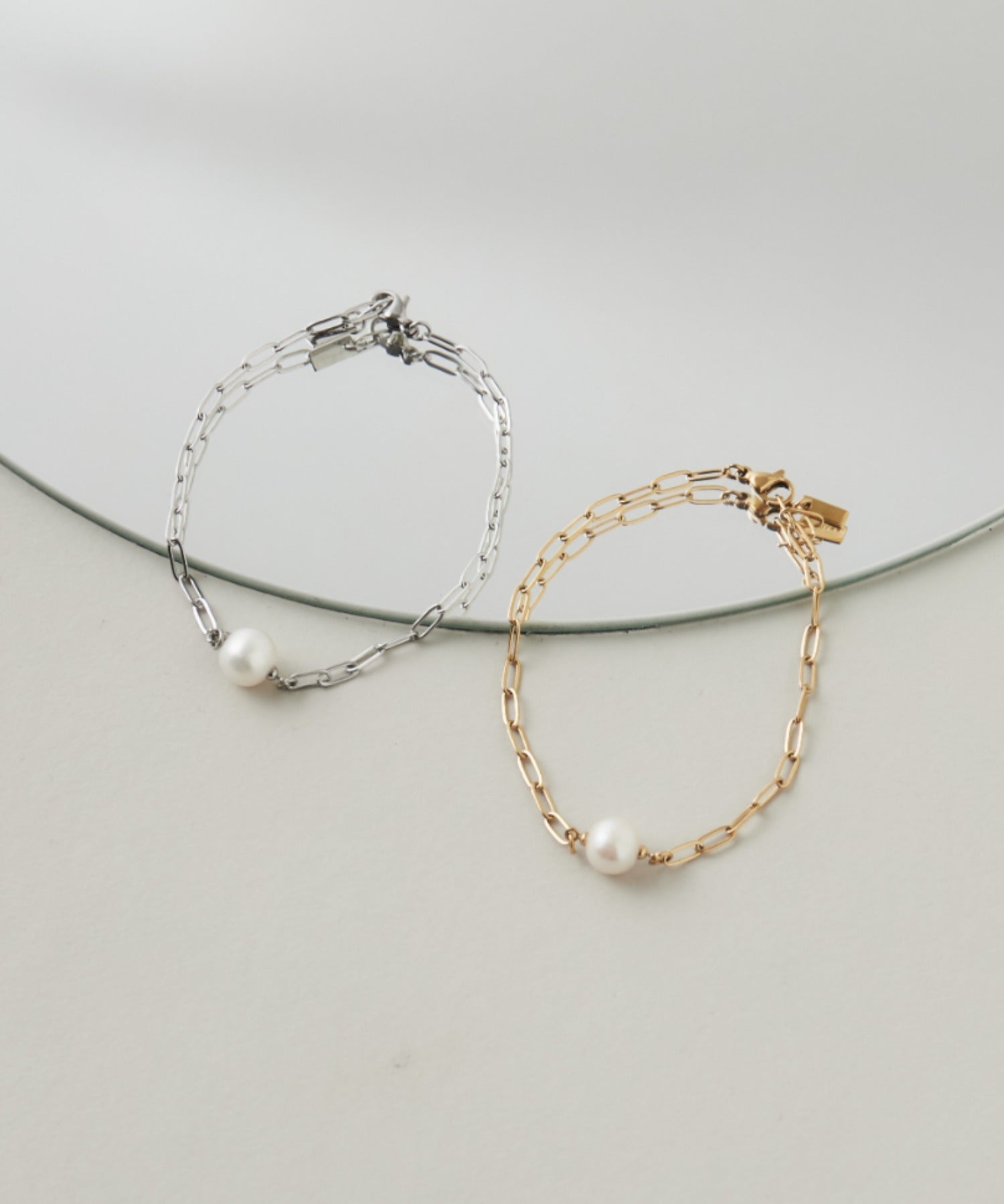 【 金属アレルギー対応 】 シンプルパール ブレスレット サージカルステンレス