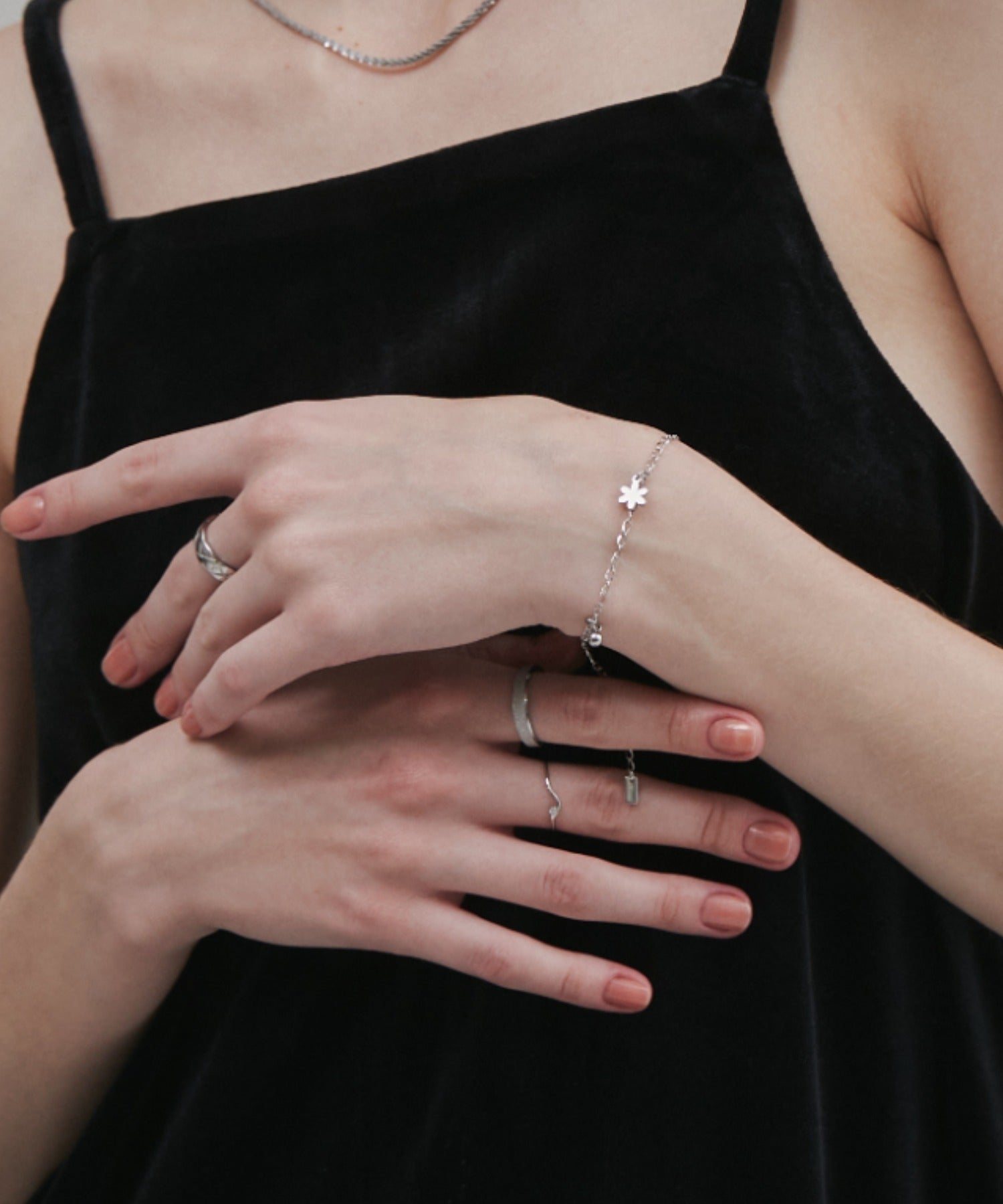 大人可愛らしいフラワーモチーフのブレスレット。