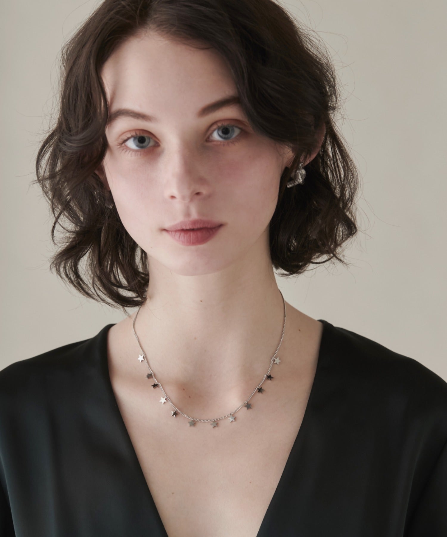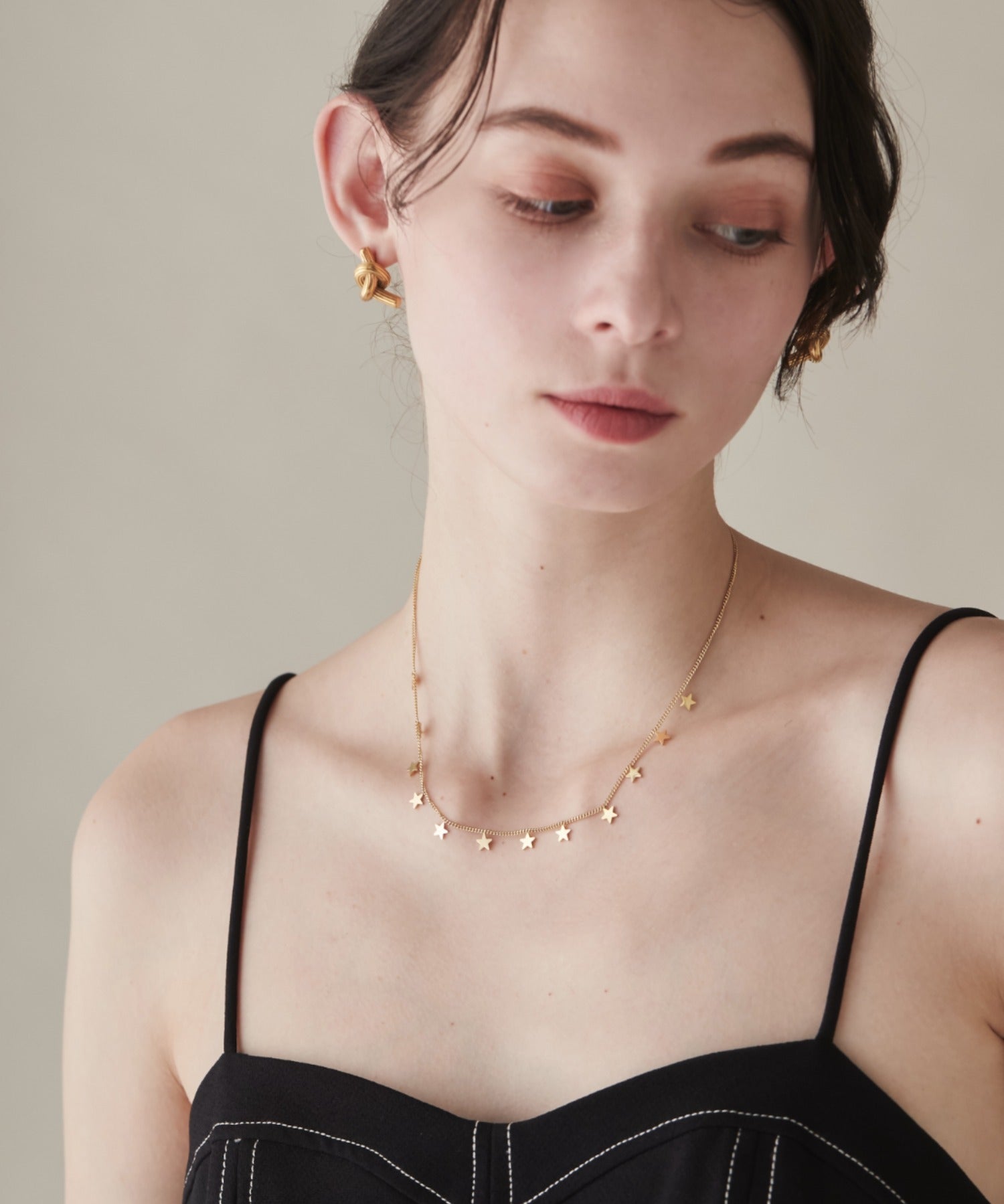 小さな星モチーフが連なっている大人可愛いデザインネックレス。