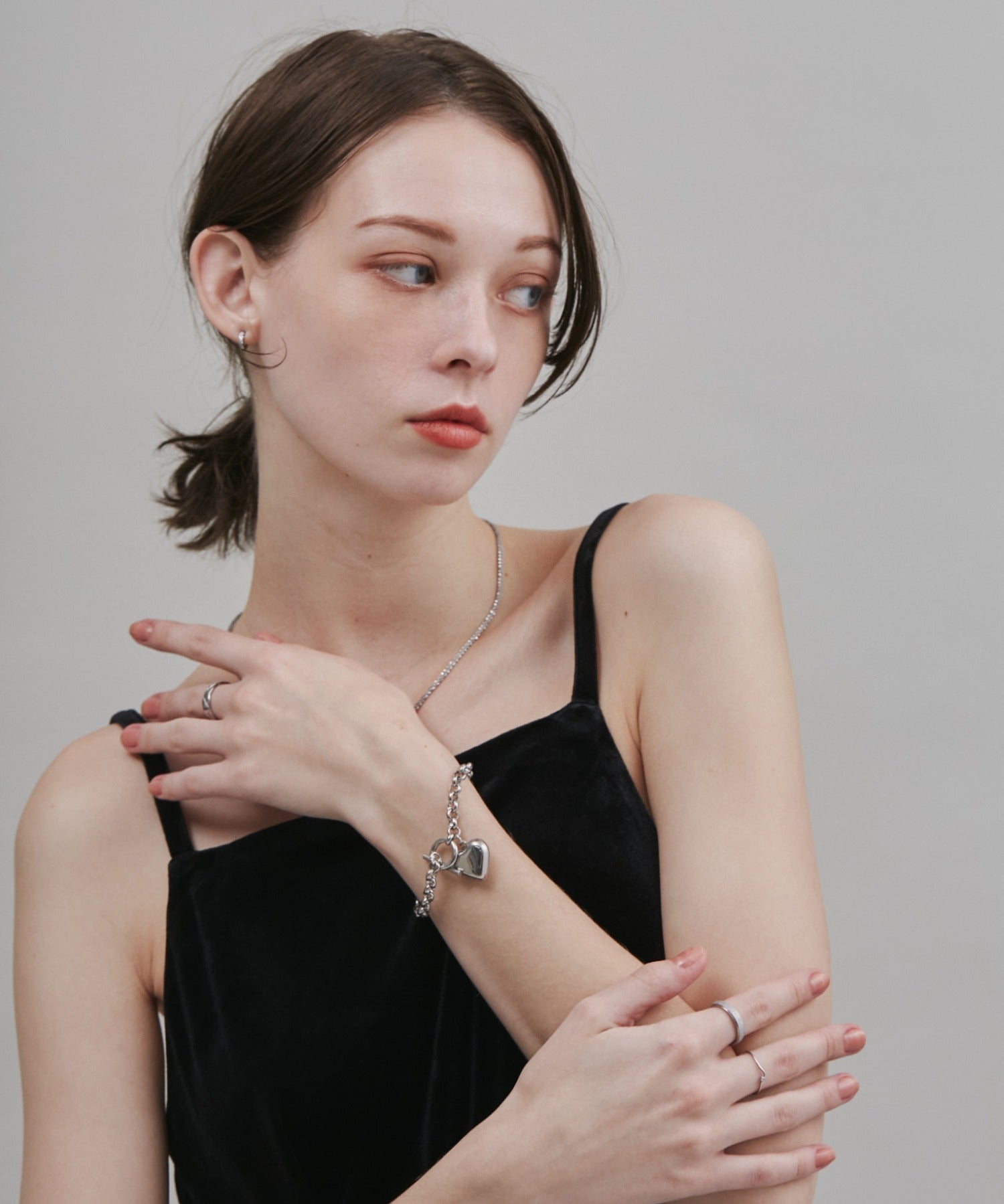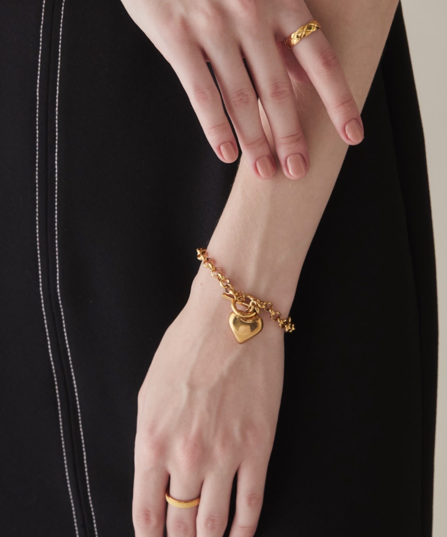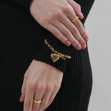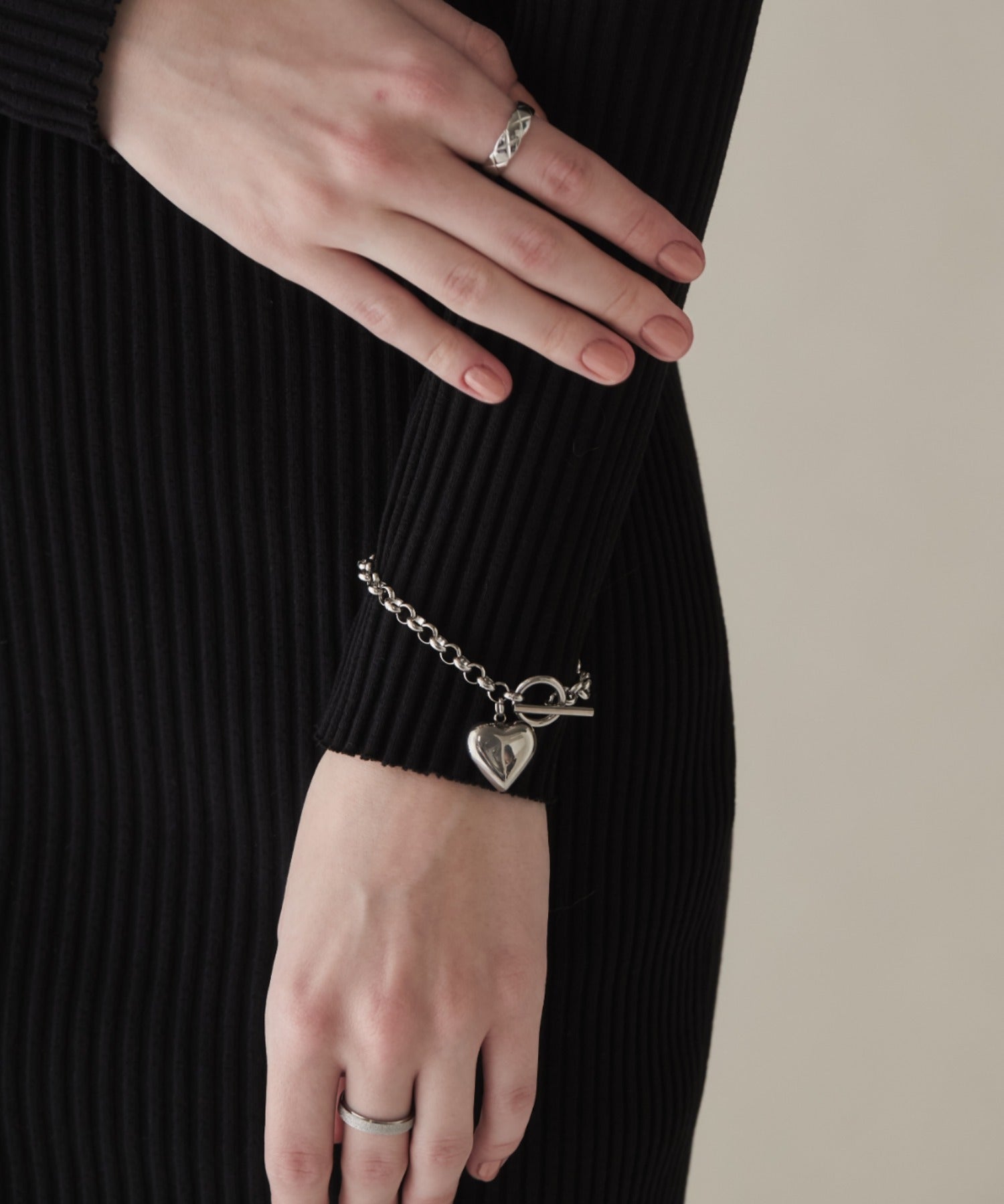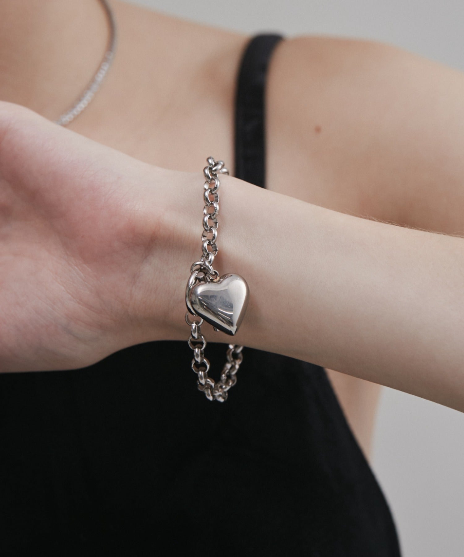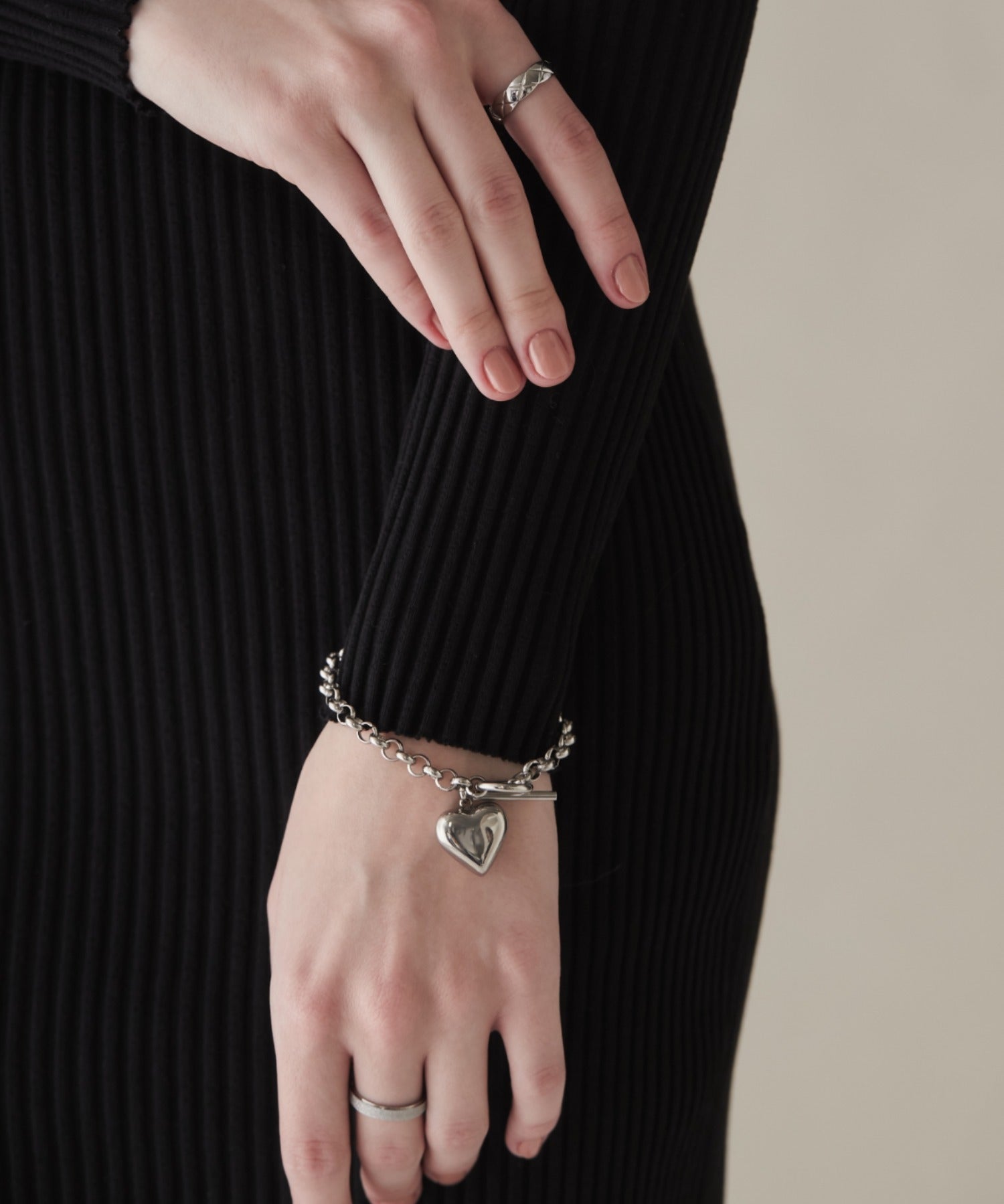 程よいサイズ感のハートモチーフが大人可愛い印象のブレスレット。