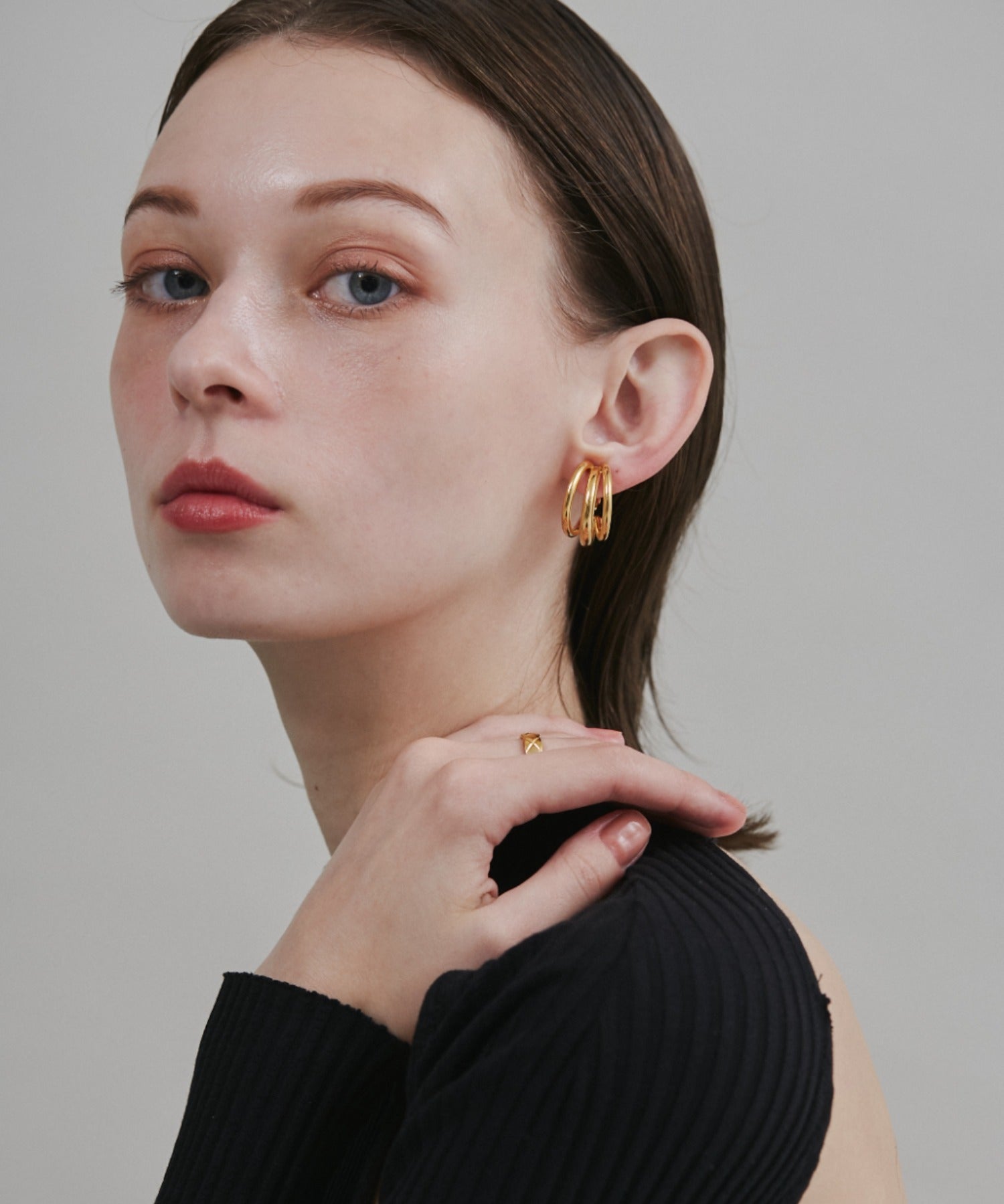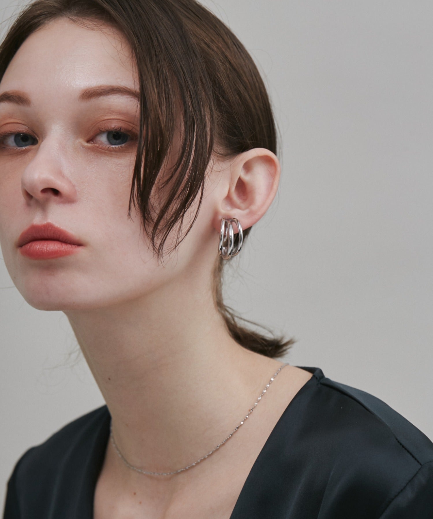 【 金属アレルギー対応 】 トリプルライン イヤリング サージカルステンレス (両耳用)