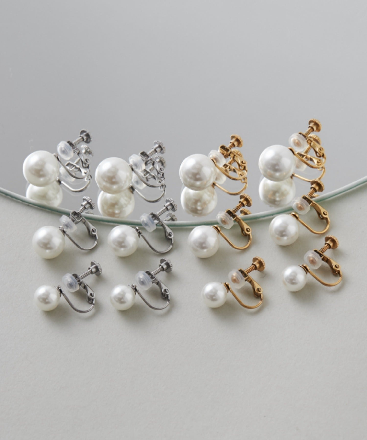 シンプルながらも付けた時のバランスに最大限こだわったパールイヤリング。