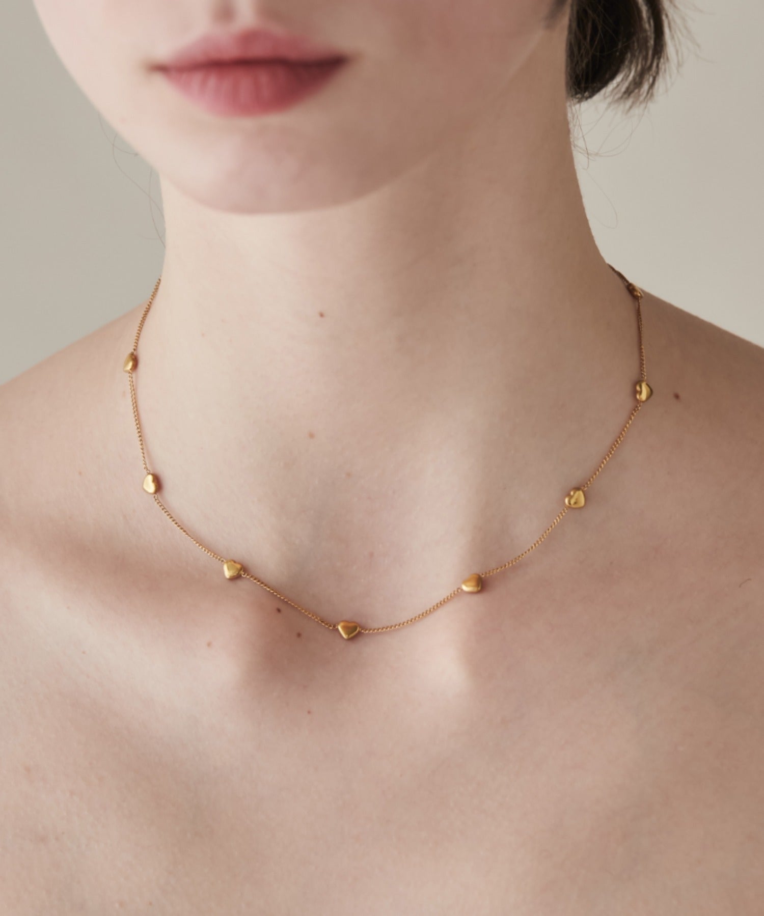 小さなハートが均等に連なっているデザインに思わず心惹かれてしまうネックレス。