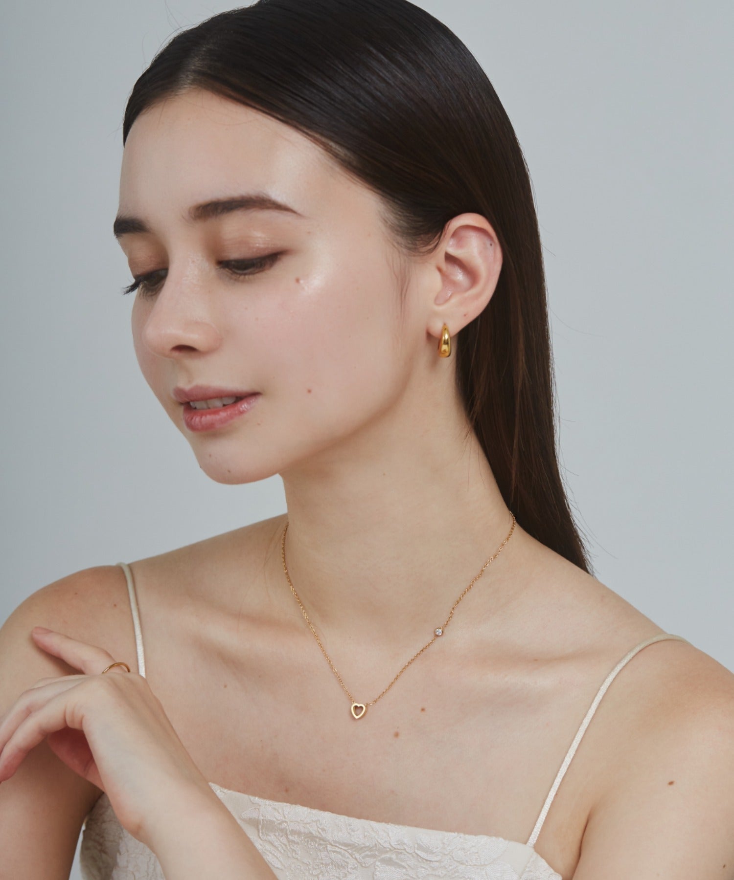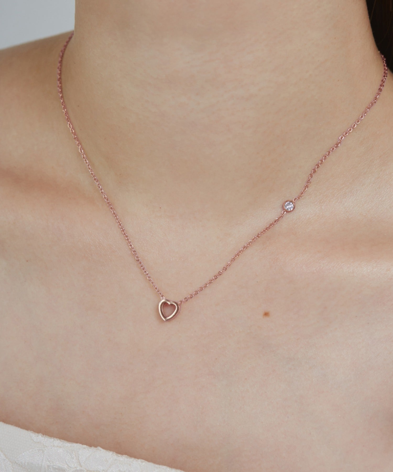 可愛らしいサイズ感のミニハートが大人可愛いネックレス。