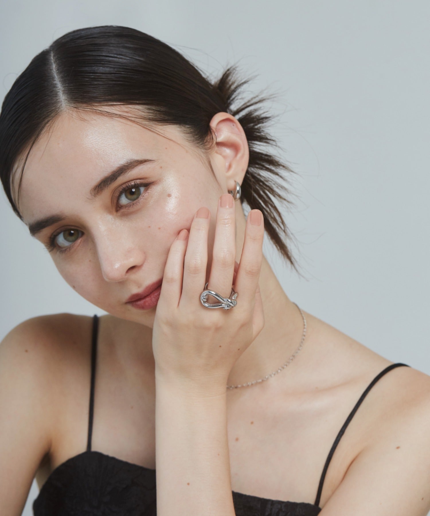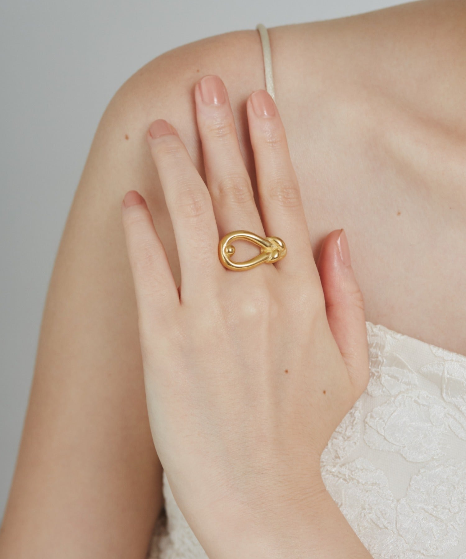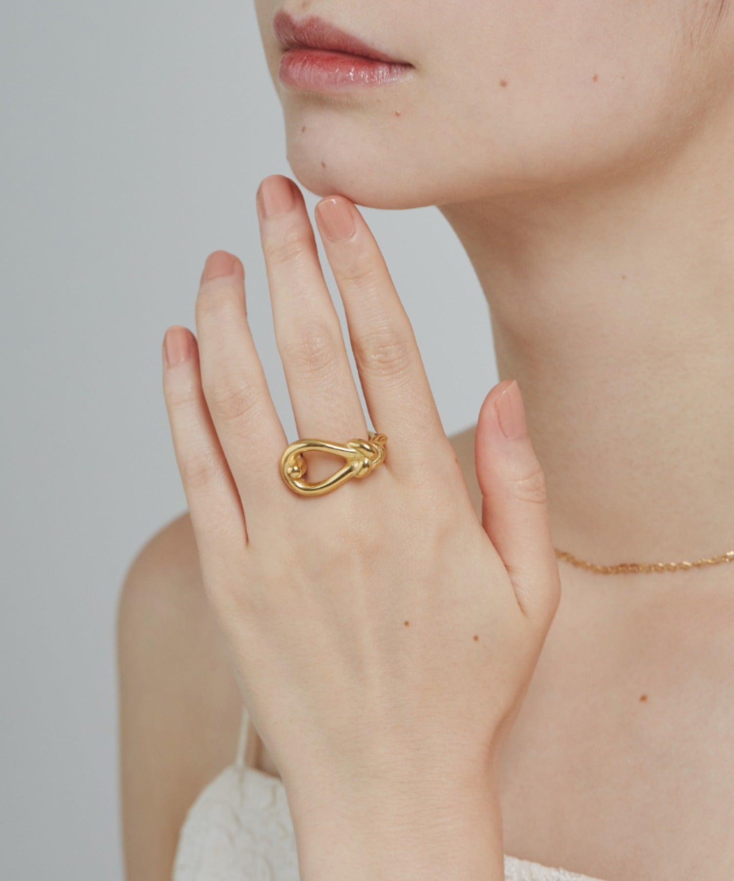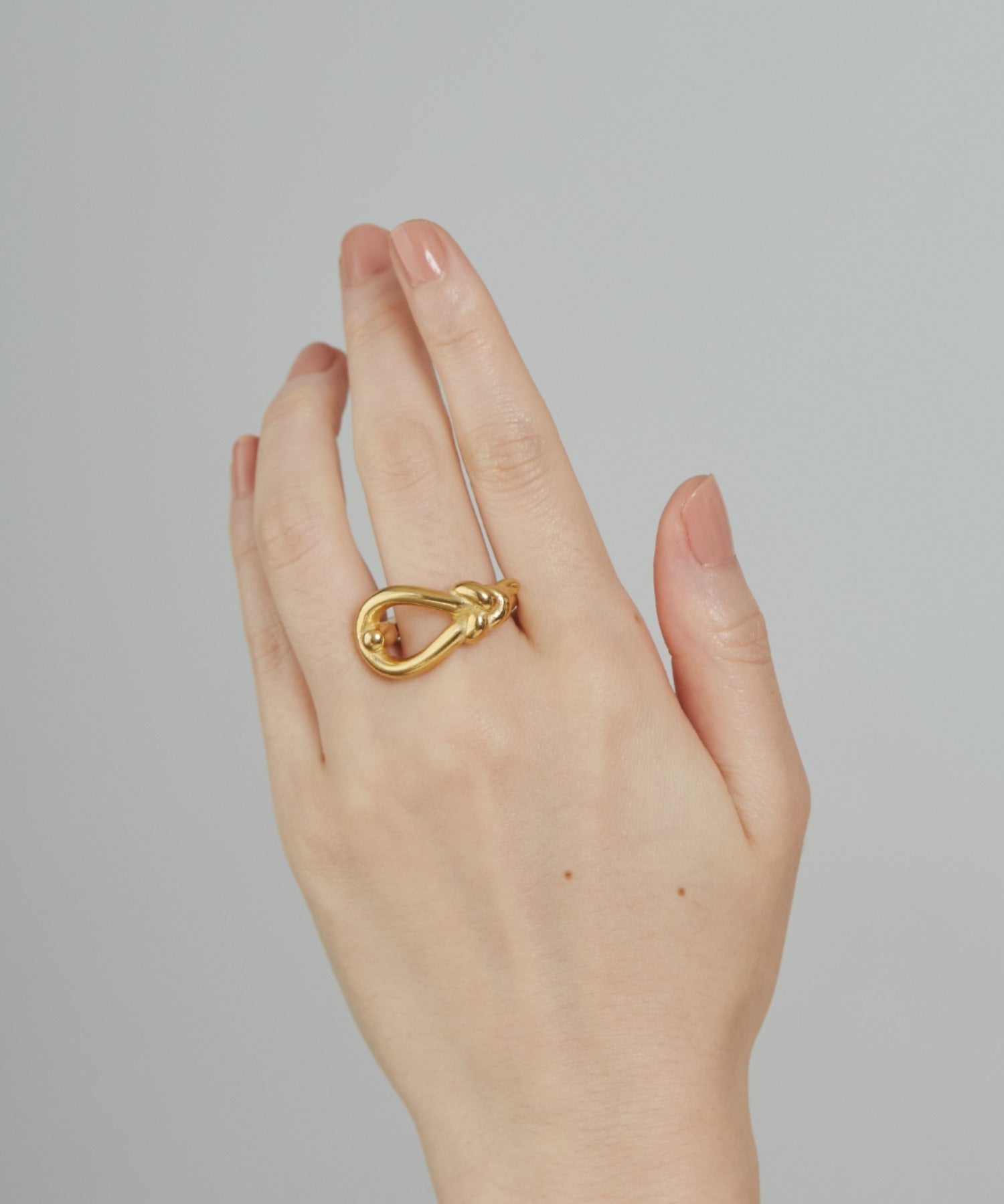 結び目のデザインがこなれた大人可愛い印象のリング。