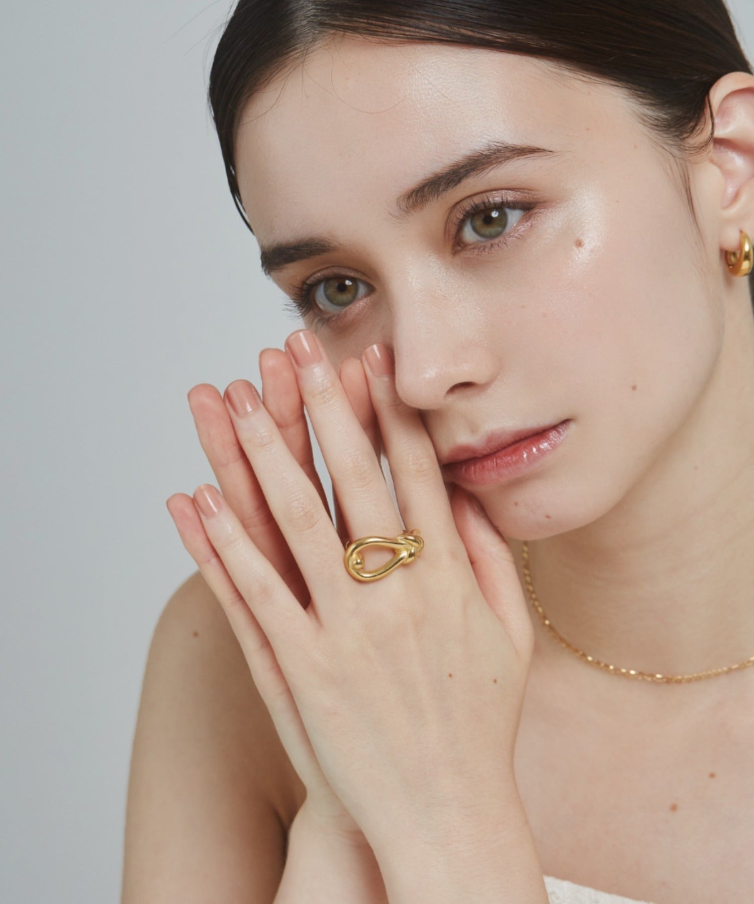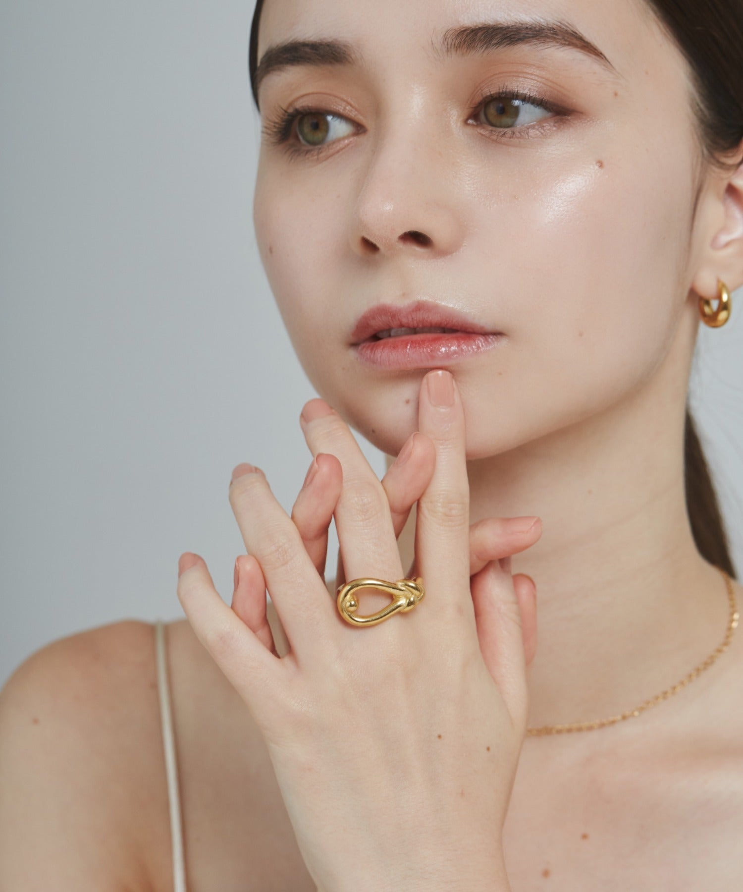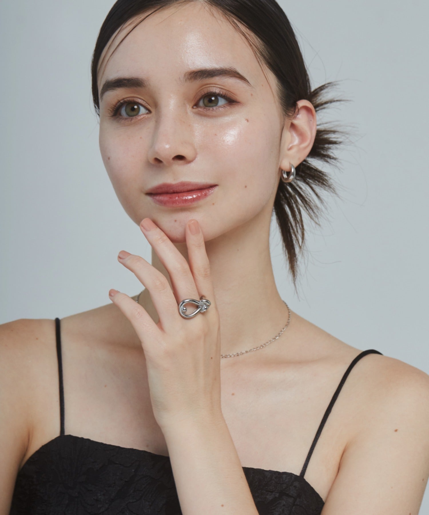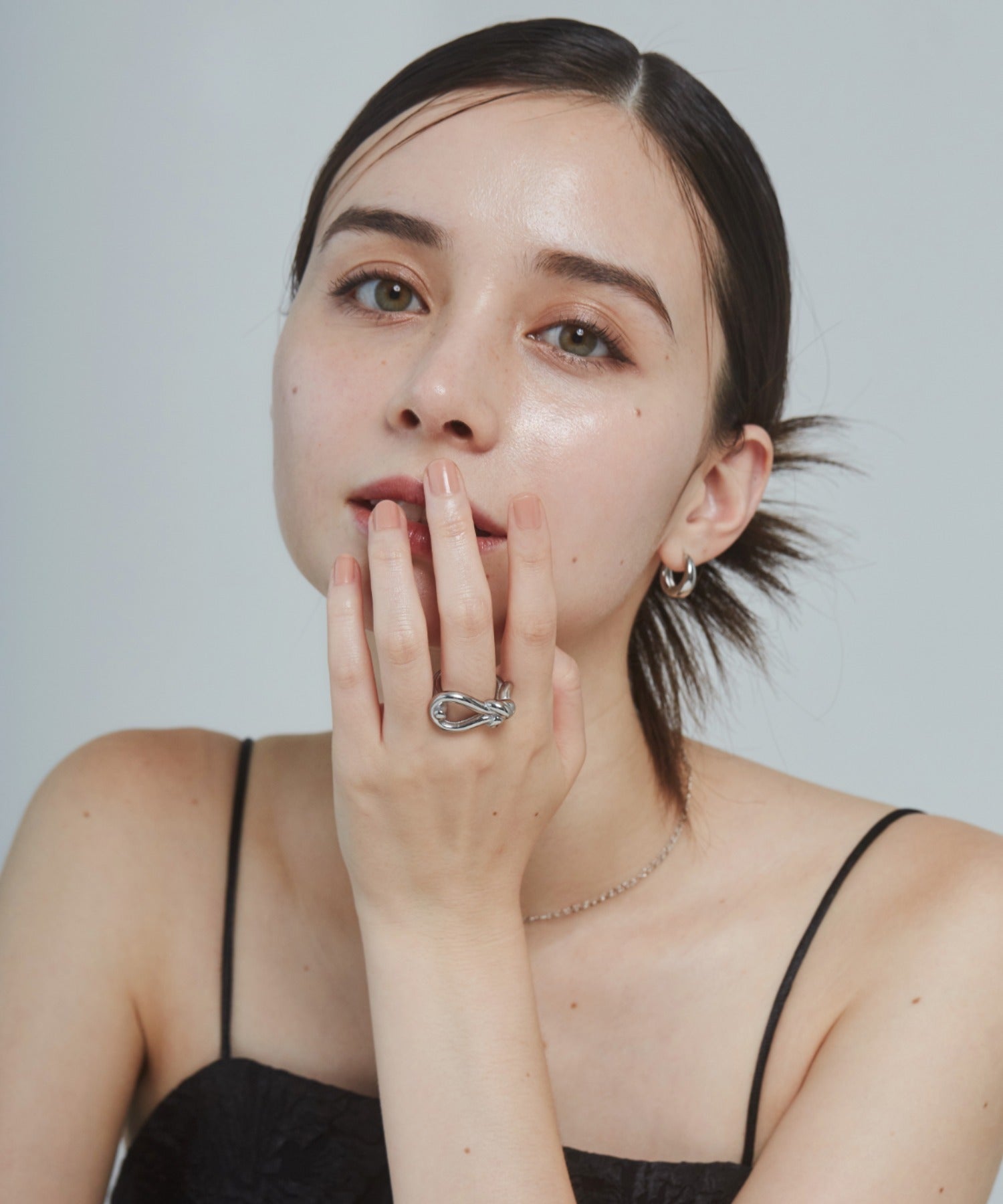 結び目のデザインがこなれた大人可愛い印象のリング。
