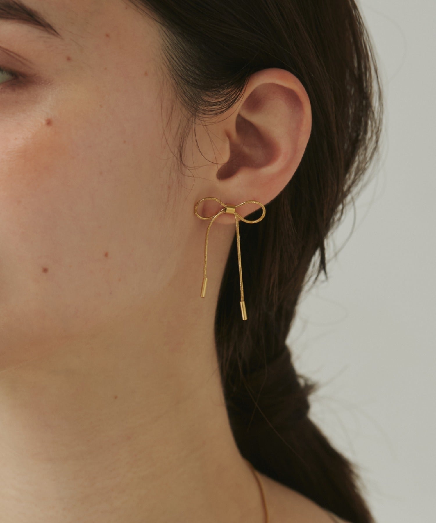 リボンデザインが大人可愛い印象のピアス。