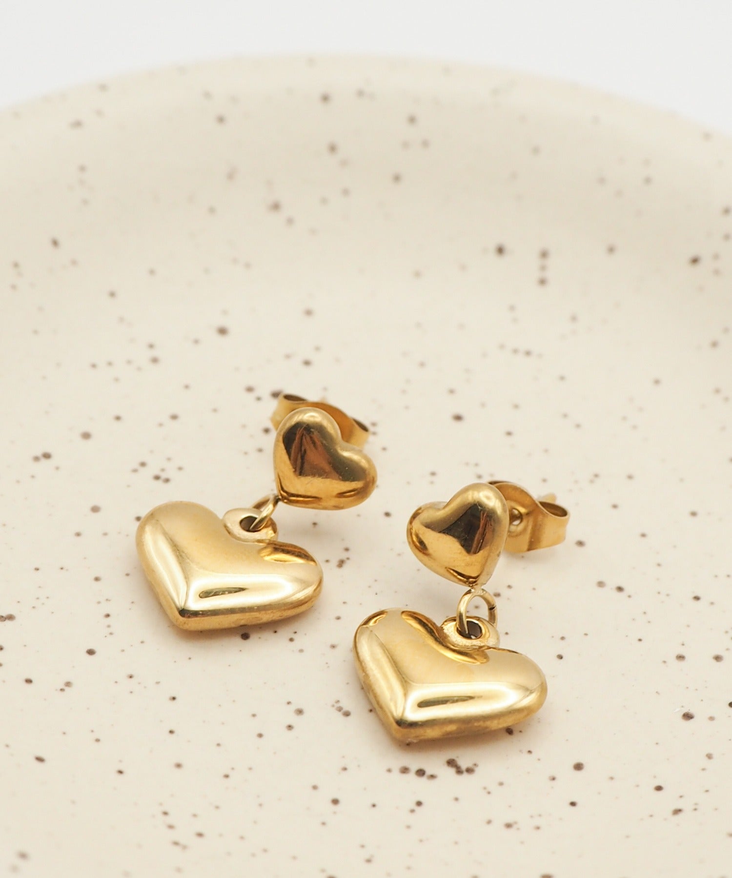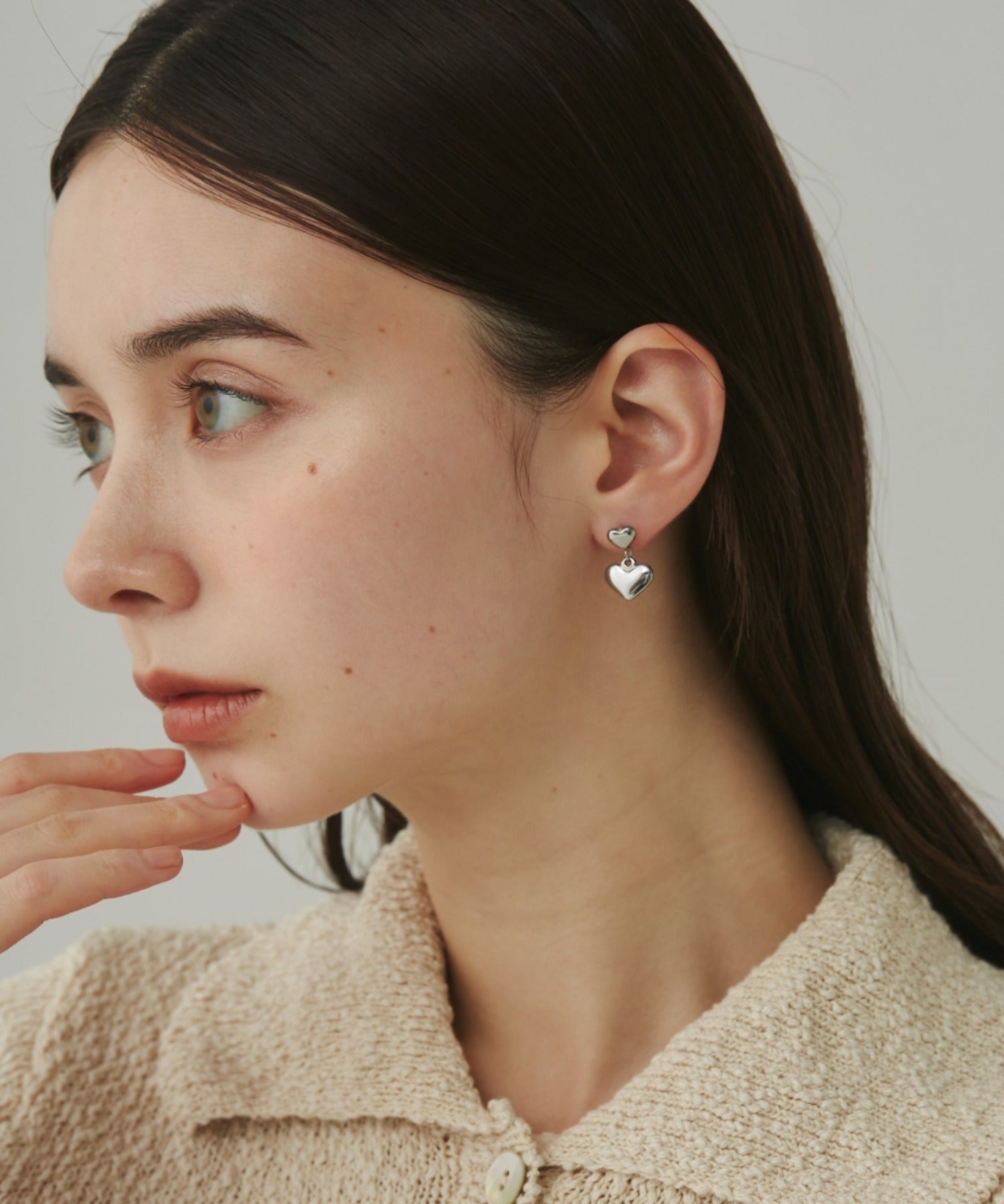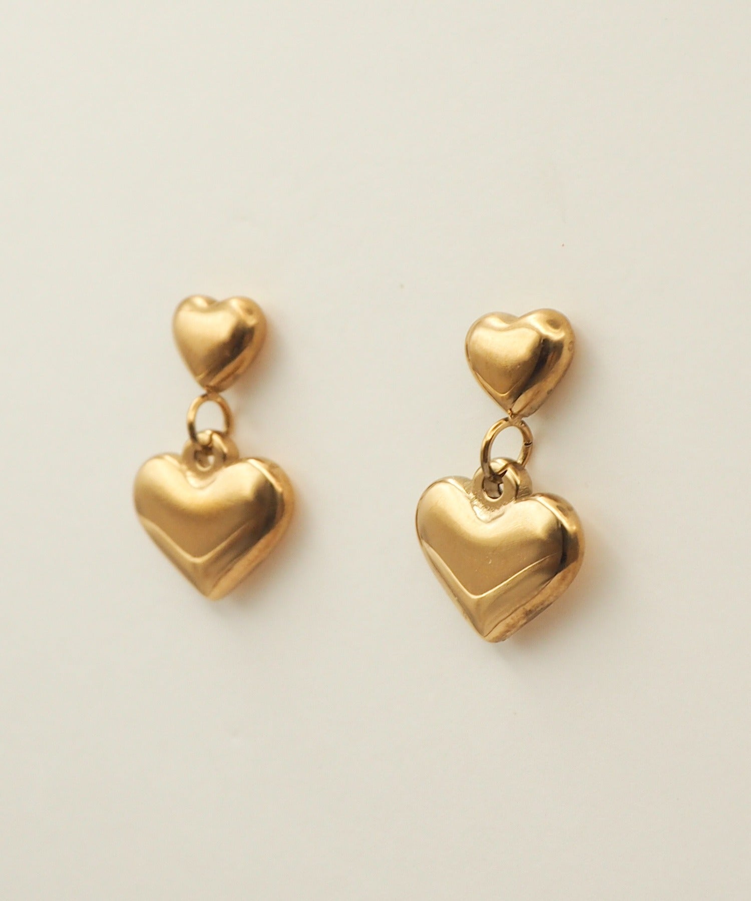 【 金属アレルギー対応 】 ダブルハートピアス サージカルステンレス (両耳用)