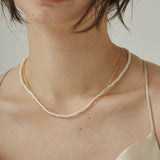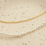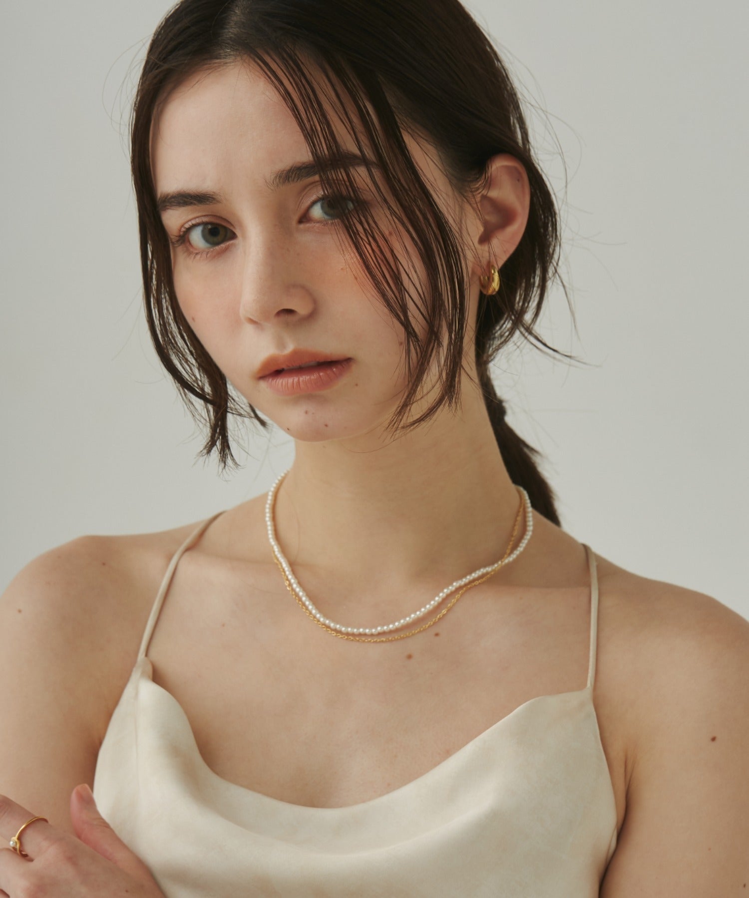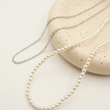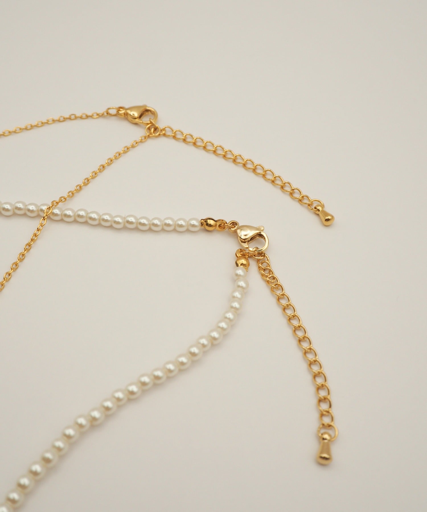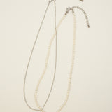 パールネックレスとシンプルなサージカルステンレスチェーンネックレスを組み合わせたセットアイテム。